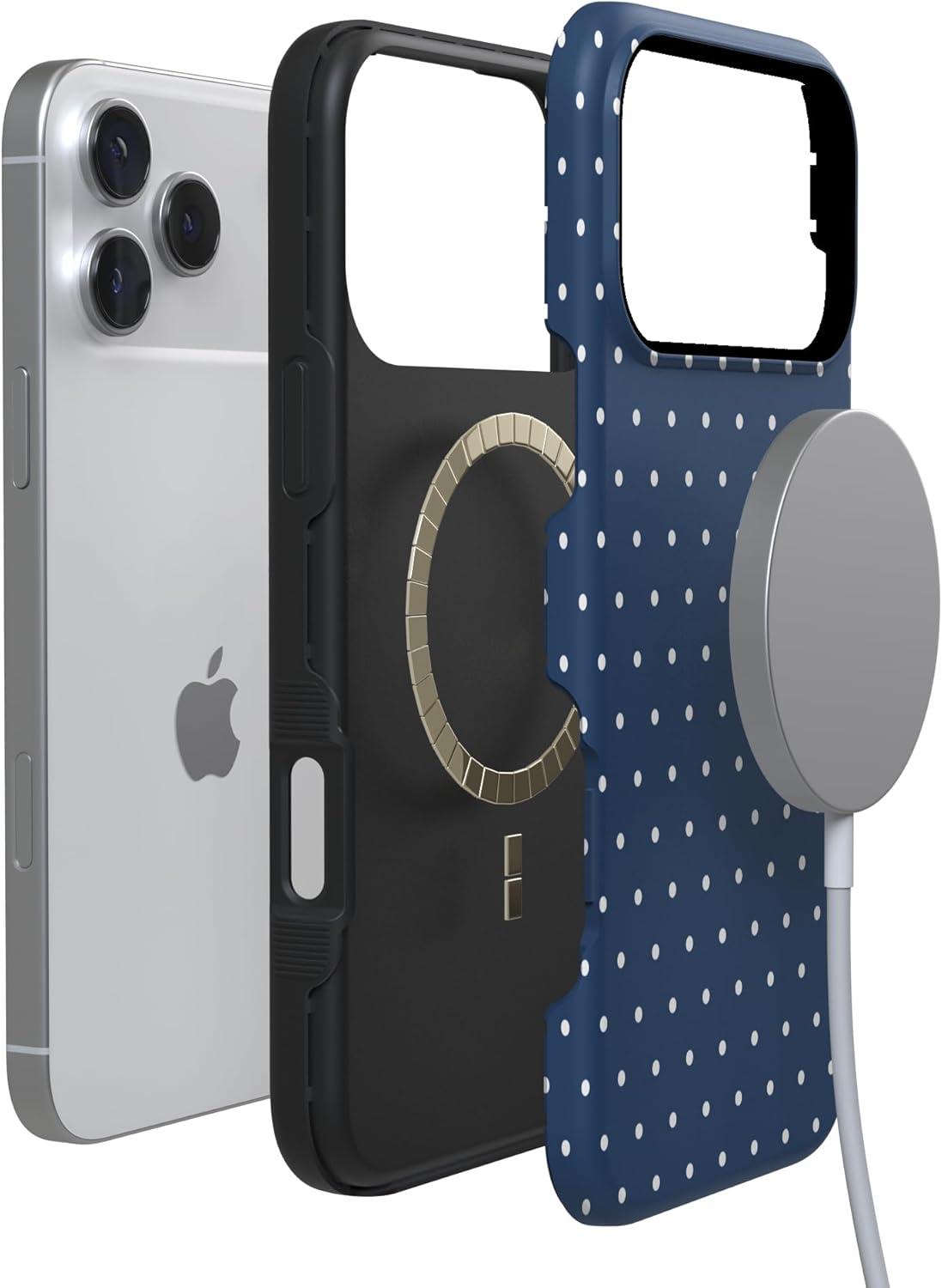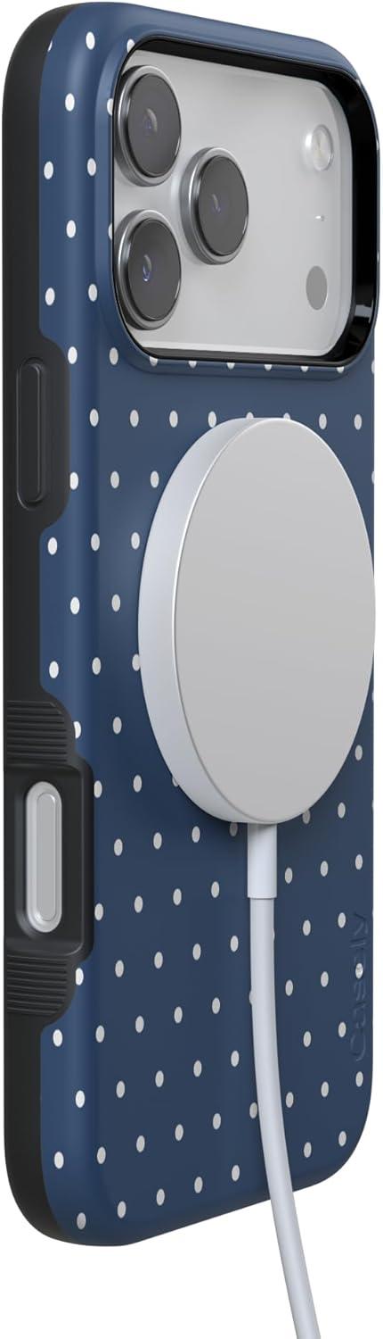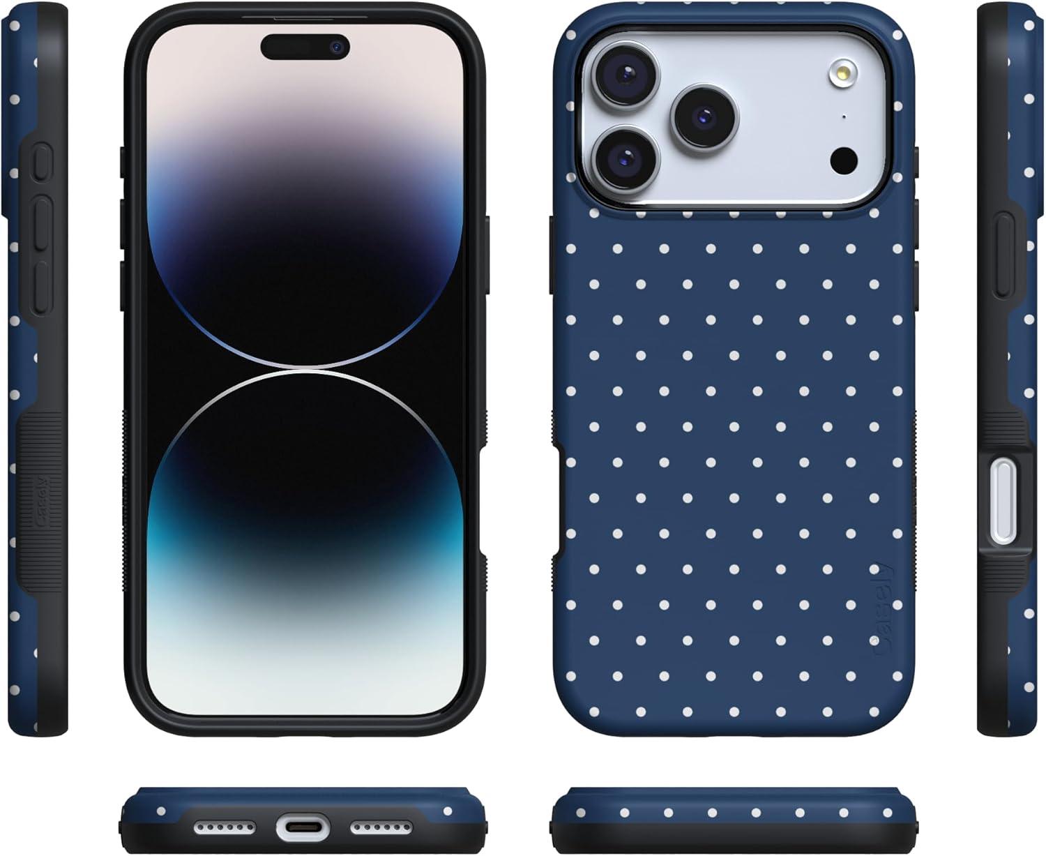 Casely iPhone 17 Pro Max Case | Bordeaux Rose | Moody Monochrome | Bold Protective Design | Compatible with MagSafe(On the Dot | Navy Polka Dot)