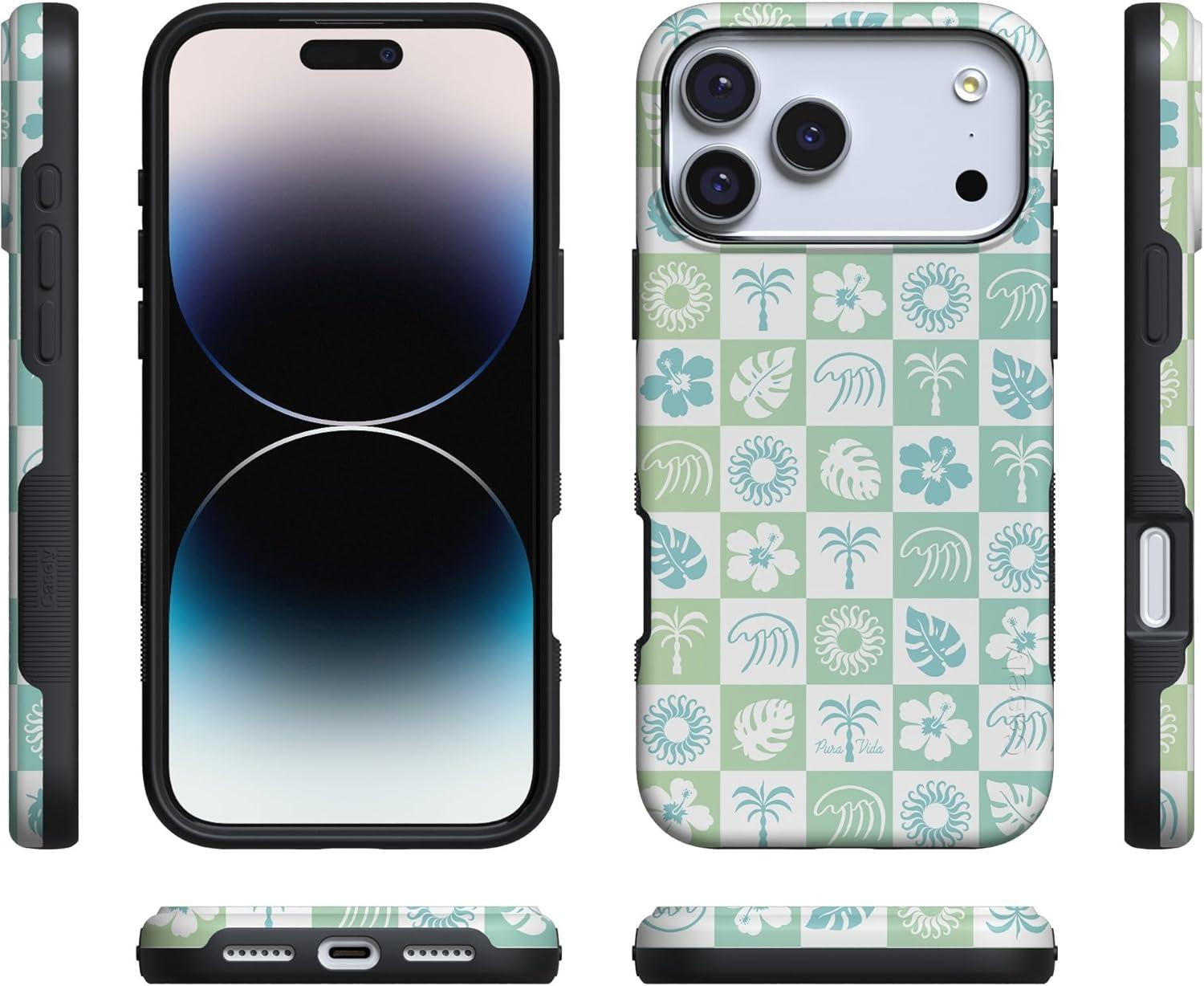 Casely iPhone 17 Pro Max Case | Bordeaux Rose | Moody Monochrome | Bold Protective Design | Compatible with MagSafe(Pura Vida | Coastal Checkers)