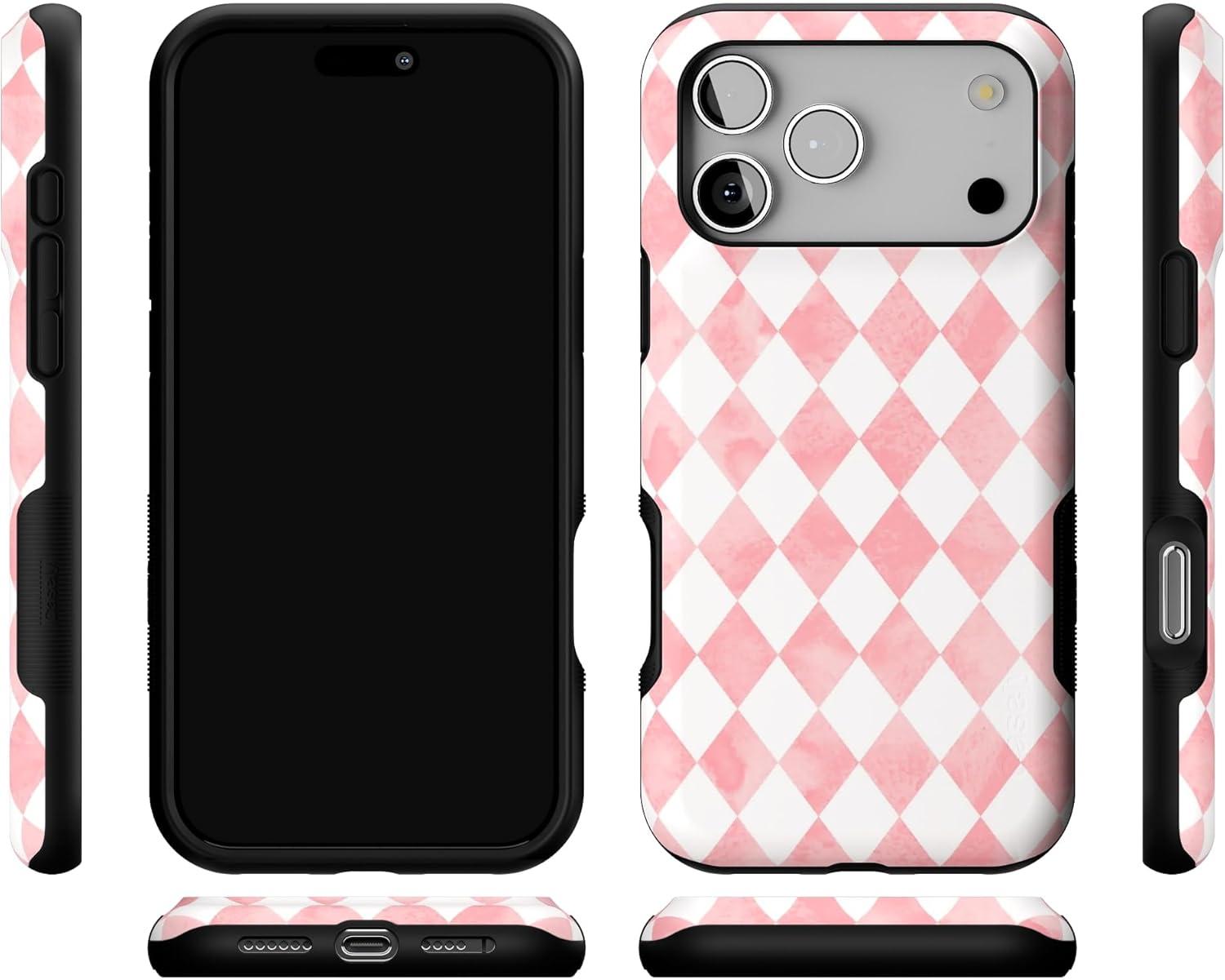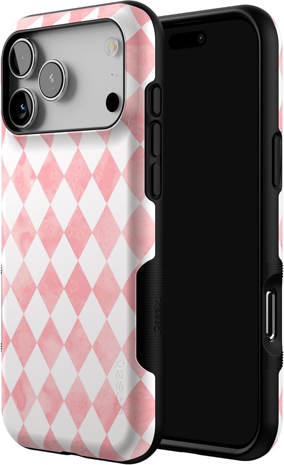 Casely iPhone 17 Pro Max Case | Bordeaux Rose | Moody Monochrome | Bold Protective Design | Compatible with MagSafe(Queen of Diamonds | Pink Watercolor)