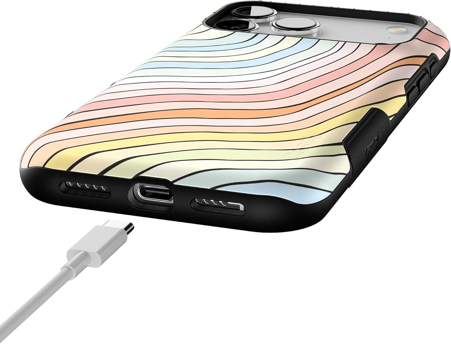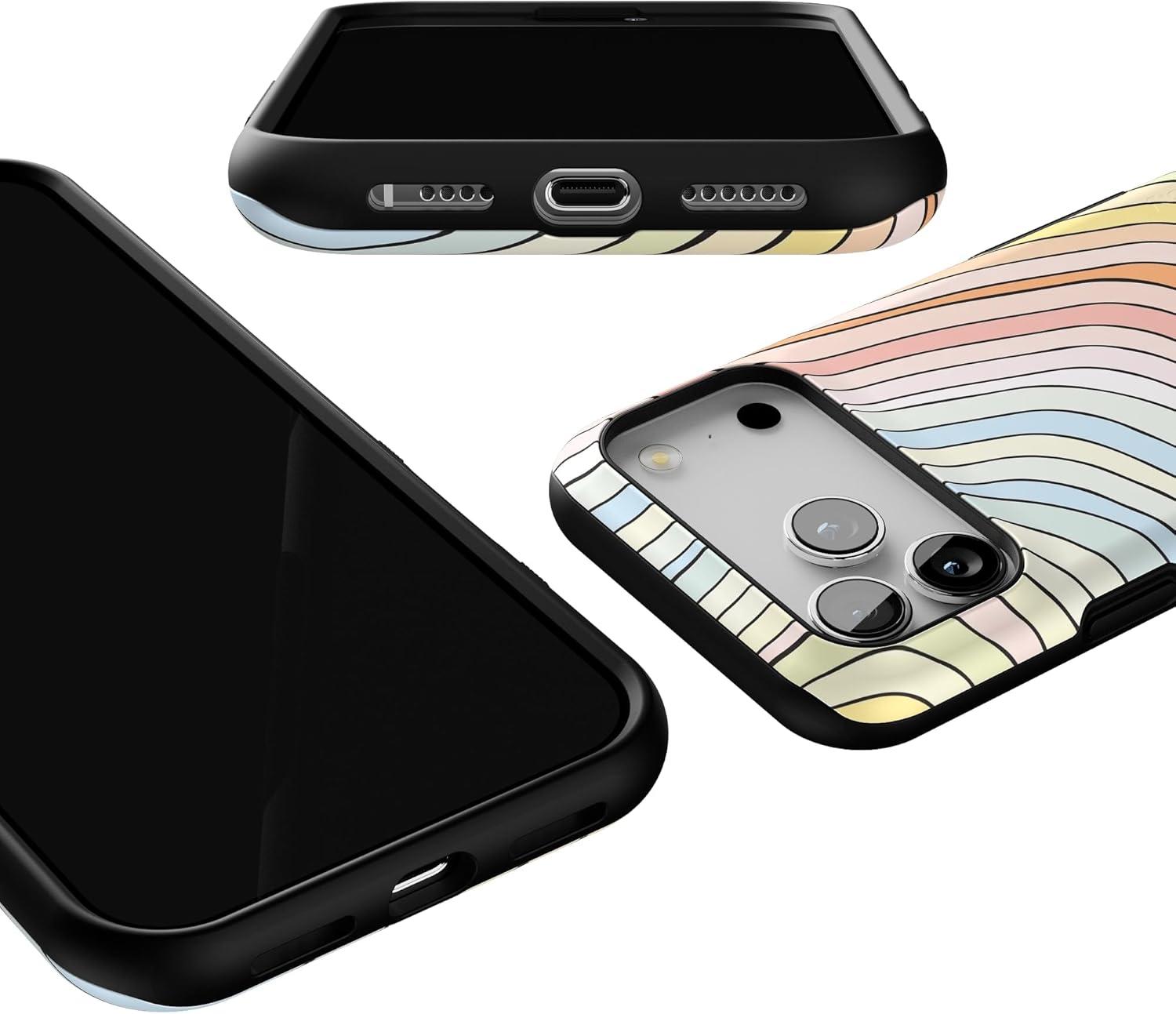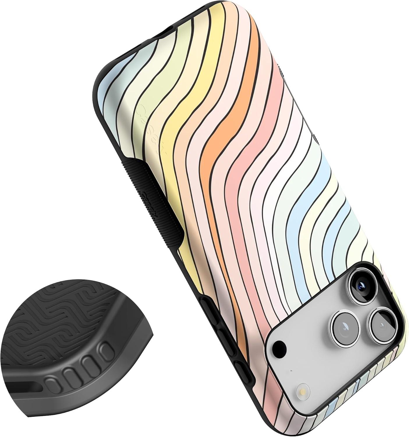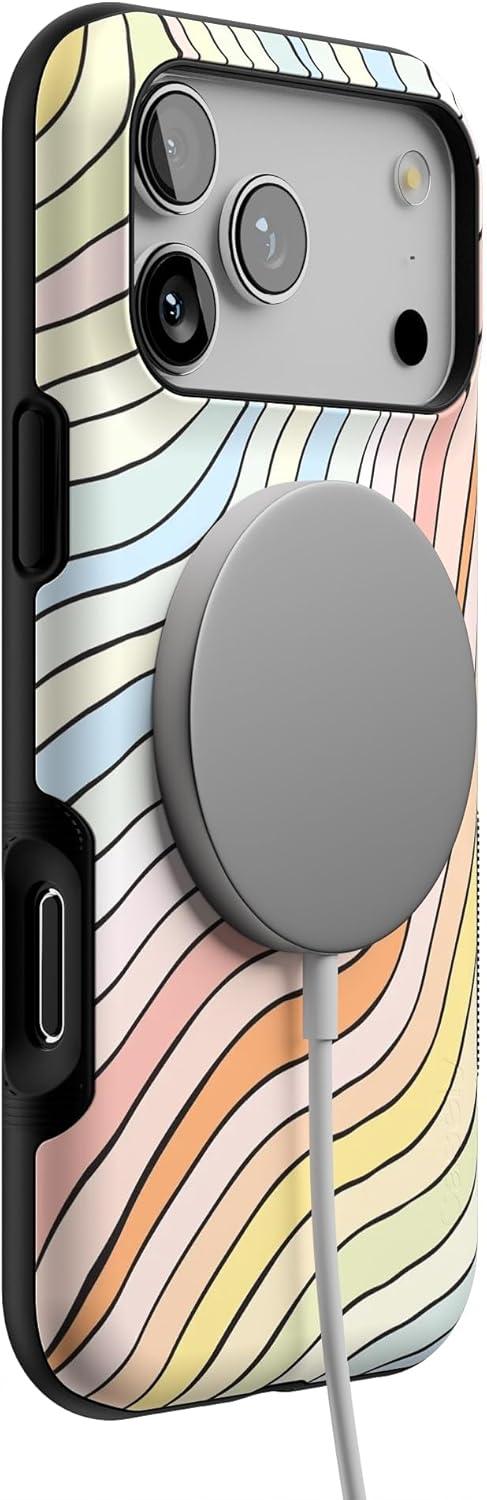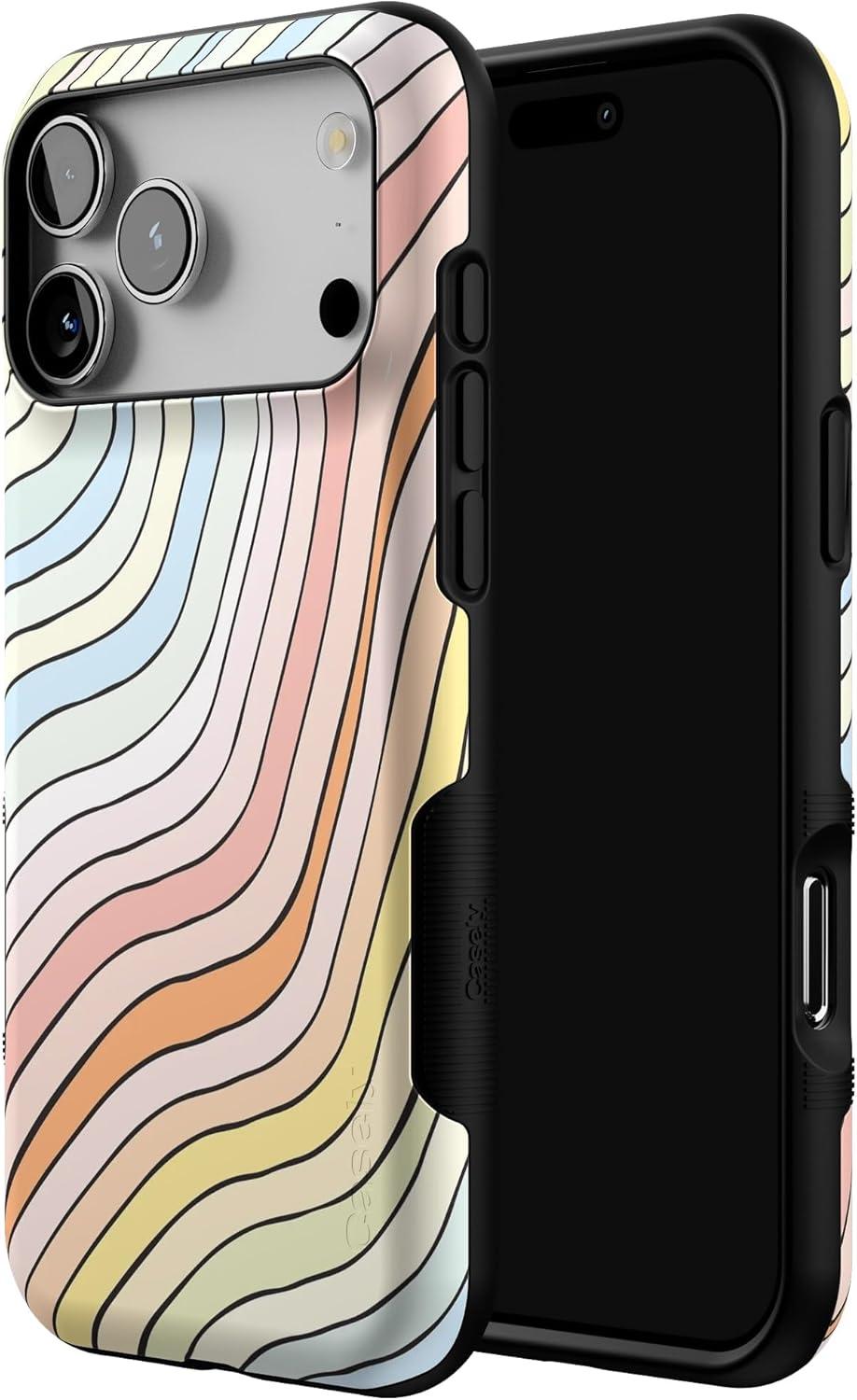Casely iPhone 17 Pro Max Case | Bordeaux Rose | Moody Monochrome | Bold Protective Design | Compatible with MagSafe(Ride The Wave | Pastel Rainbow Lined)