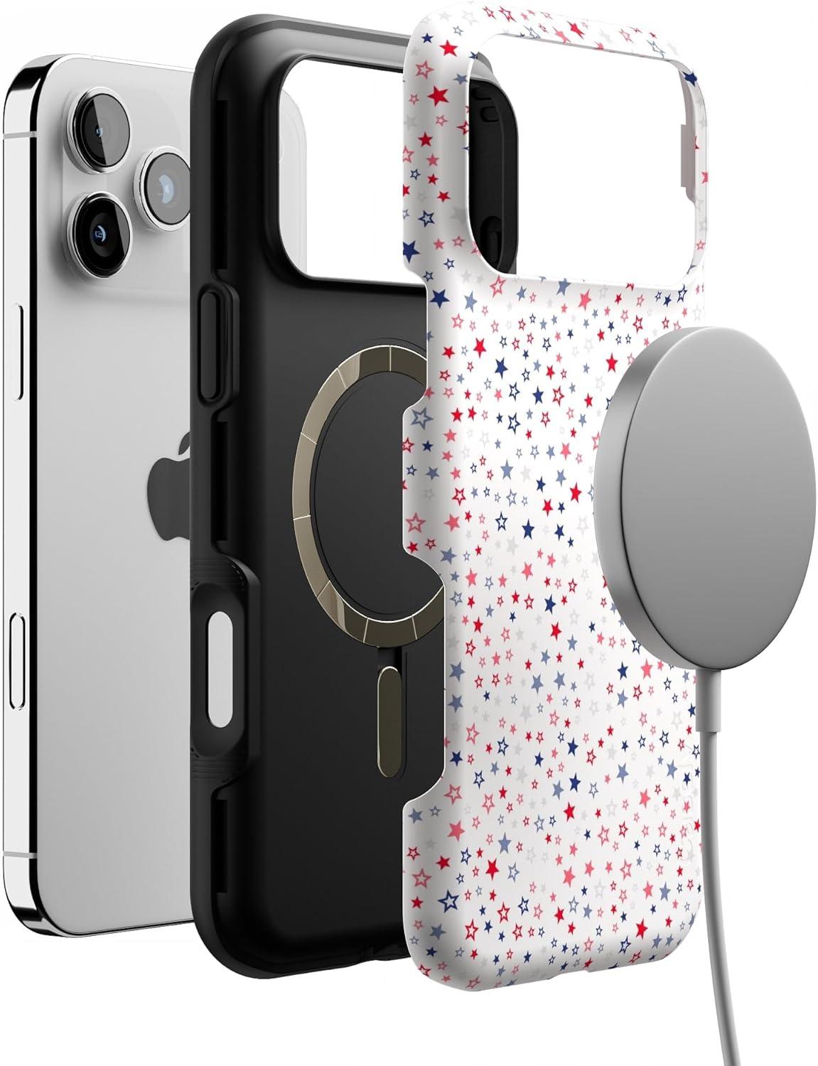 Casely iPhone 17 Pro Max Case | Bordeaux Rose | Moody Monochrome | Bold Protective Design | Compatible with MagSafe(Seeing Stars | Red White & Blue)
