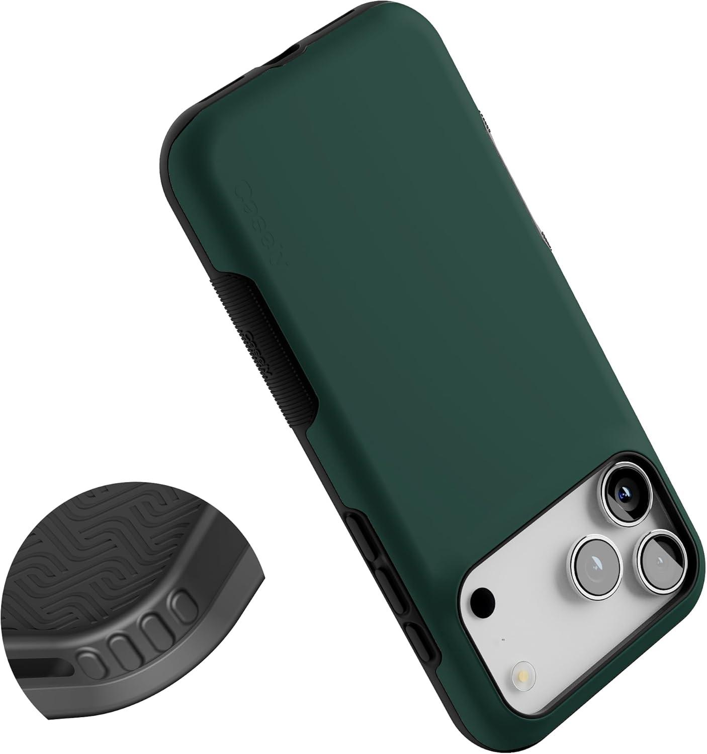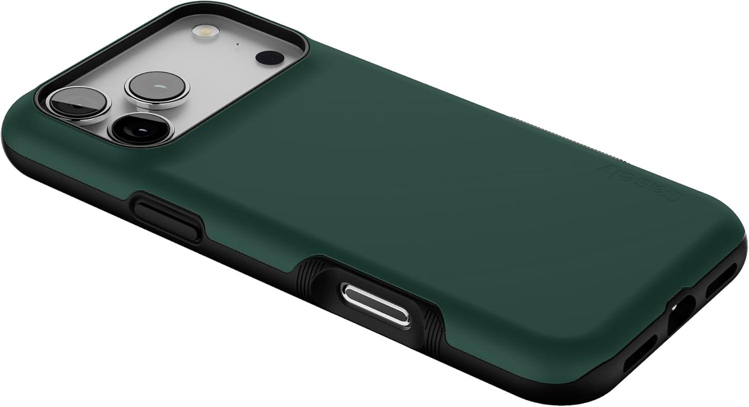 Casely iPhone 17 Pro Max Case | Bordeaux Rose | Moody Monochrome | Bold Protective Design | Compatible with MagSafe(The Boyfriend Collection | Forest Green)