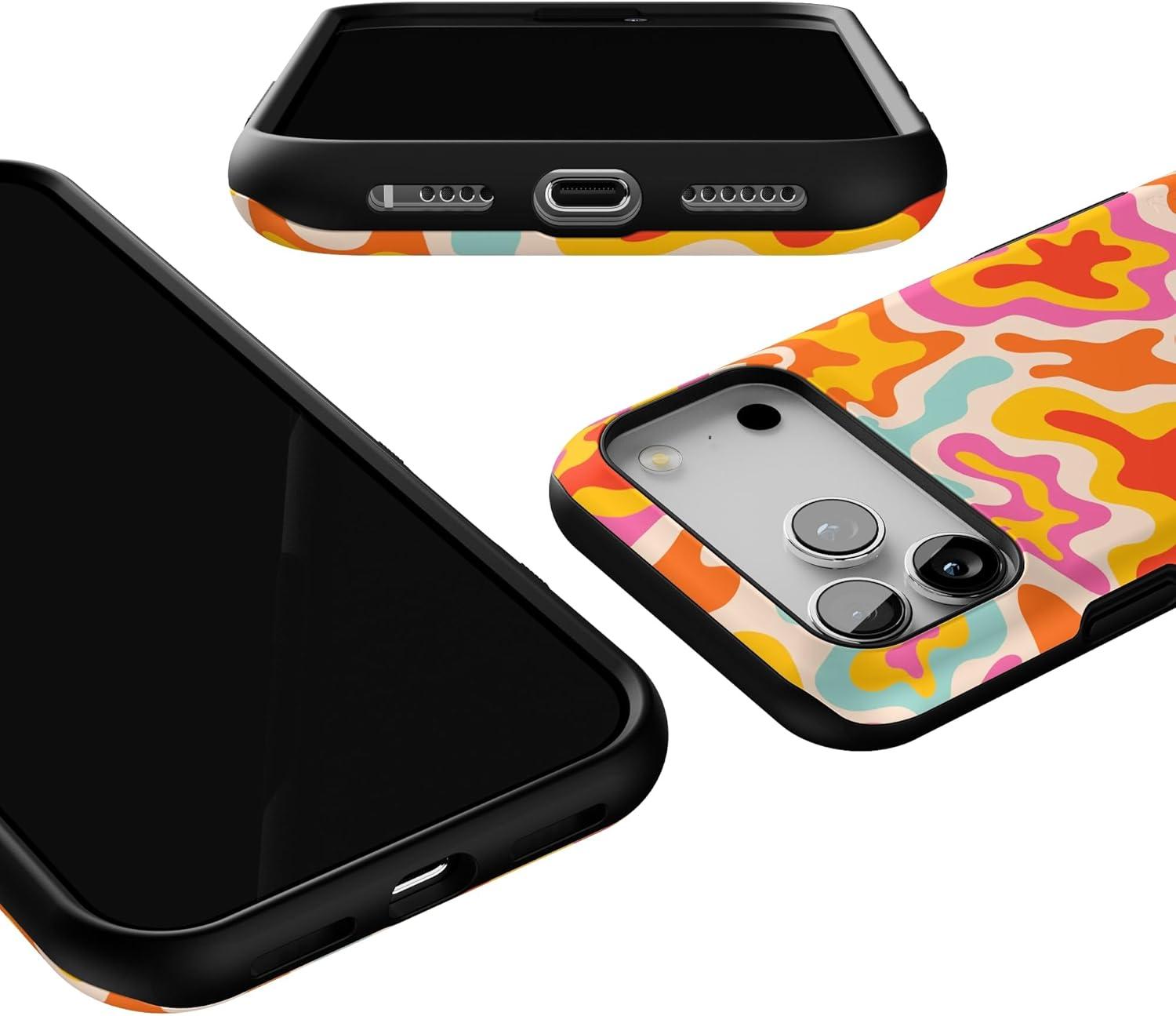 Casely iPhone 17 Pro Max Case | Bordeaux Rose | Moody Monochrome | Bold Protective Design | Compatible with MagSafe(Tropical Color Splash | Abstract Retro)