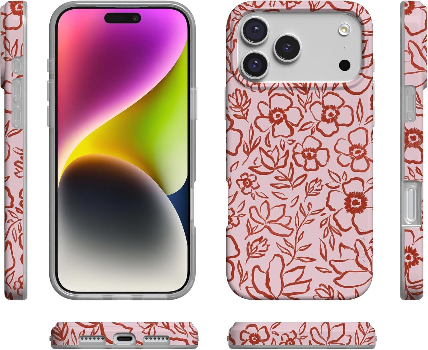 Casely iPhone 17 Pro Max Case | Fallen Gold | Antique Floral | Compatible with MagSafe | Classic Ultra Thin Design(Blush Garden | Floral Doodle)