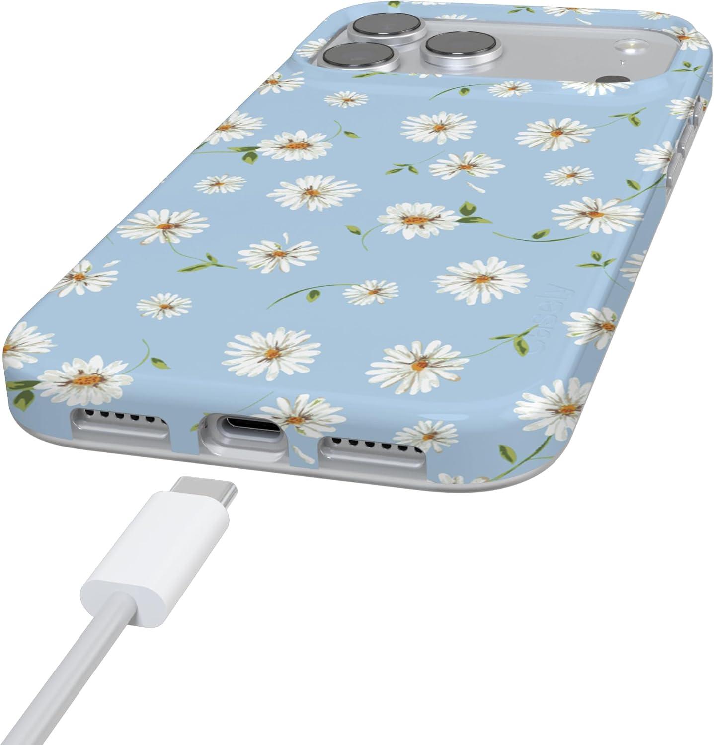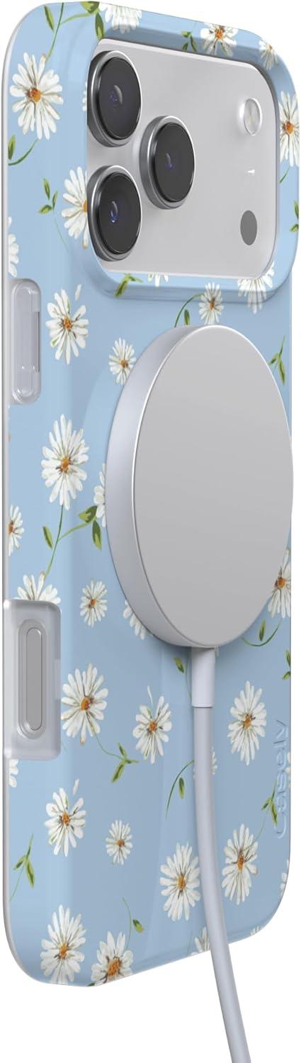 Casely iPhone 17 Pro Max Case | Fallen Gold | Antique Floral | Compatible with MagSafe | Classic Ultra Thin Design(Daisy Daydream | Baby Blue Floral)