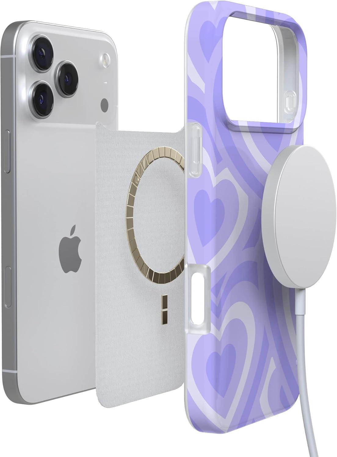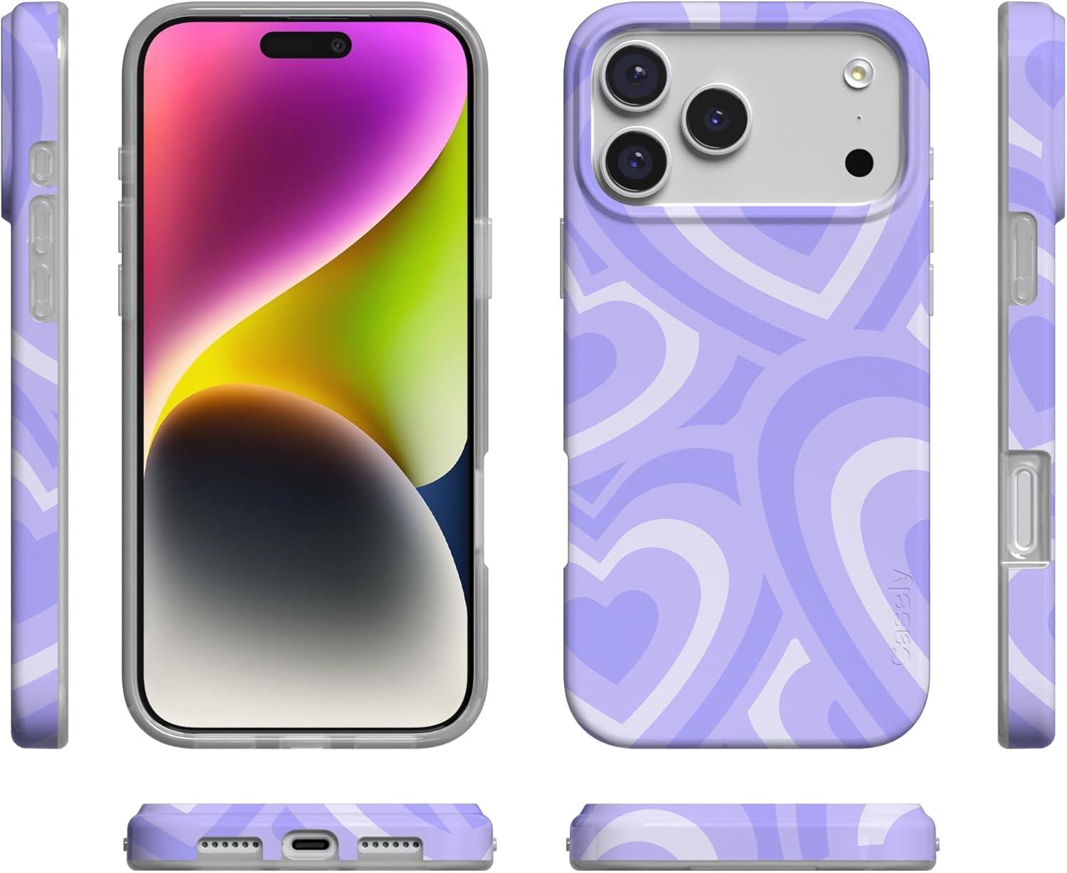 Casely iPhone 17 Pro Max Case | Fallen Gold | Antique Floral | Compatible with MagSafe | Classic Ultra Thin Design(Love Song | Lavender Heart)