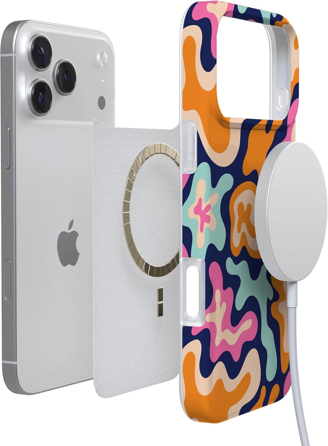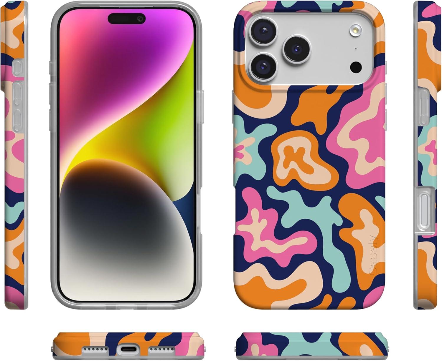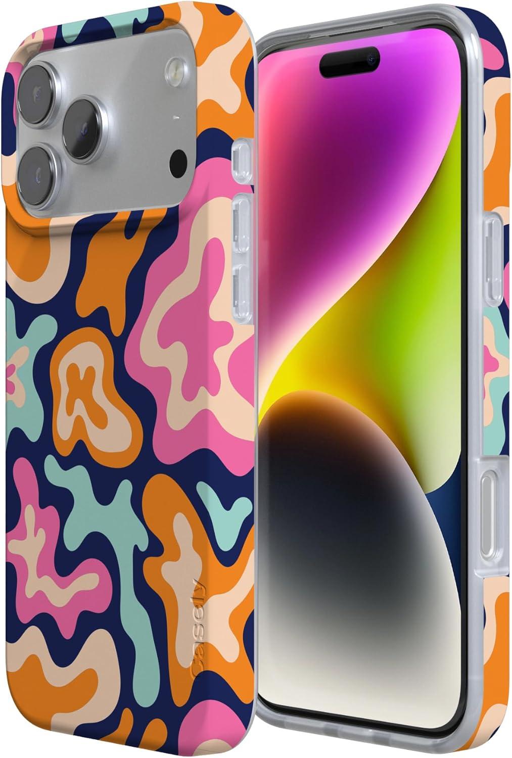 Casely iPhone 17 Pro Max Case | Fallen Gold | Antique Floral | Compatible with MagSafe | Classic Ultra Thin Design(Midnight Color Splash | Abstract Retro)