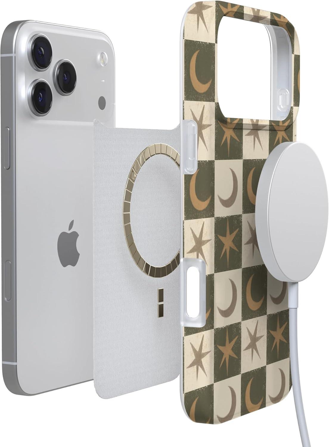 Casely iPhone 17 Pro Max Case | Fallen Gold | Antique Floral | Compatible with MagSafe | Classic Ultra Thin Design(Mystic Moonstar | Green Celestial)