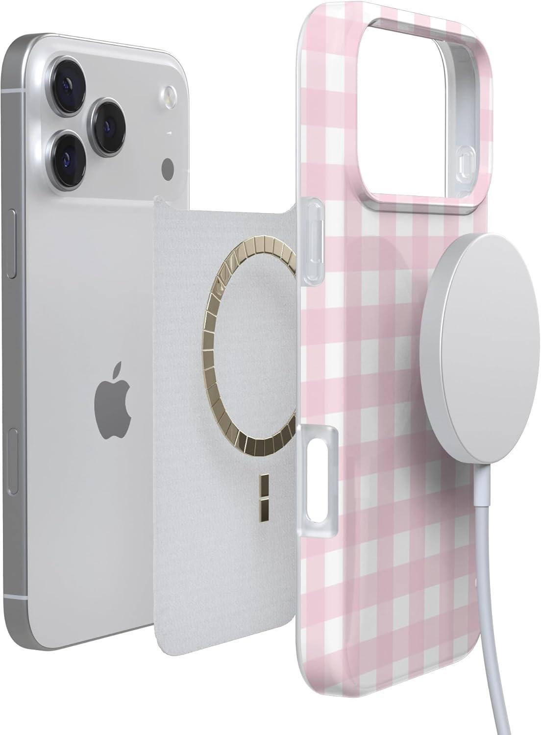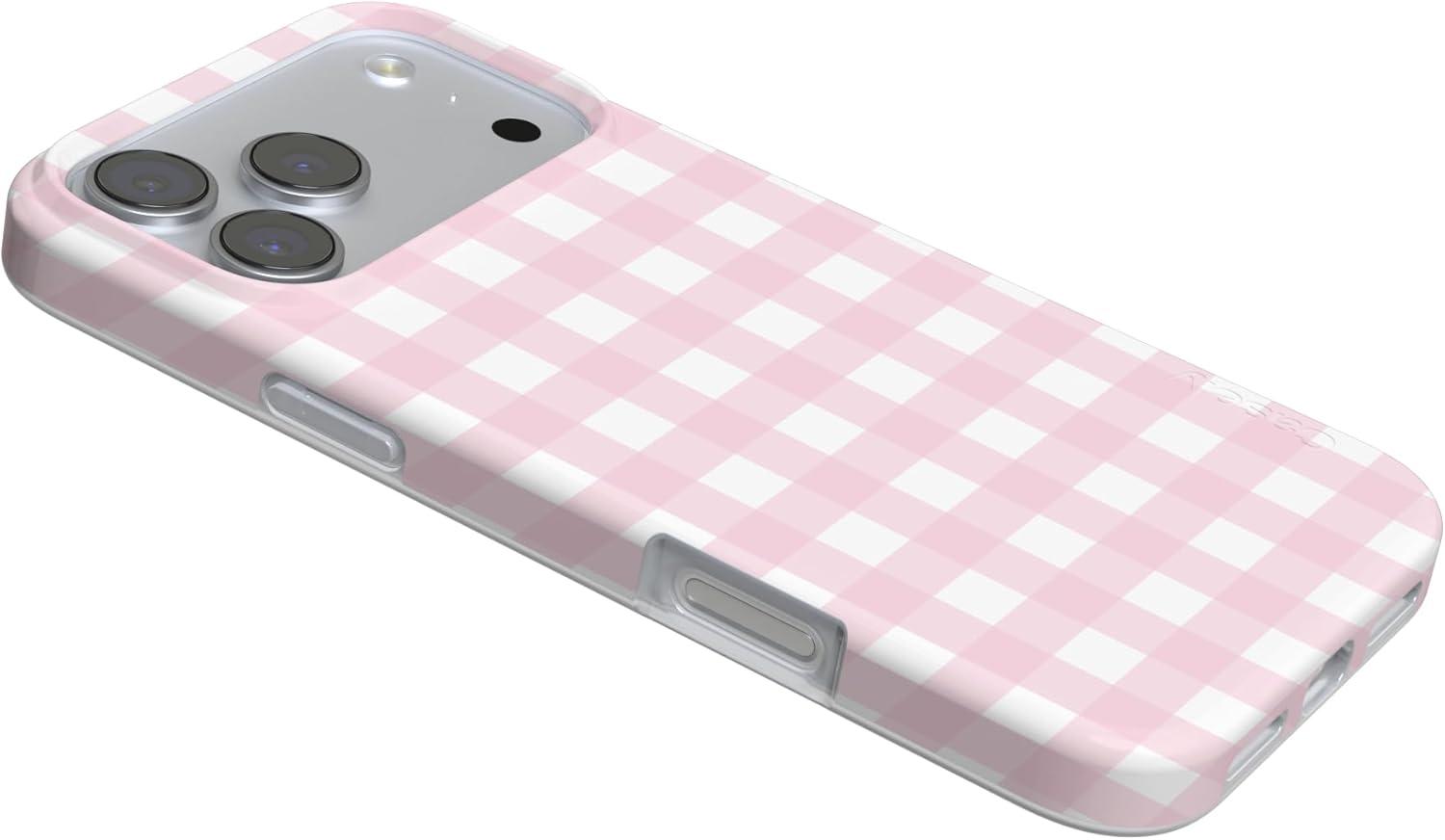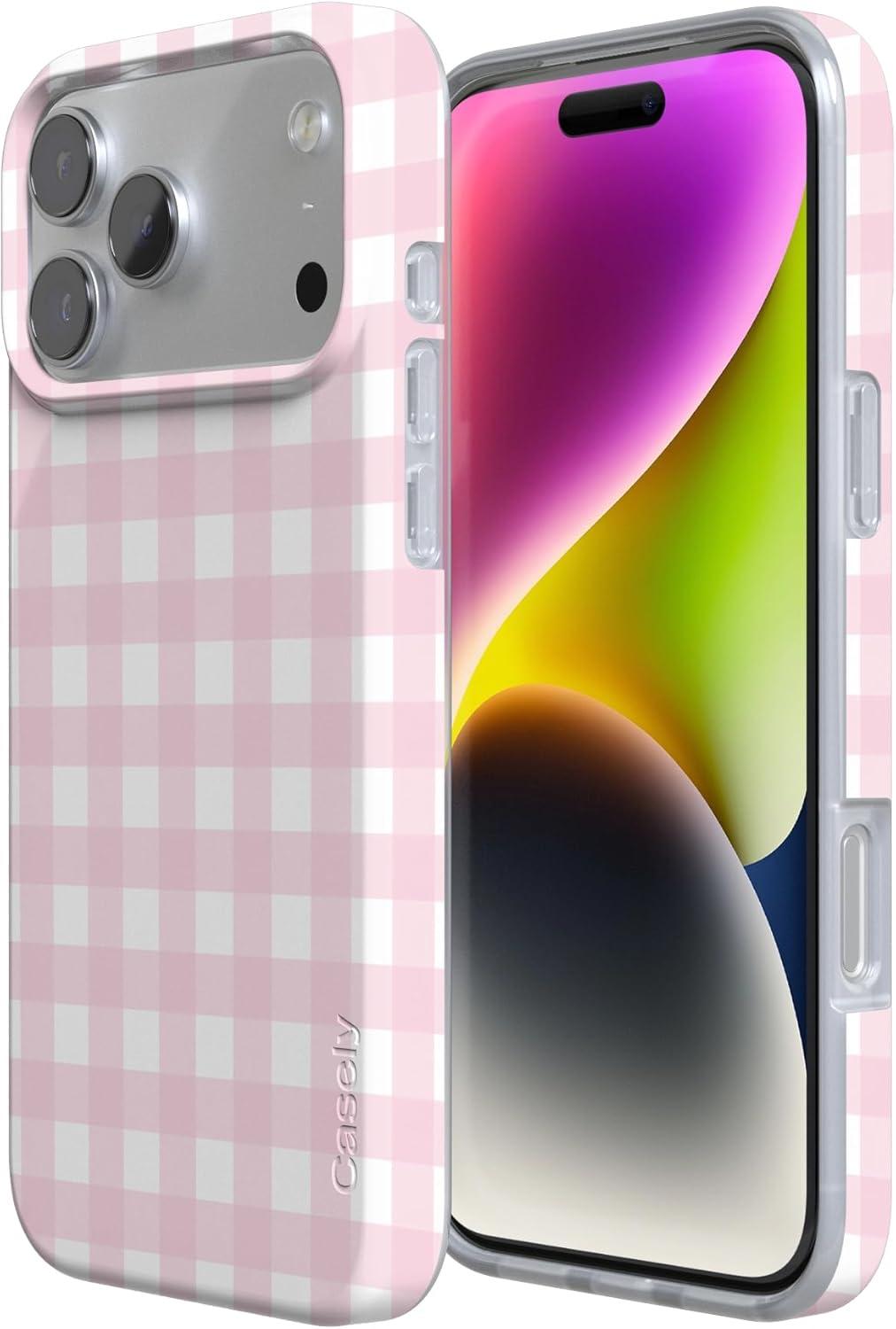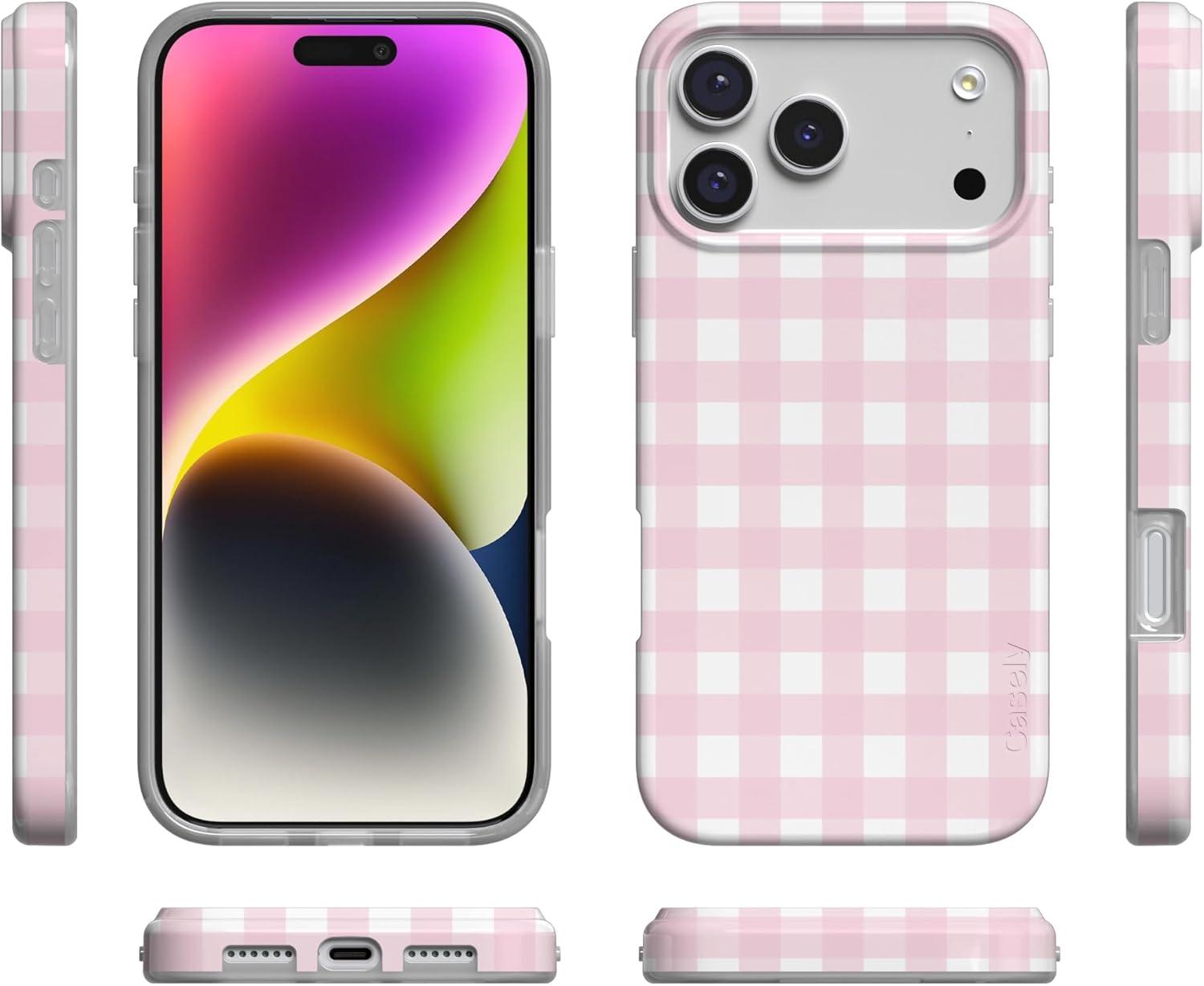 Casely iPhone 17 Pro Max Case | Fallen Gold | Antique Floral | Compatible with MagSafe | Classic Ultra Thin Design(Pink Plaid | Sunday Best)