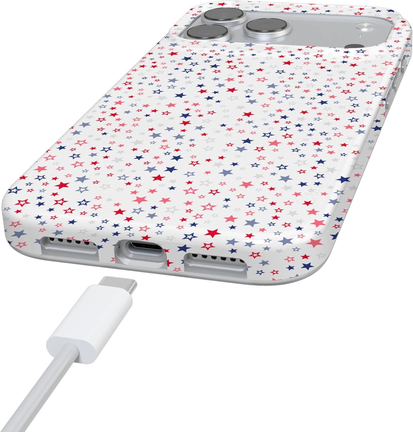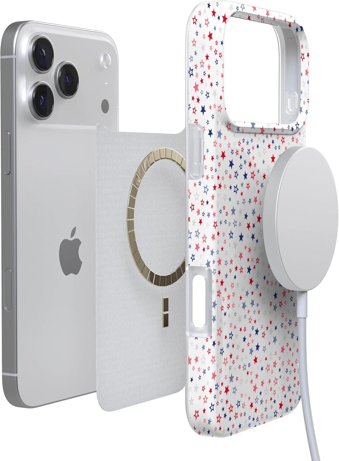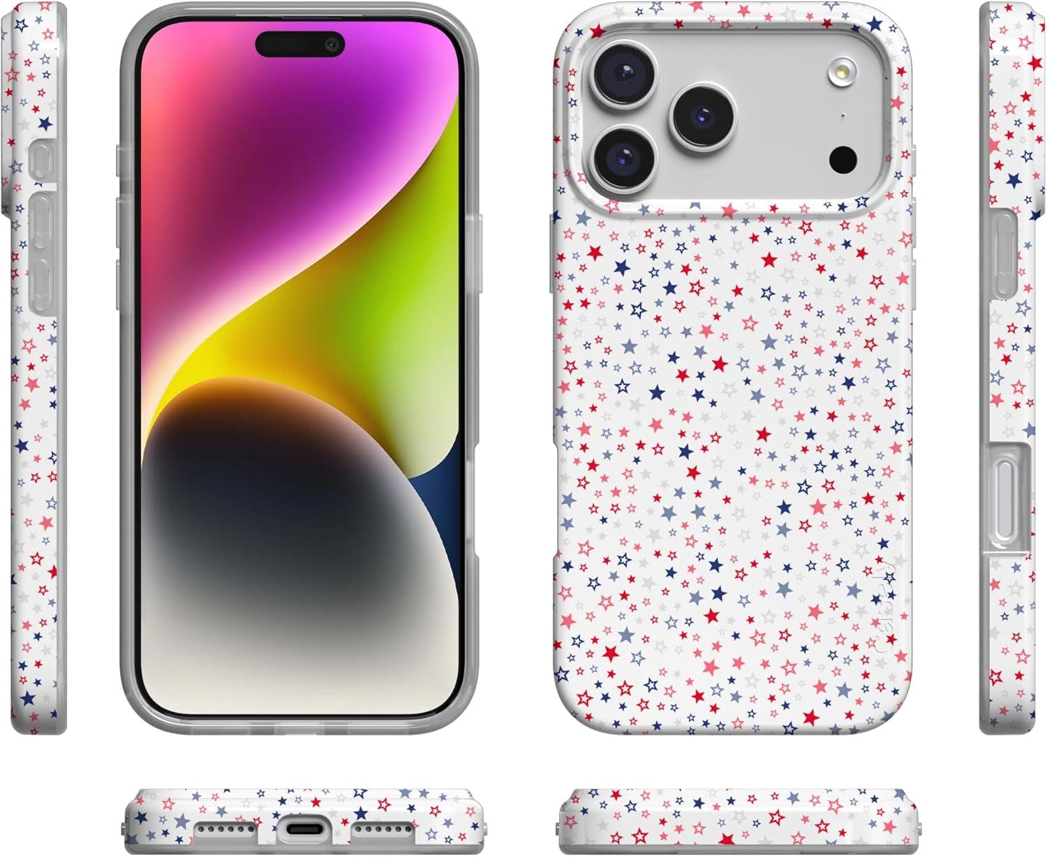 Casely iPhone 17 Pro Max Case | Fallen Gold | Antique Floral | Compatible with MagSafe | Classic Ultra Thin Design(Seeing Stars | Red White & Blue)