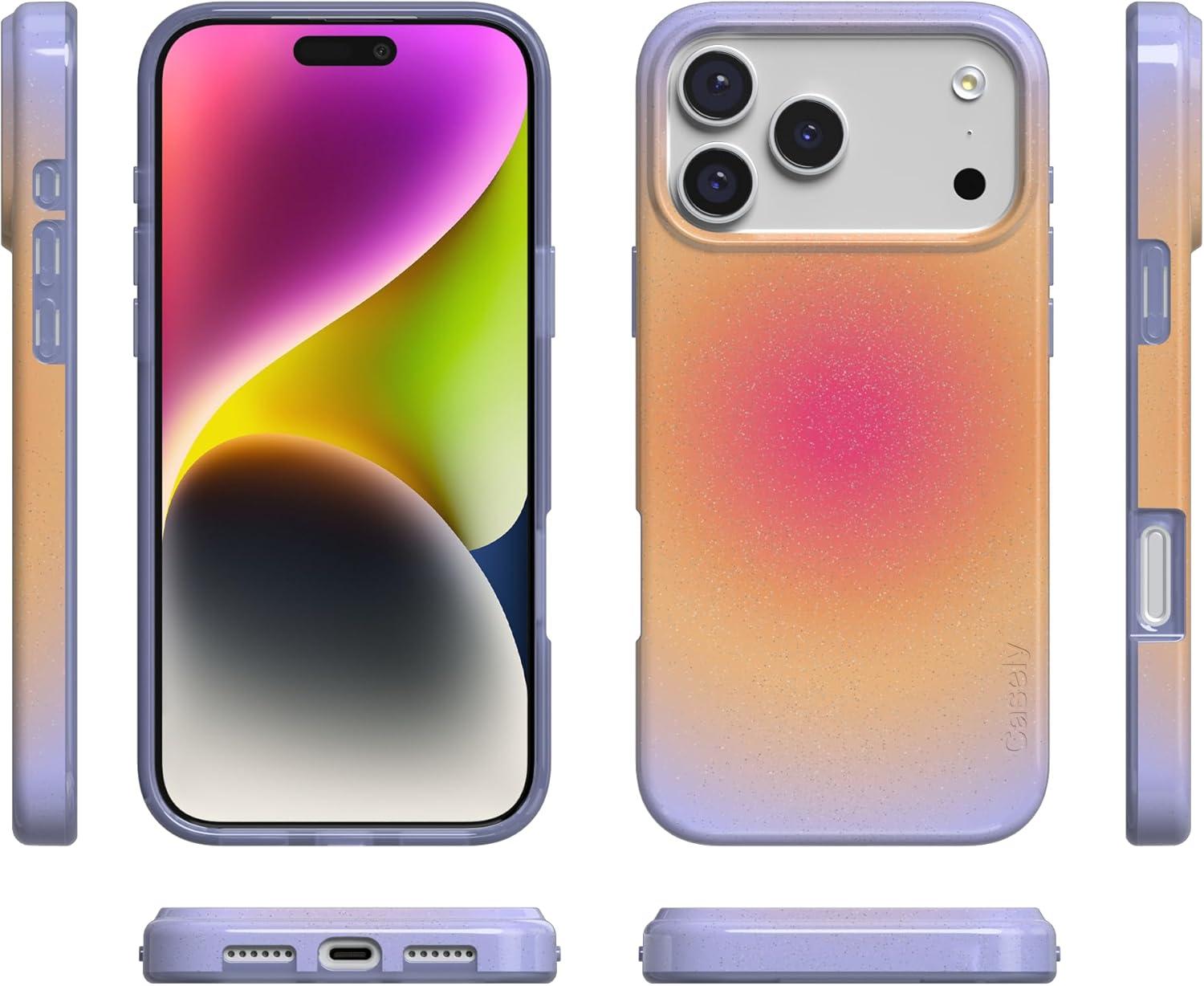 Casely iPhone 17 Pro Max Case | Fallen Gold | Antique Floral | Compatible with MagSafe | Classic Ultra Thin Design(Sunset Halo | Rainbow Aura)