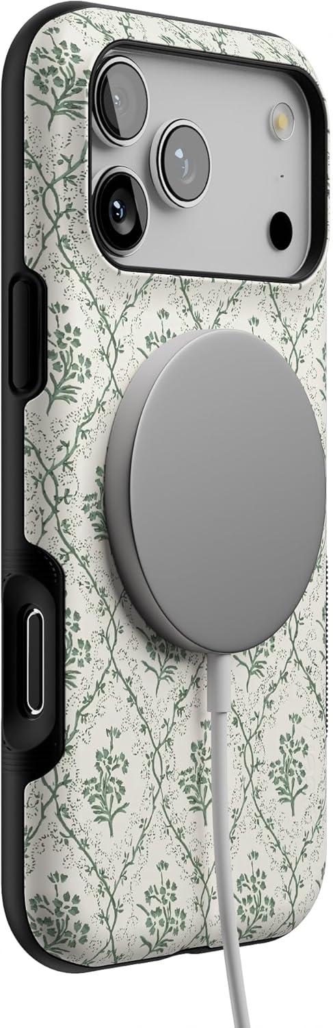 Casely iPhone 17 Pro Max Case | Lonely Hearts Club | The Beatles SGT. Pepper’s | Bold Protective Design | Compatible with MagSafe(Sage Tapestry | Floral Vines)