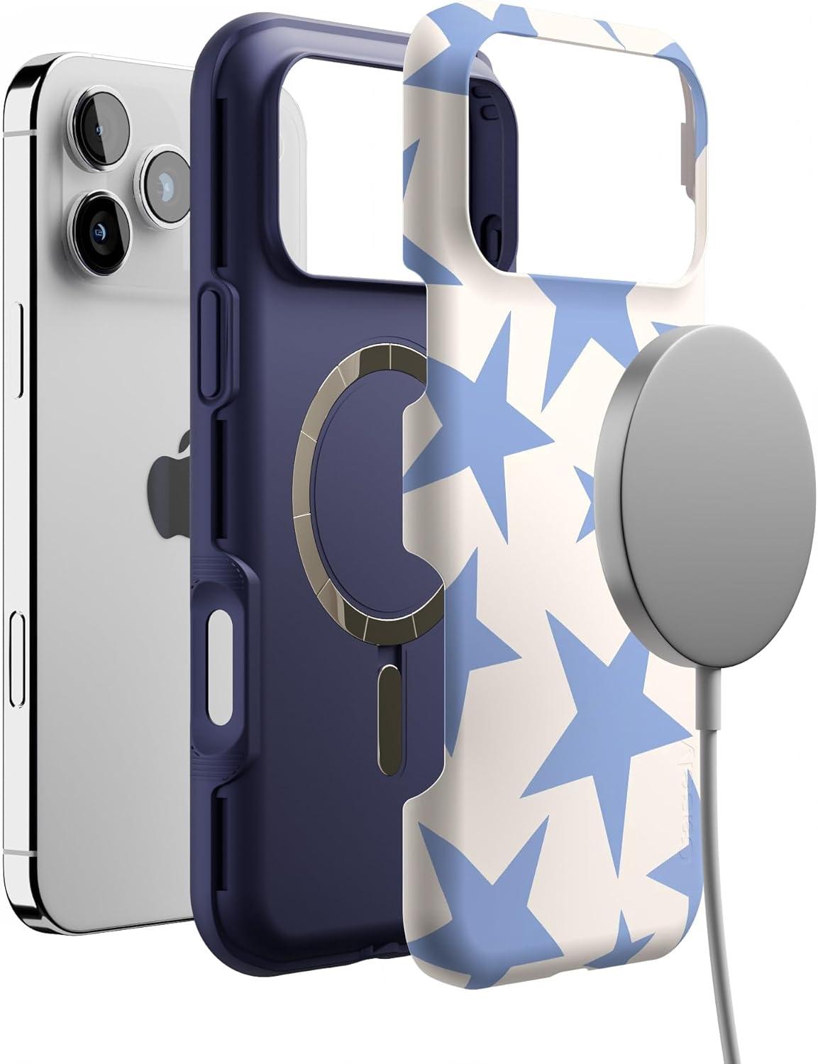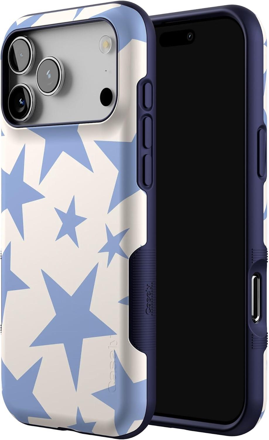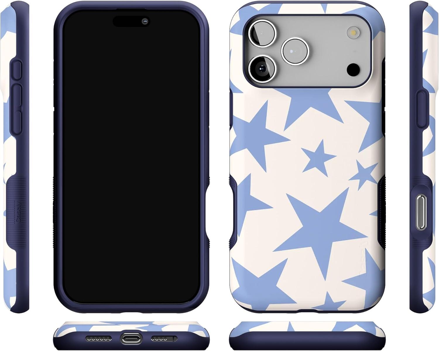 Casely iPhone 17 Pro Max Case | Lonely Hearts Club | The Beatles SGT. Pepper’s | Bold Protective Design | Compatible with MagSafe(Stars Align | Blue & White Stars)
