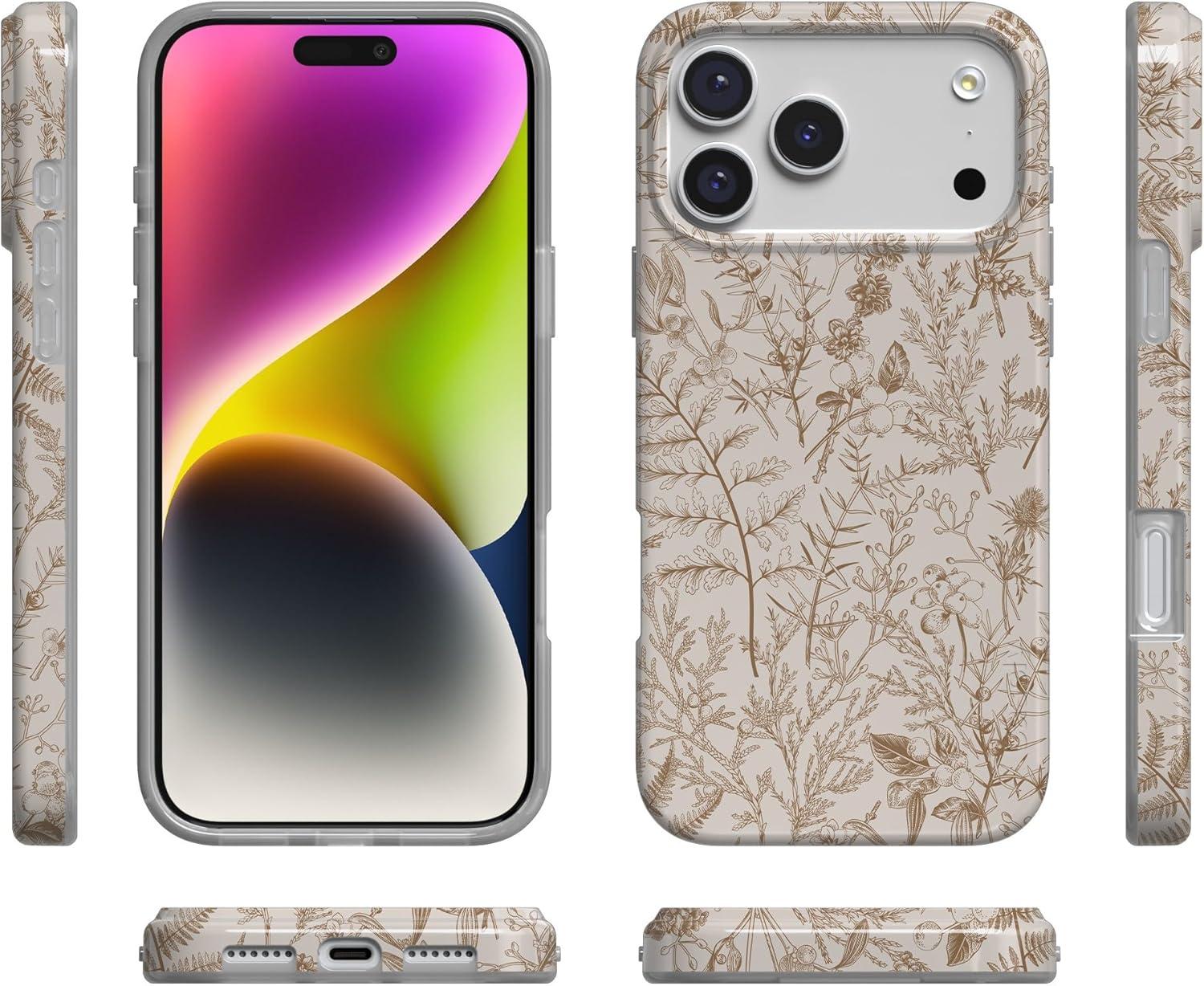 Casely iPhone 17 Pro Max Case | Powder Pups | Dog Sled | Compatible with MagSafe | Classic Ultra Thin Design(Beige Garden | Neutral Floral)