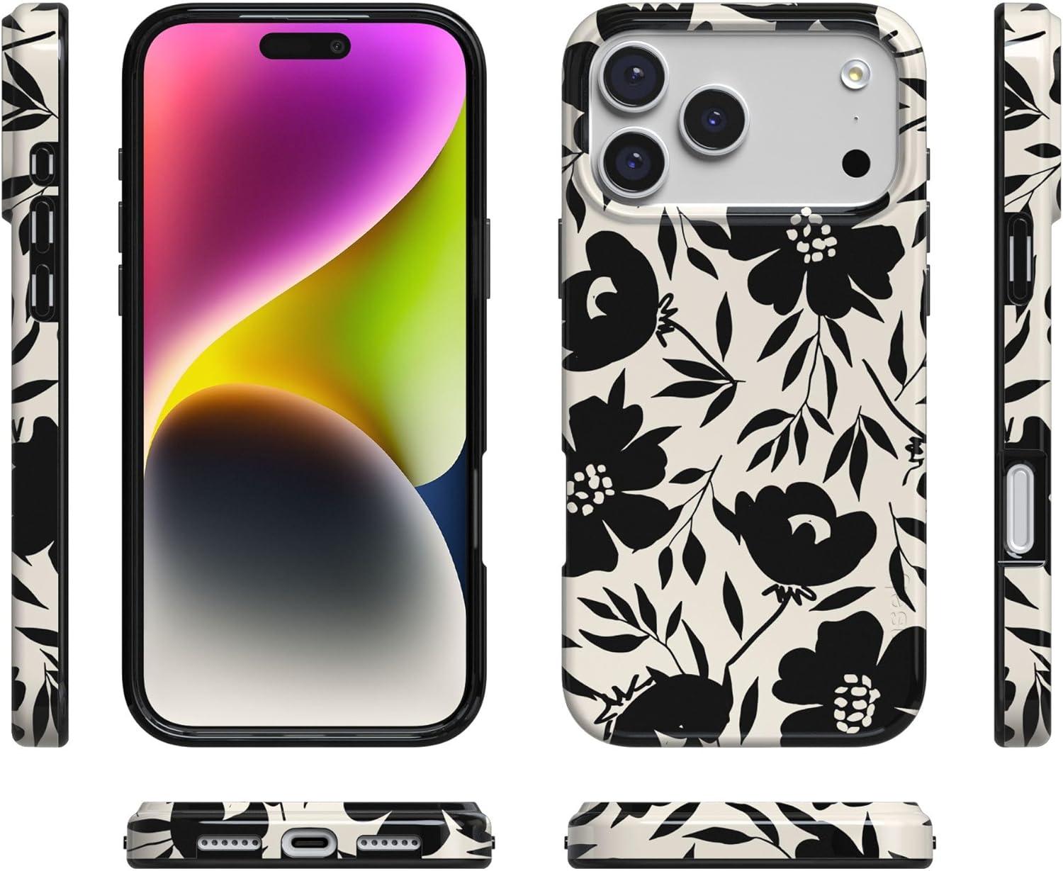 Casely iPhone 17 Pro Max Case | Powder Pups | Dog Sled | Compatible with MagSafe | Classic Ultra Thin Design(Dark Fantasy | Contrast Floral)