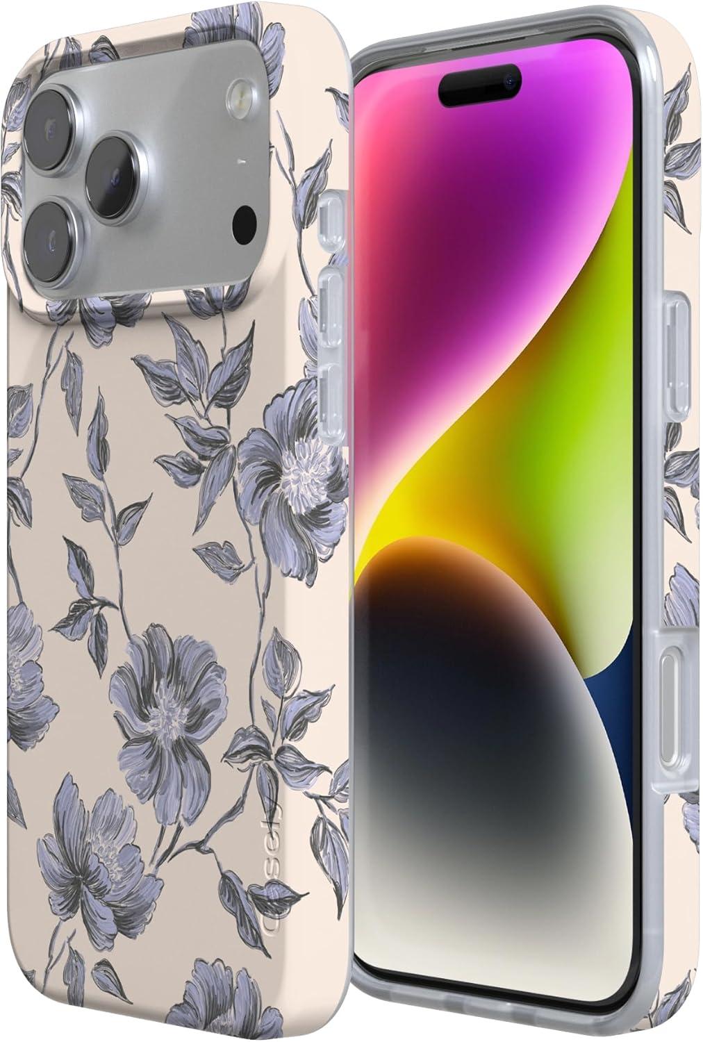 Casely iPhone 17 Pro Max Case | Powder Pups | Dog Sled | Compatible with MagSafe | Classic Ultra Thin Design(Ink & Iris | Vintage Floral)