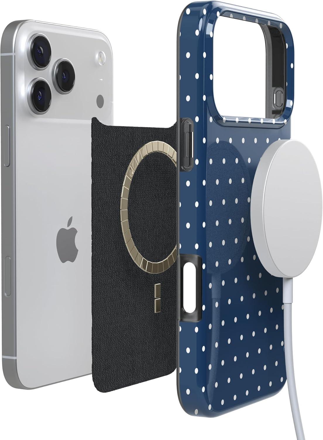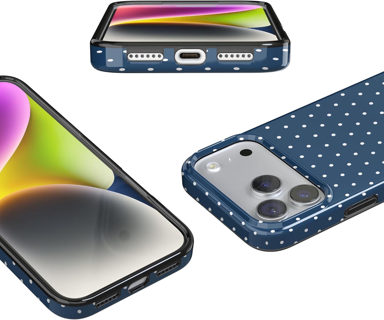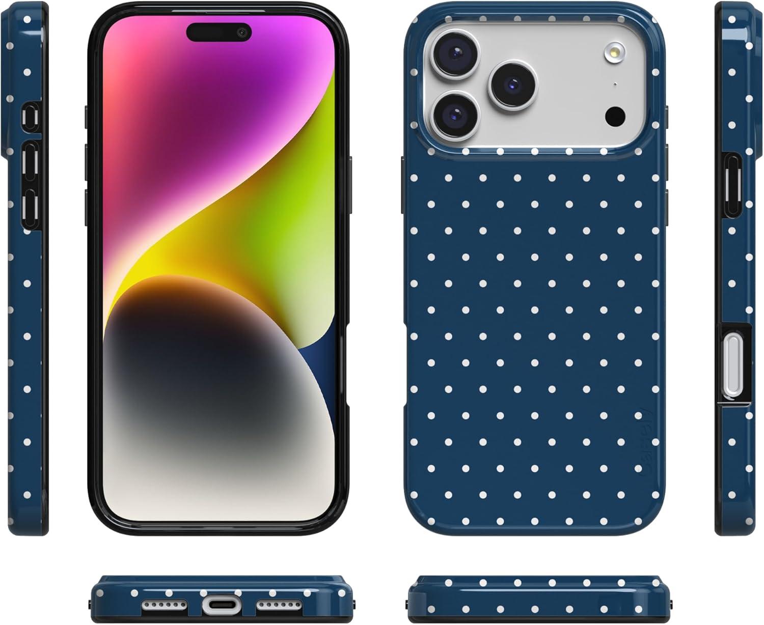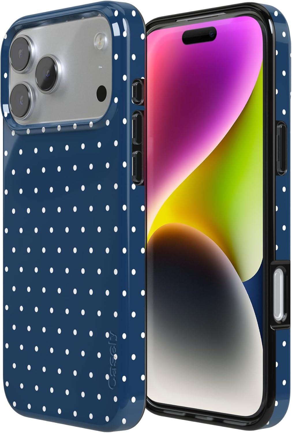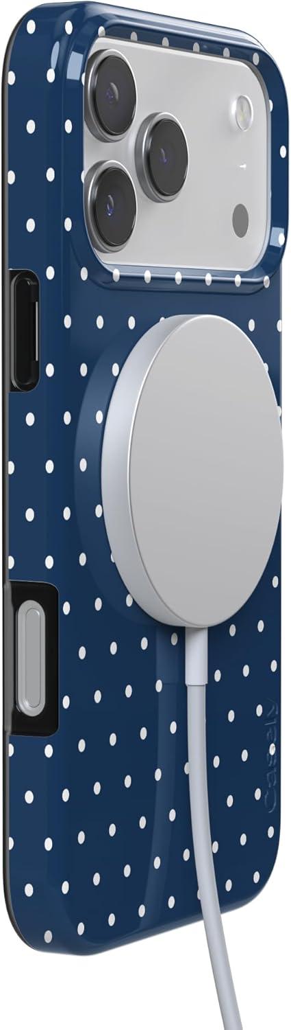 Casely iPhone 17 Pro Max Case | Powder Pups | Dog Sled | Compatible with MagSafe | Classic Ultra Thin Design(On the Dot | Navy Polka Dot)