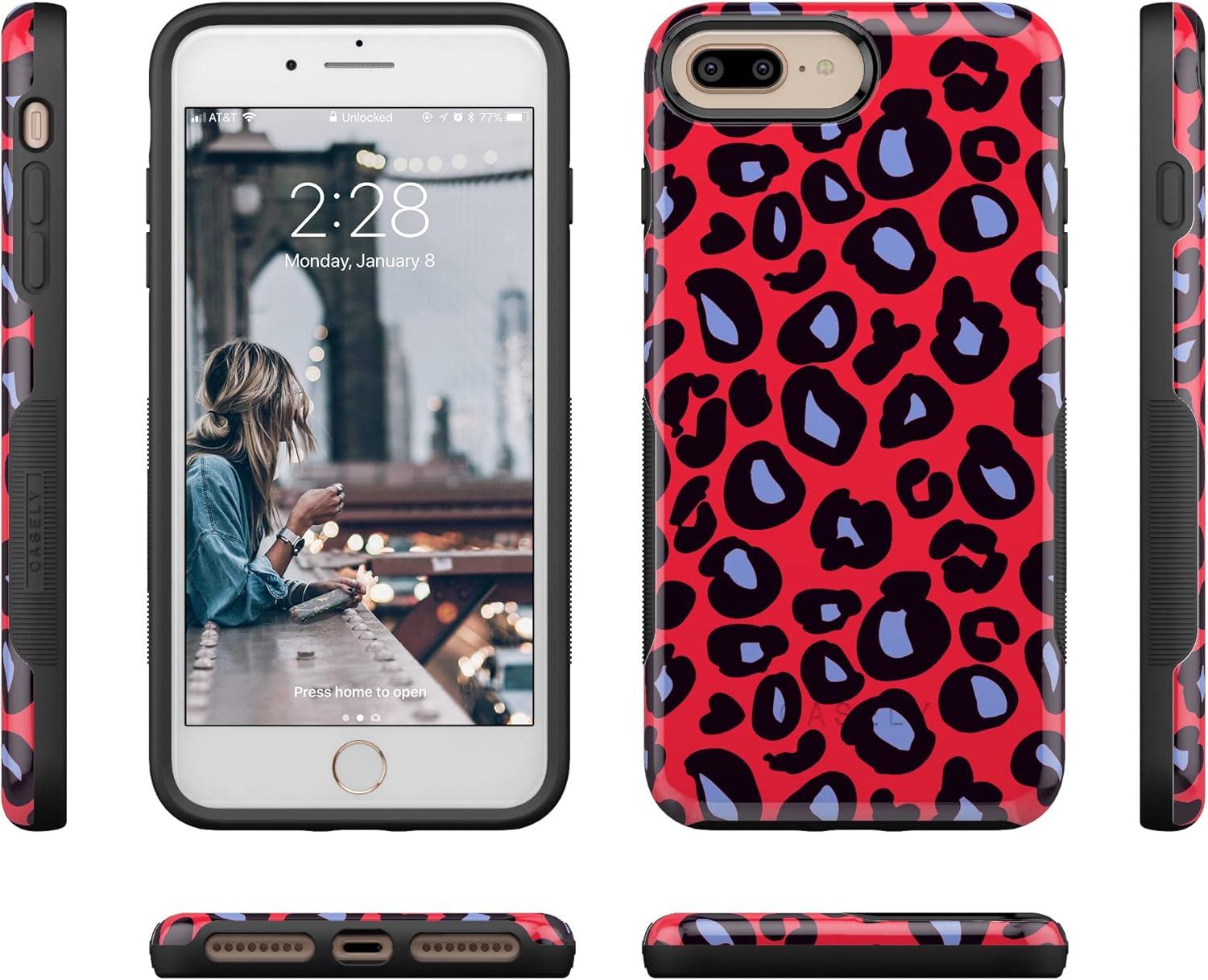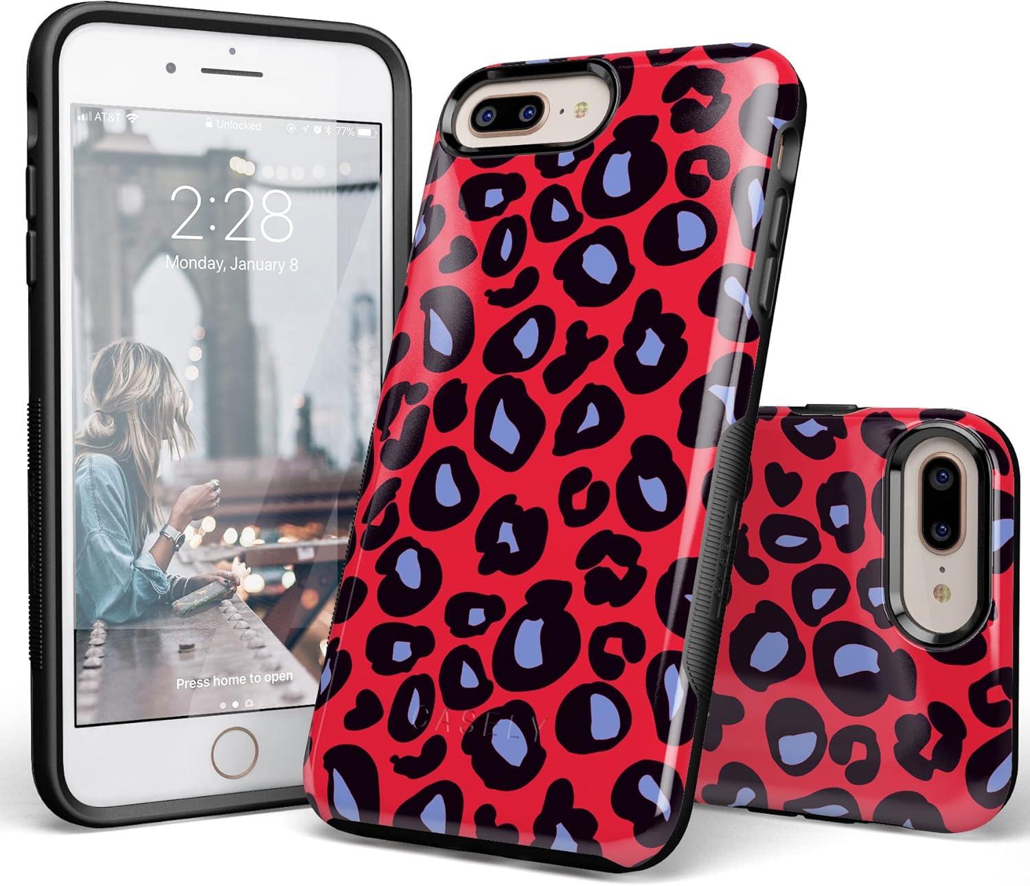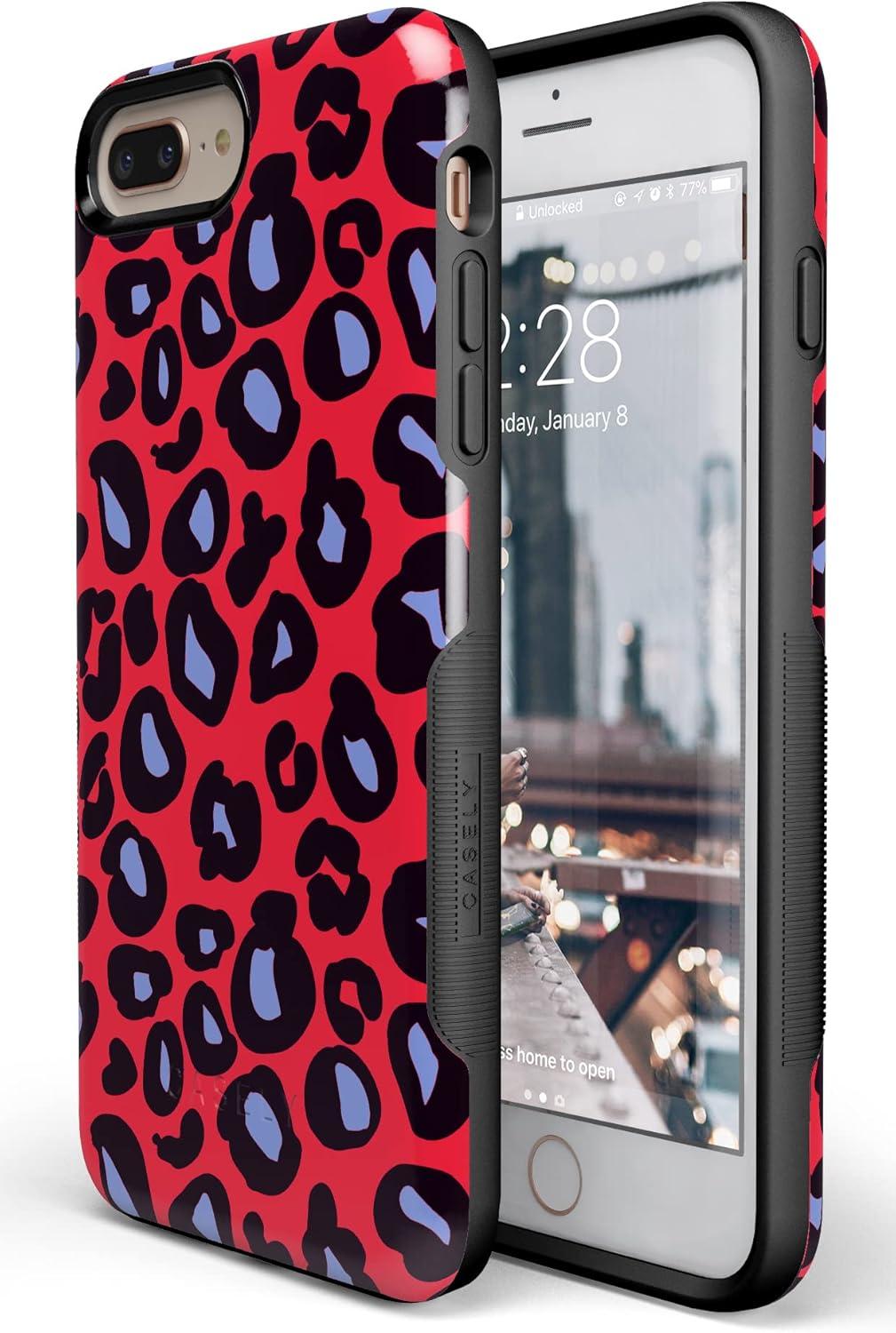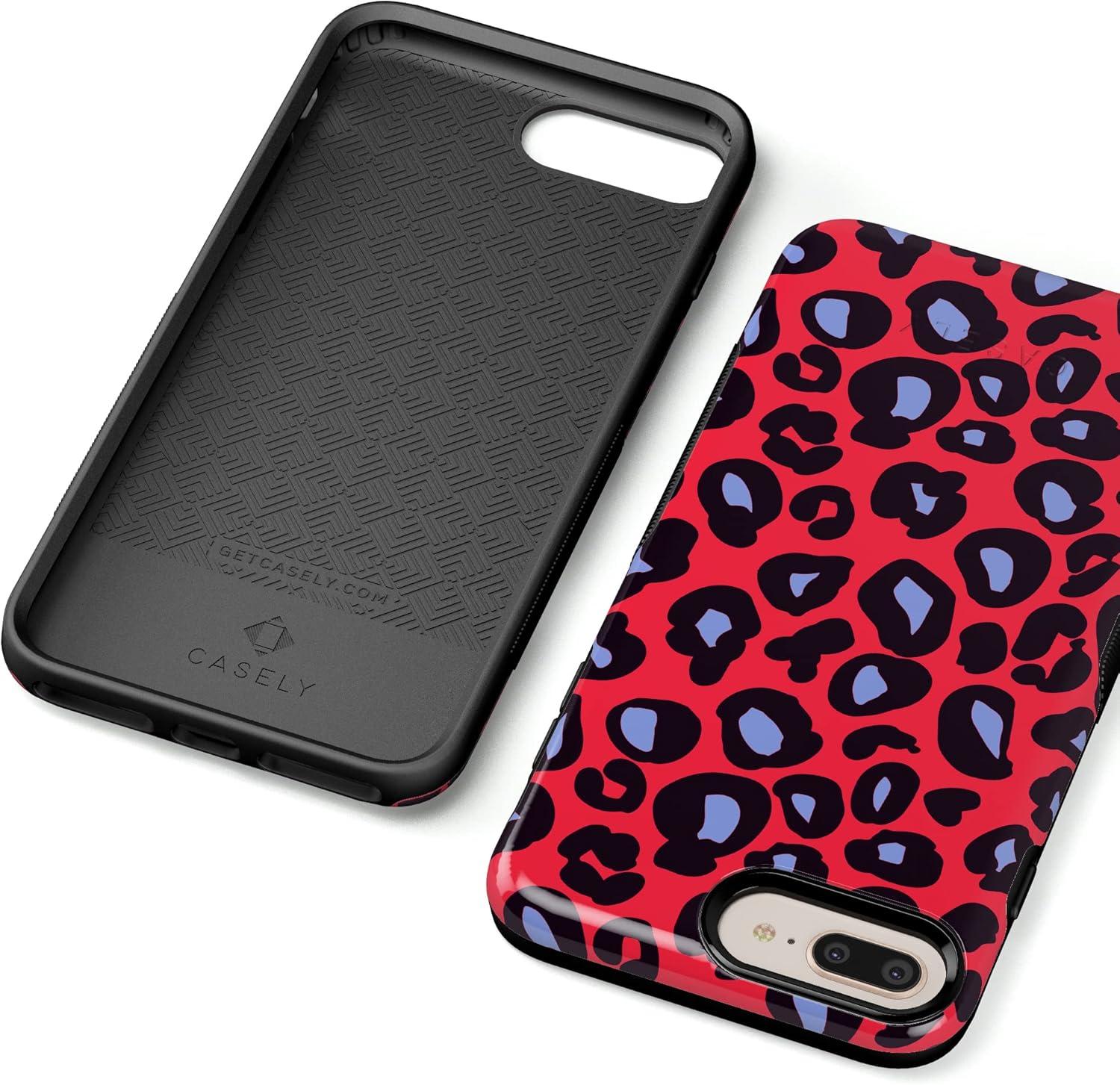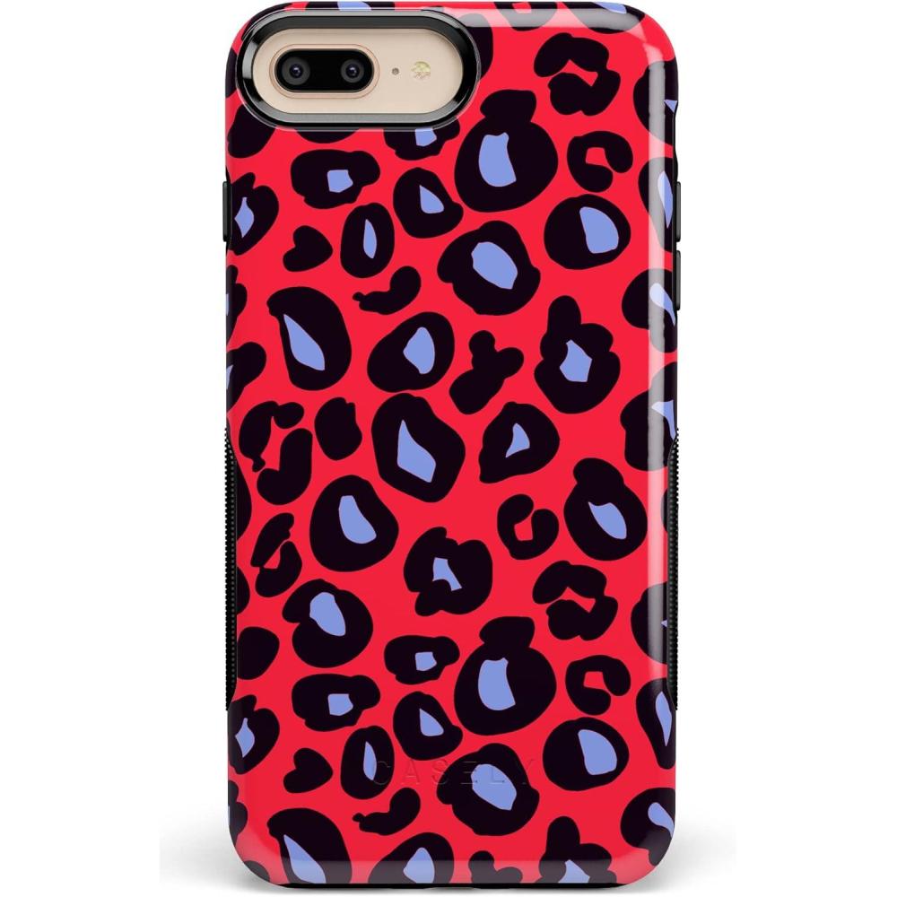 Casely iPhone 6/7/8 Plus Case | Make Your Mark | Crayola Paint Case(Into the Wild | Red & Blue Leopard)