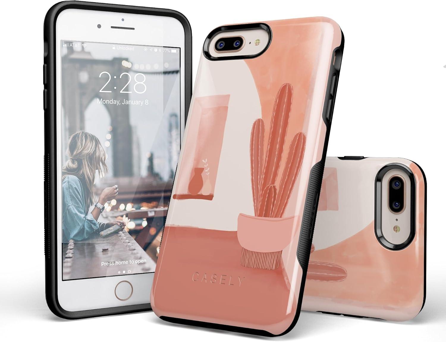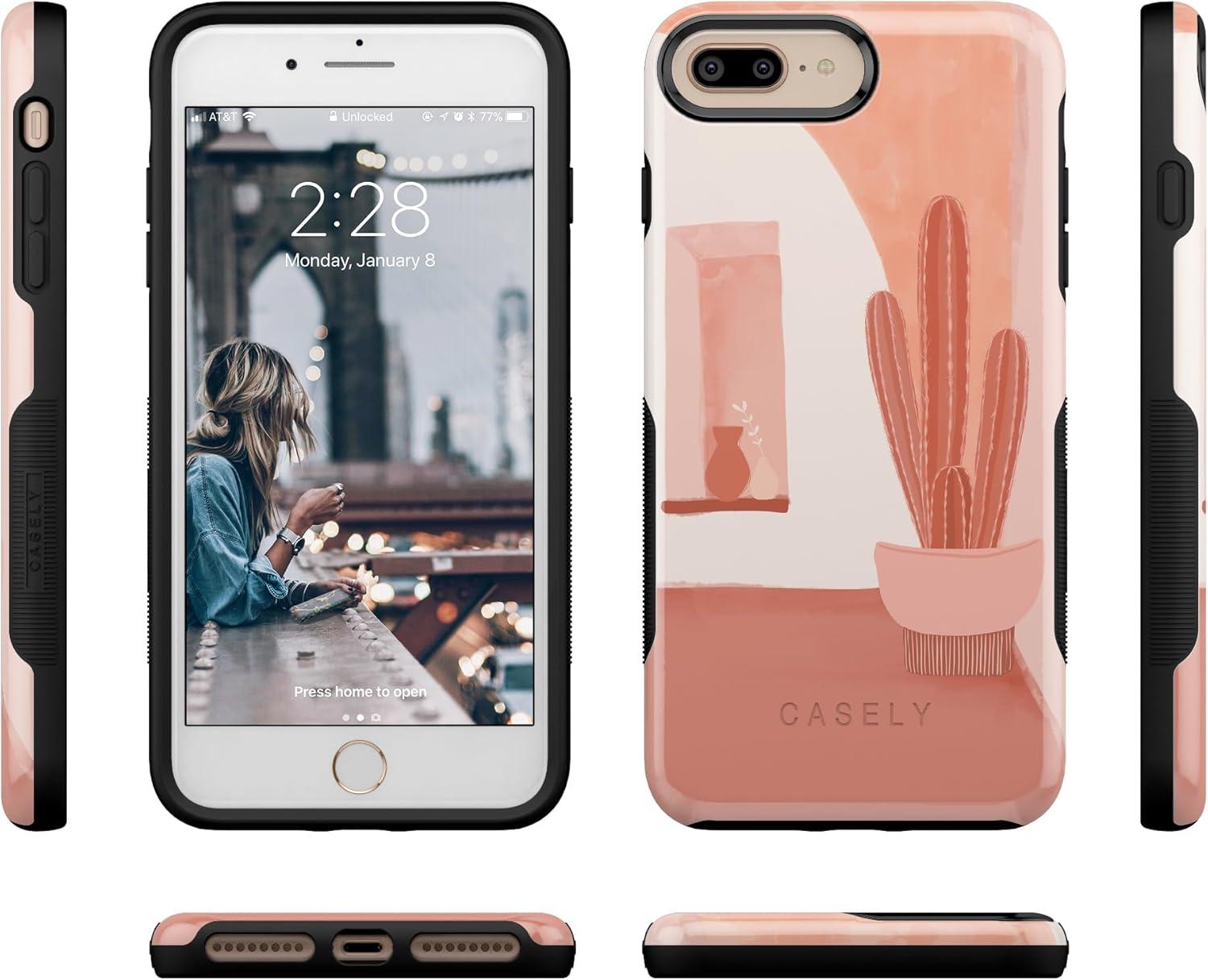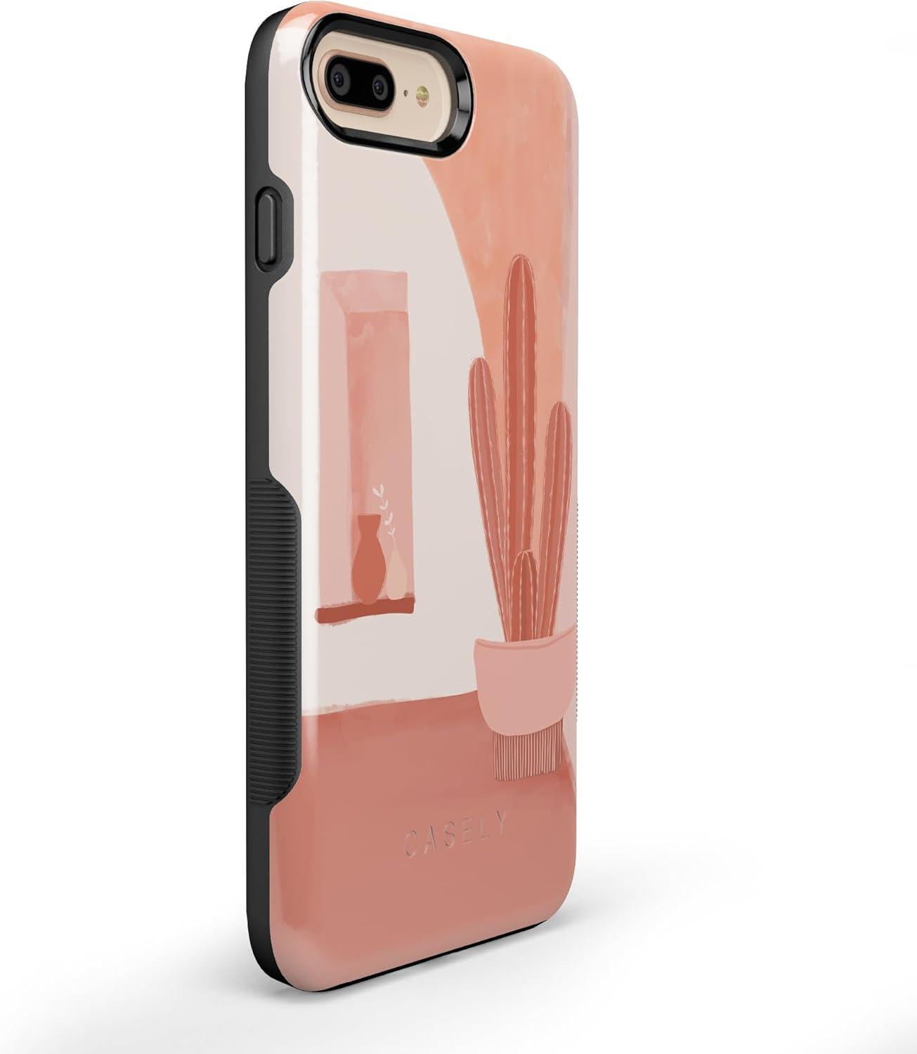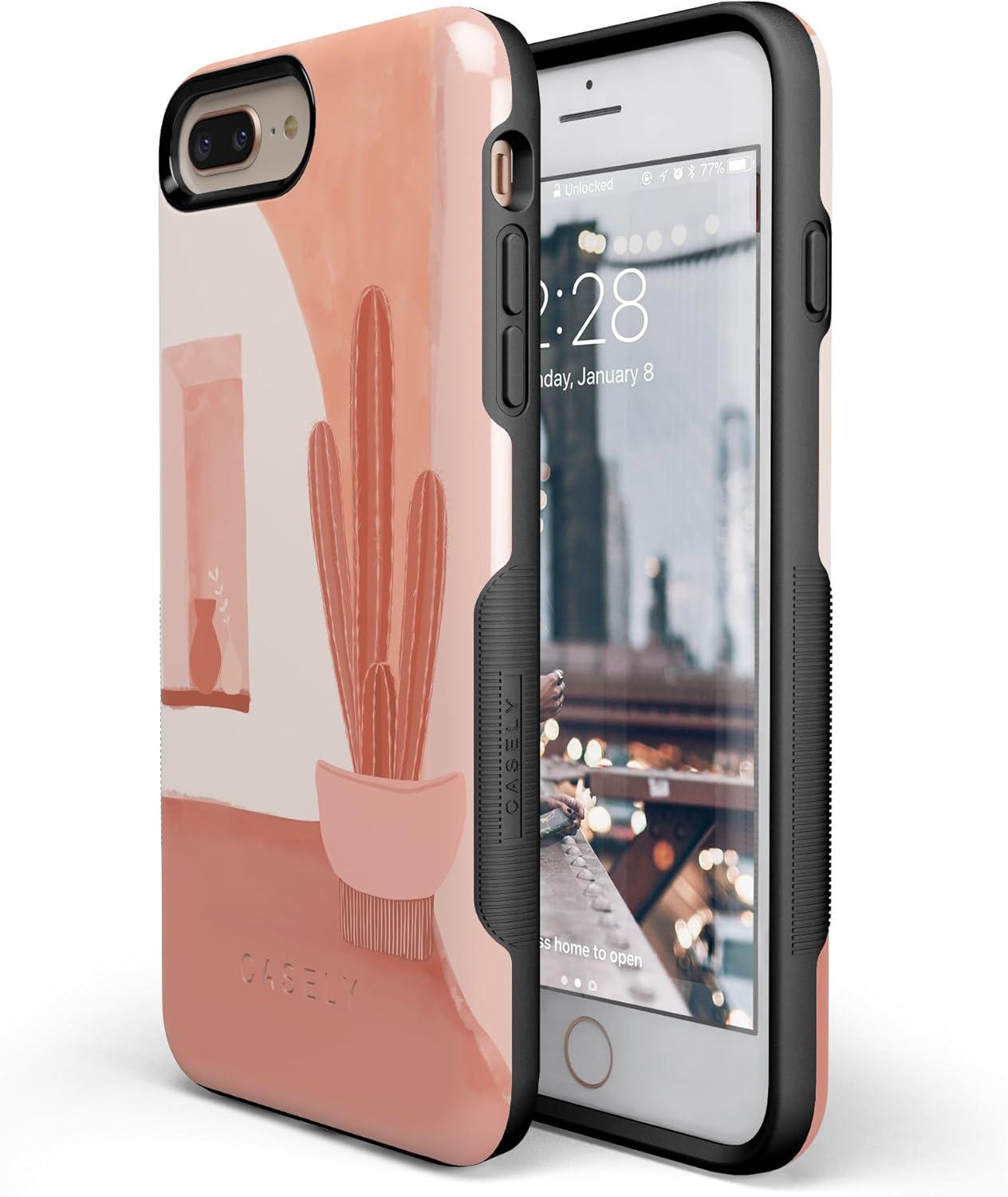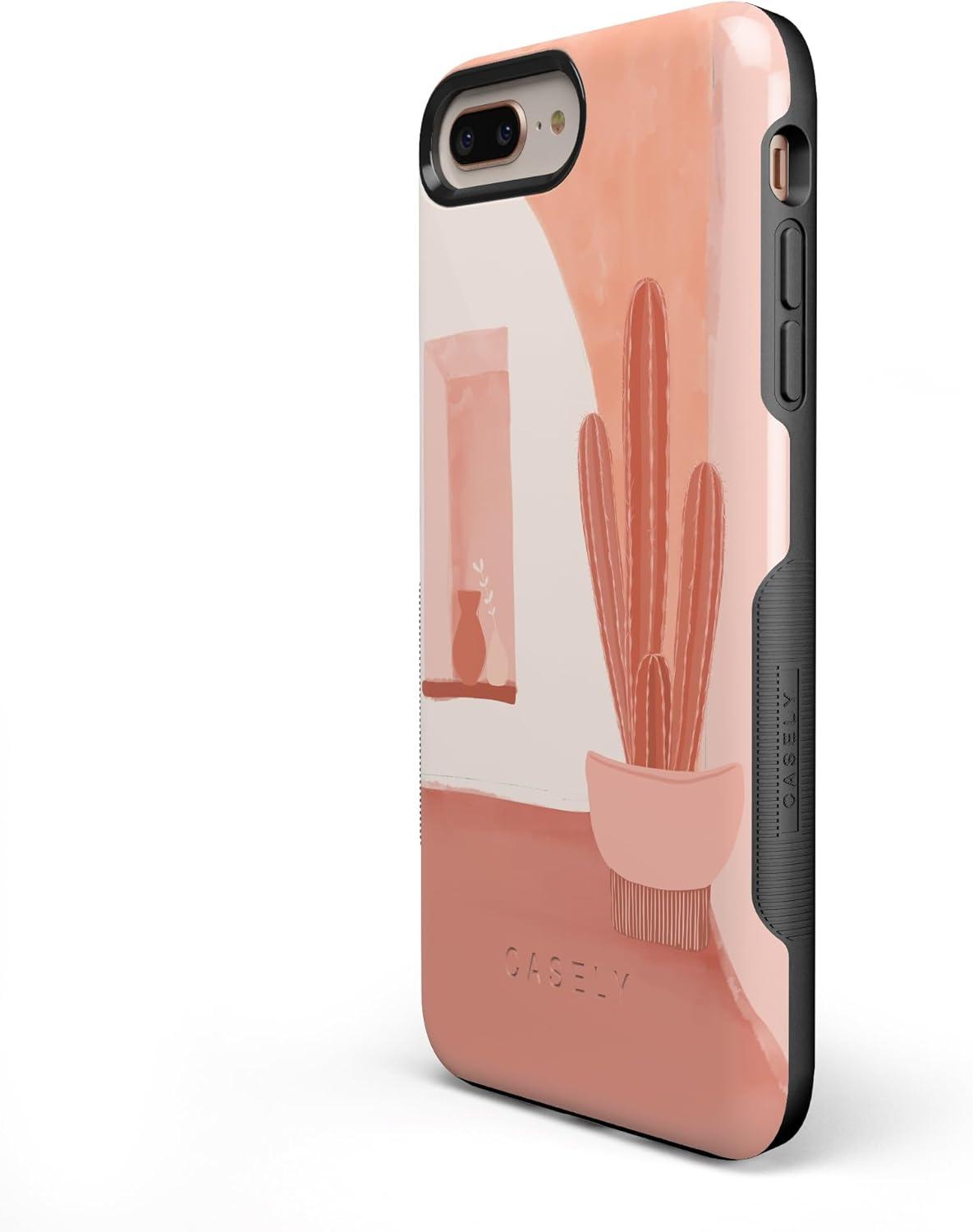 Casely iPhone 6/7/8 Plus Case | Pura Vida | Tropical Dreams | Essential Slim Dual-Layer Protective Design(Desert Daze | Peachy Cactus)
