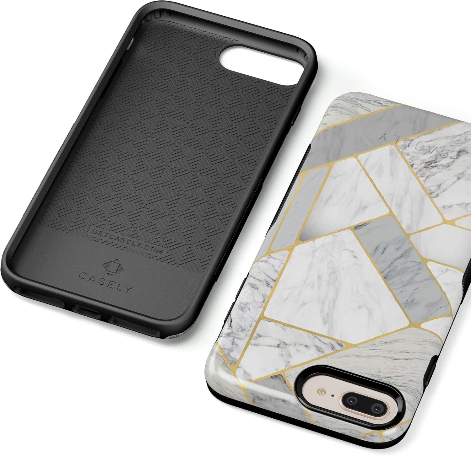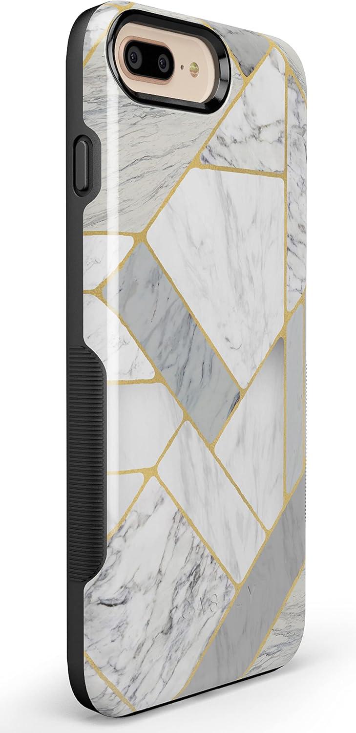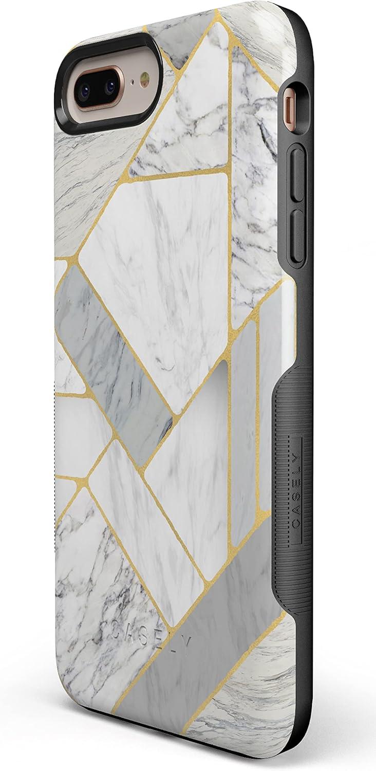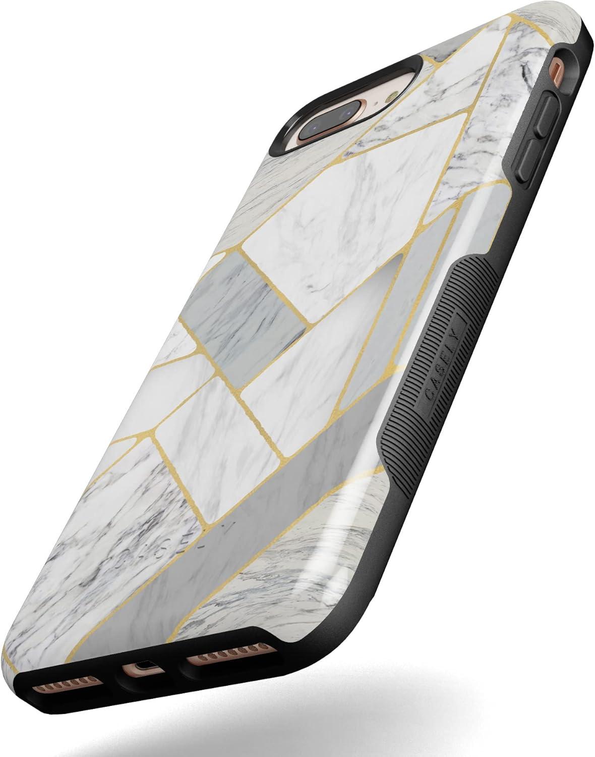 Casely iPhone 6/7/8 Plus Case | Pura Vida | Tropical Dreams | Essential Slim Dual-Layer Protective Design(Geo White and Gold Marble)