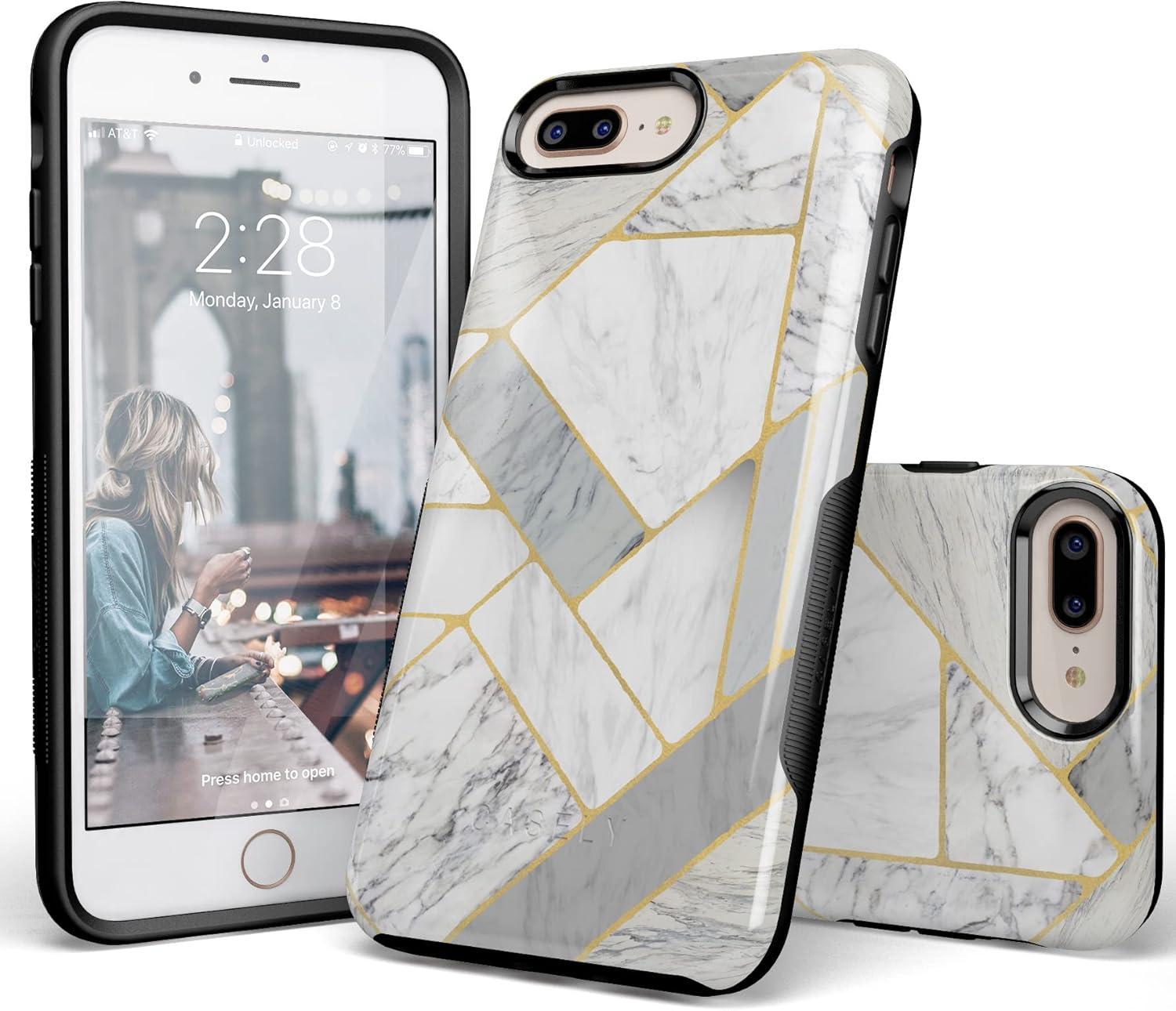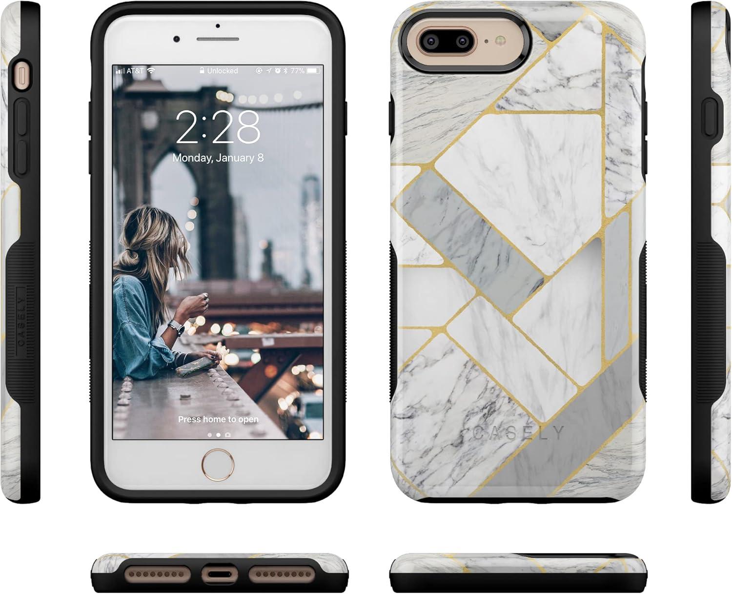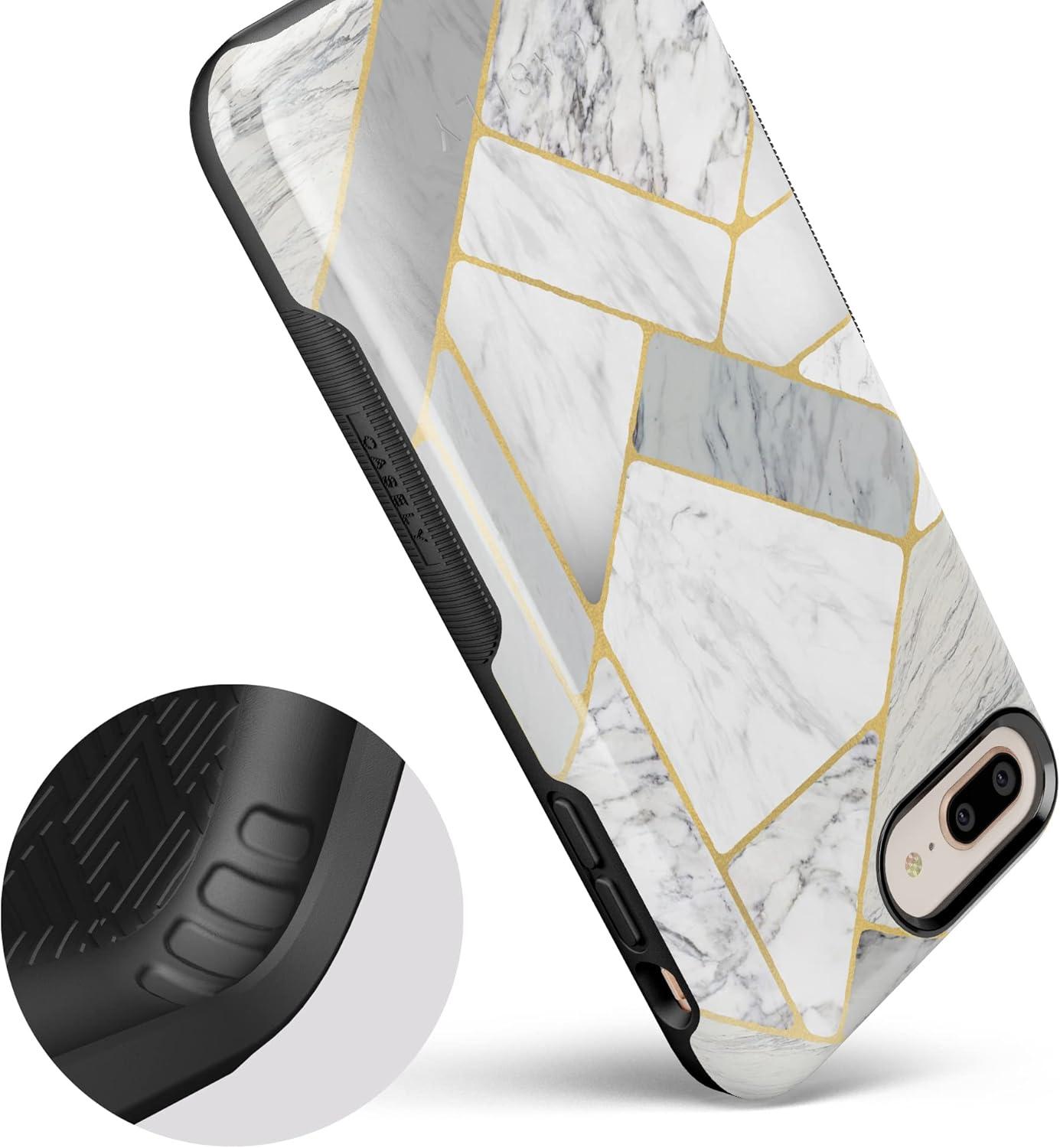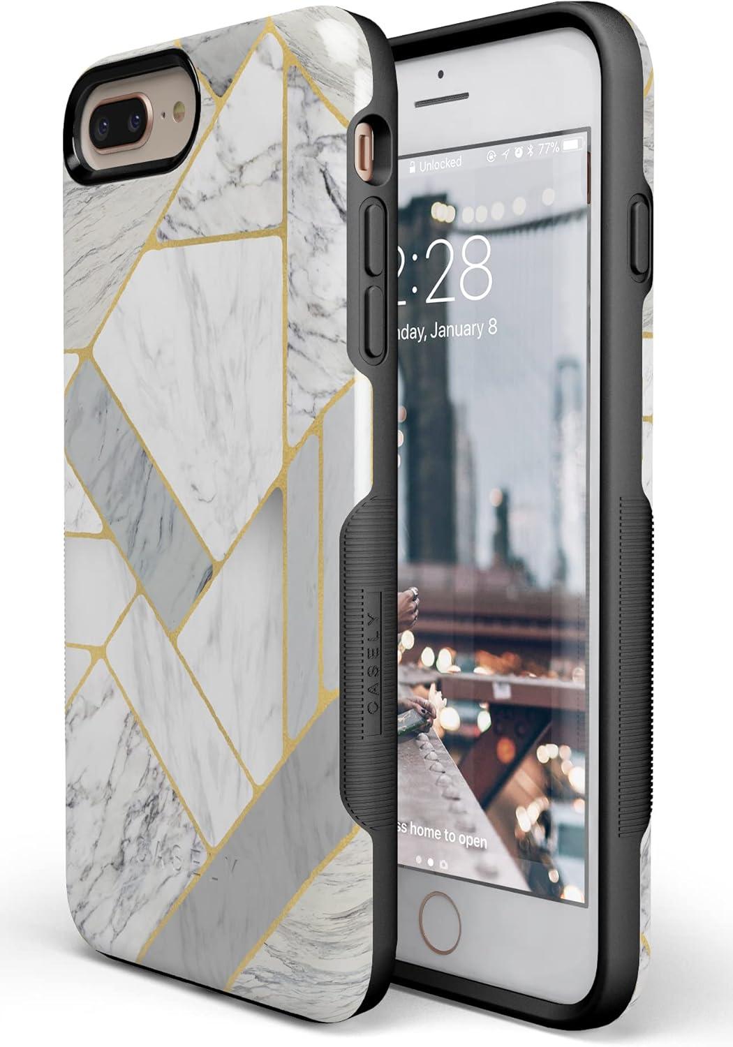 Casely iPhone 6/7/8 Plus Case | Pura Vida | Tropical Dreams | Essential Slim Dual-Layer Protective Design(Geo White and Gold Marble)