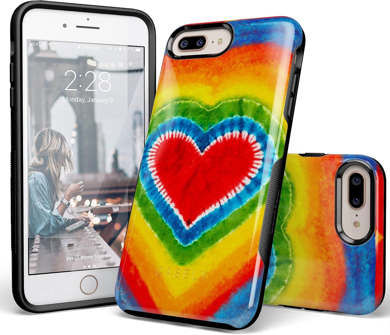 Casely iPhone 6/7/8 Plus Case | Pura Vida | Tropical Dreams | Essential Slim Dual-Layer Protective Design(I Heart Tie Dye)