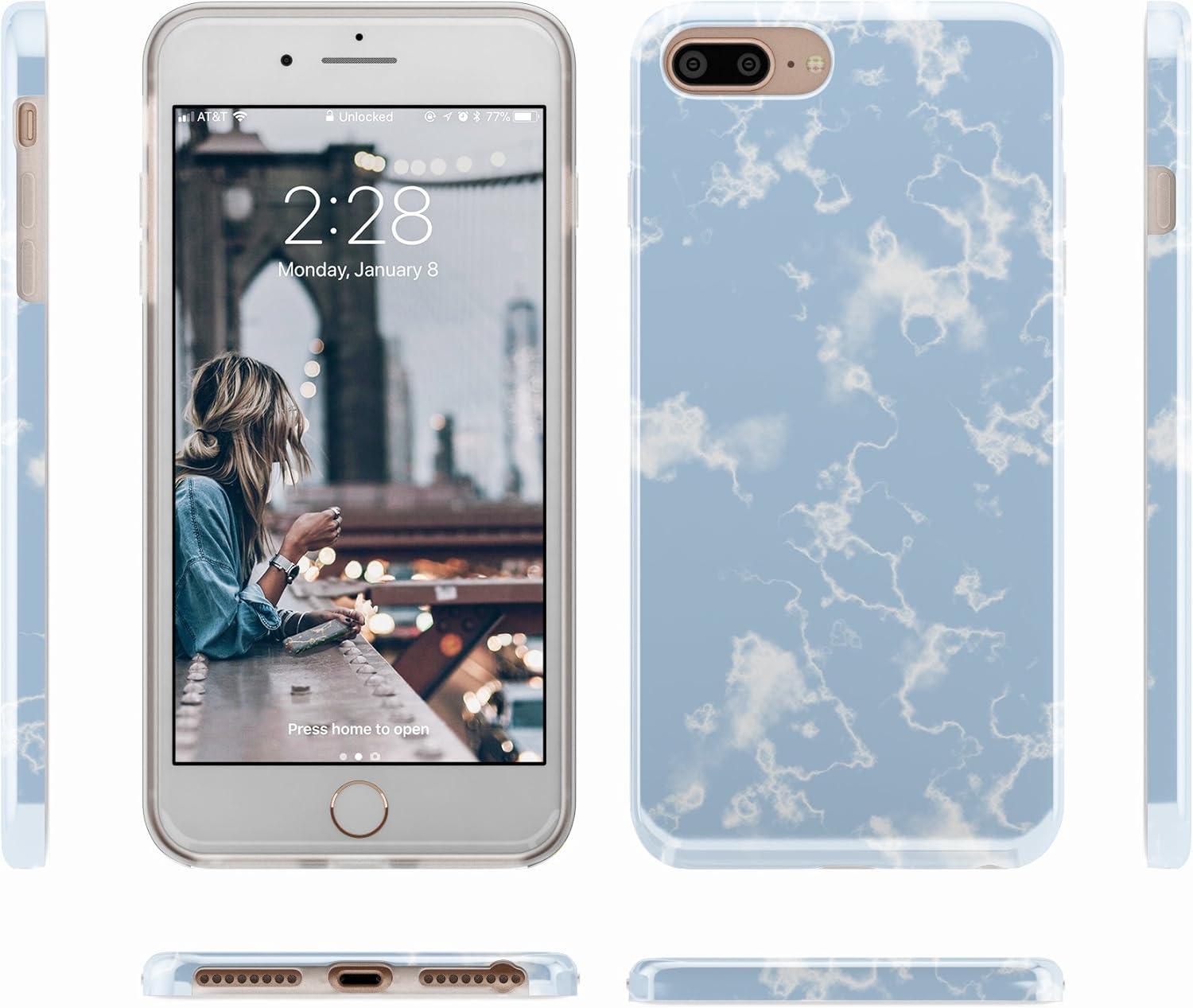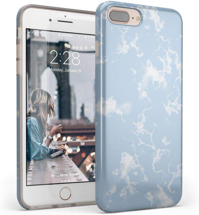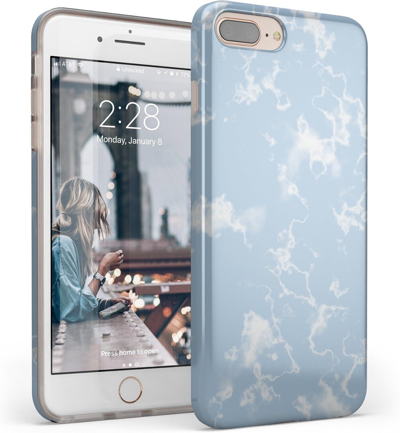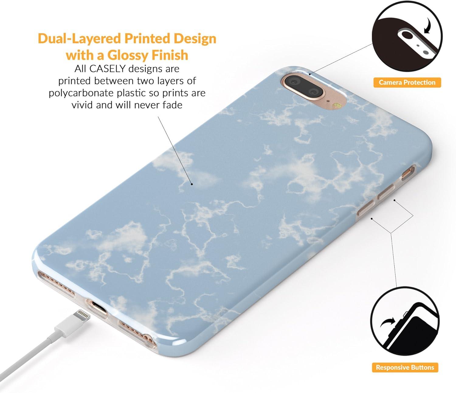 Casely iPhone 6/7/8 Plus Case | Something’s Fishy | Navy Blue & Yellow Fish Print | Classic Ultra Slim Design(Light Blue Skies Marble Clouds)