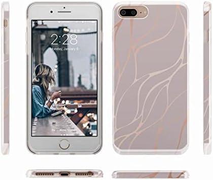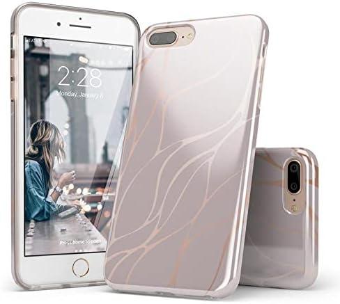 Casely iPhone 6/7/8 Plus Case | Something’s Fishy | Navy Blue & Yellow Fish Print | Classic Ultra Slim Design(Pink and Gold Metallic Waves)