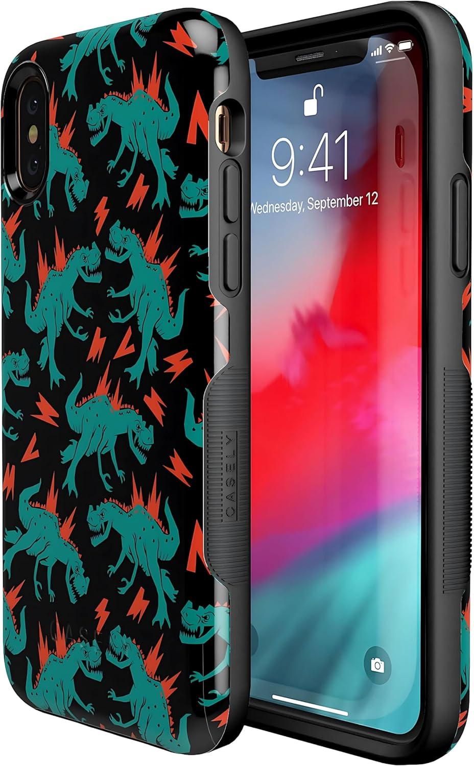Casely iPhone X/XS Case | Veneta Tapestry | Grateful Dead Tie Dye | Bold Protective Design(You’re Dino-mite | Green Dinosaur)