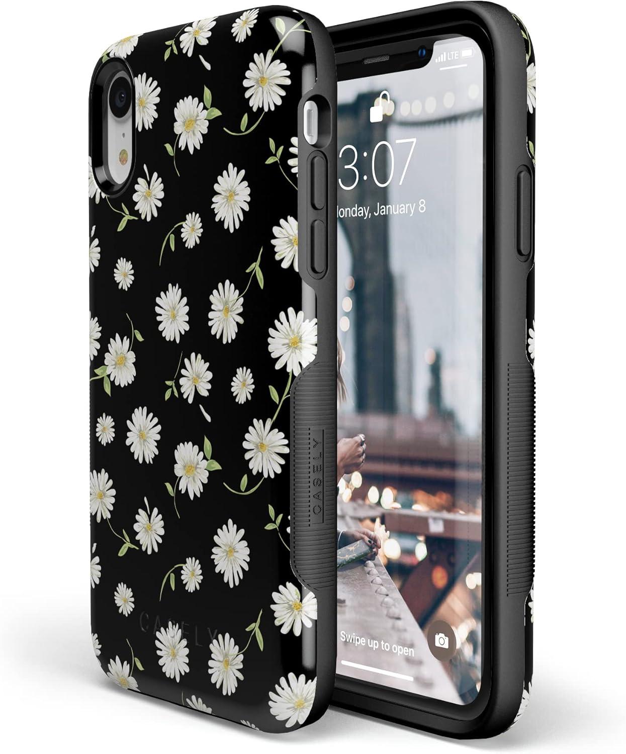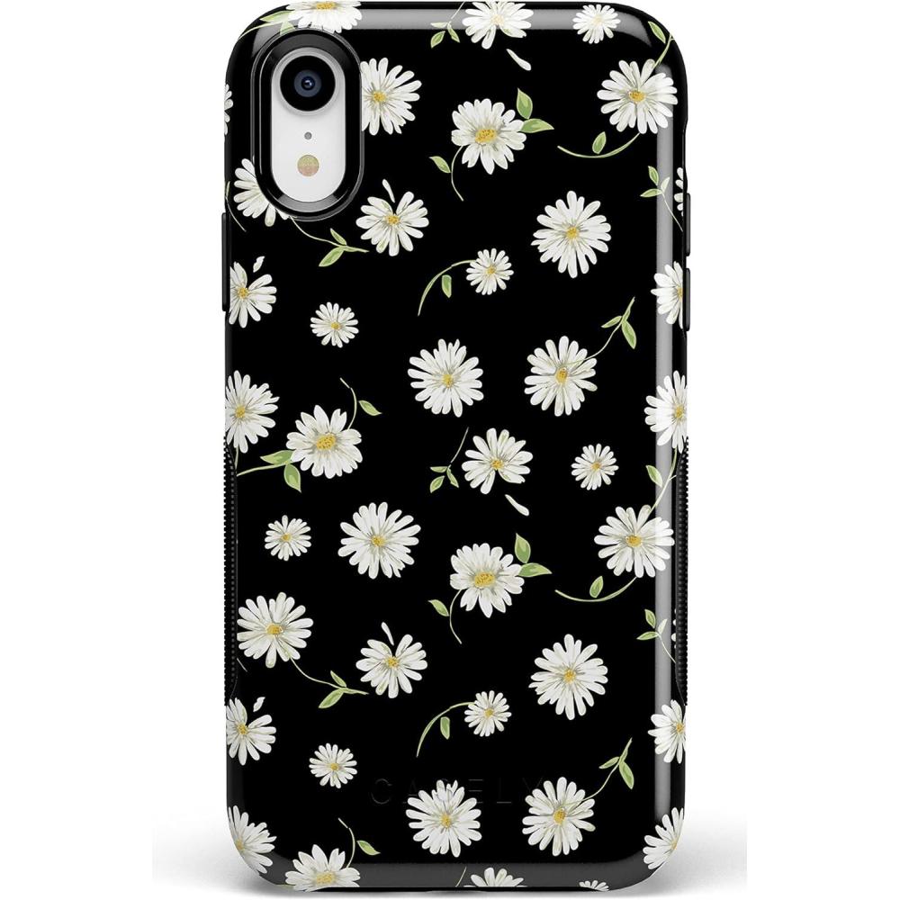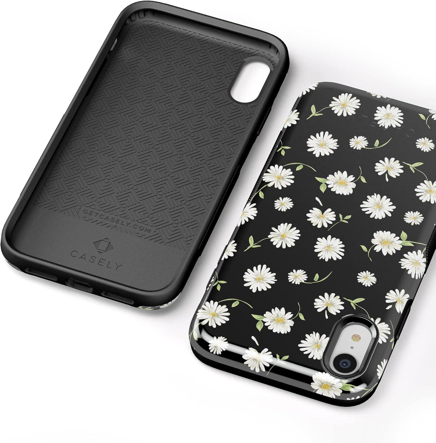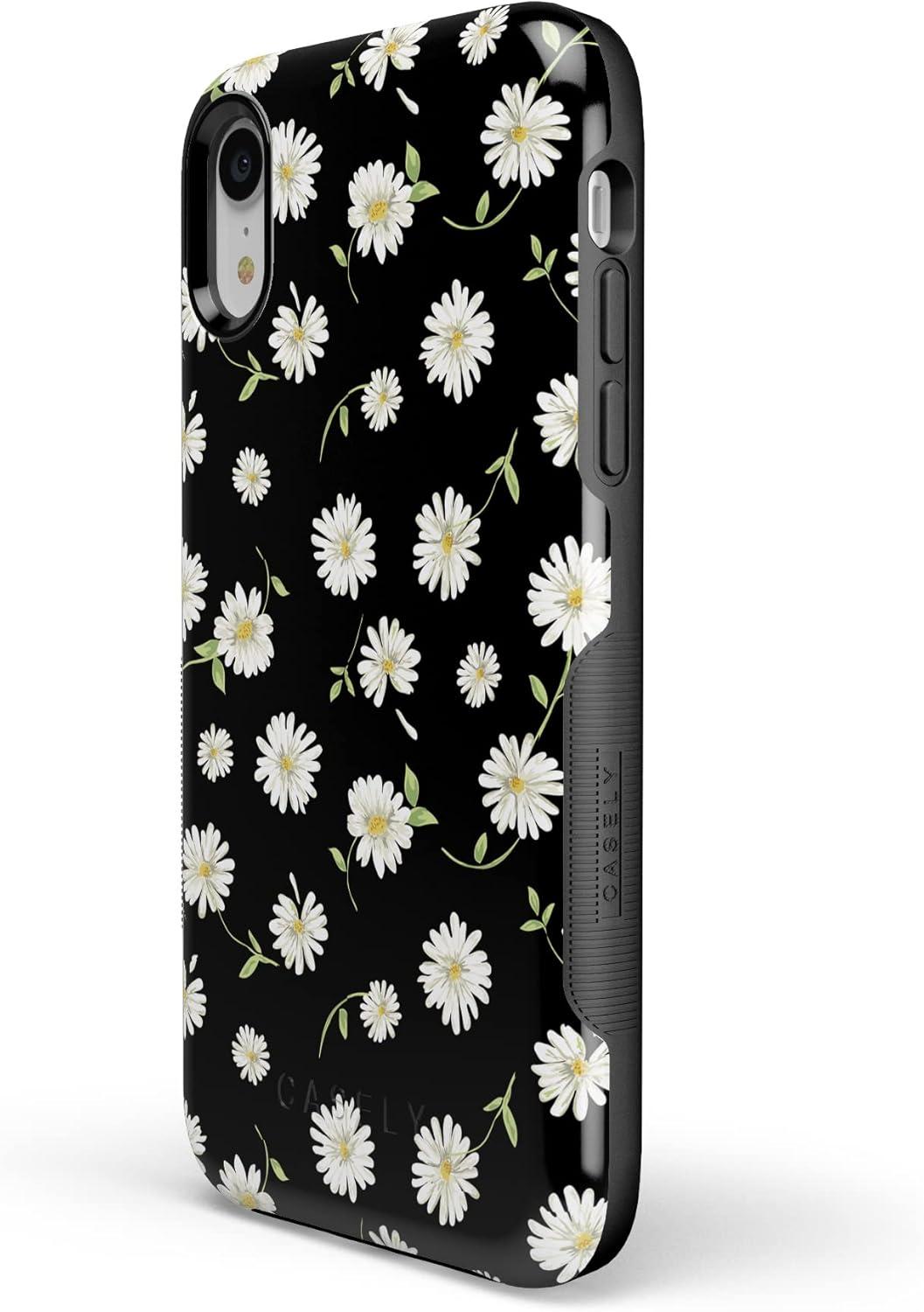 Casely iPhone XR Case | Goth Girlie | Black Bows | Essential Slim Dual-Layer Protective Design(27 Daisy Daydream Black Floral)