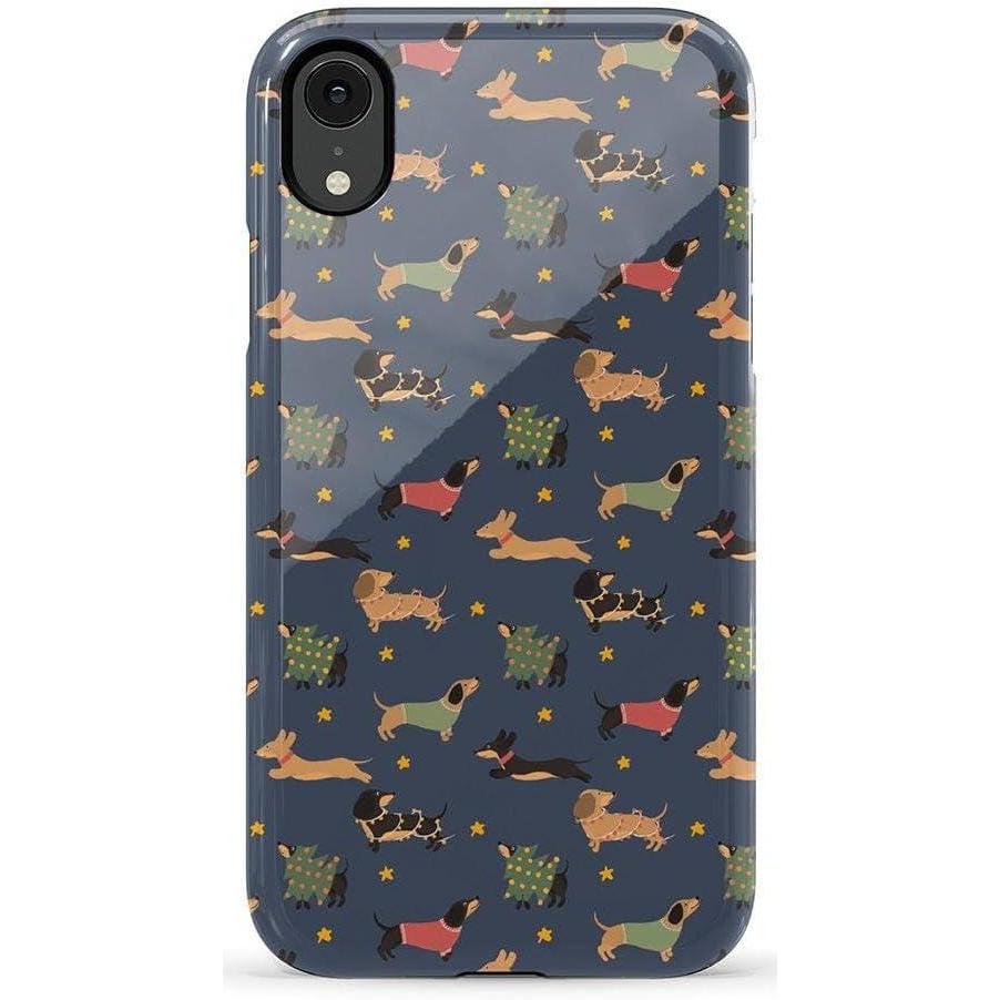 Casely iPhone XR Case | Goth Girlie | Black Bows | Essential Slim Dual-Layer Protective Design(Dashing Doxies | Dachshund Dog)