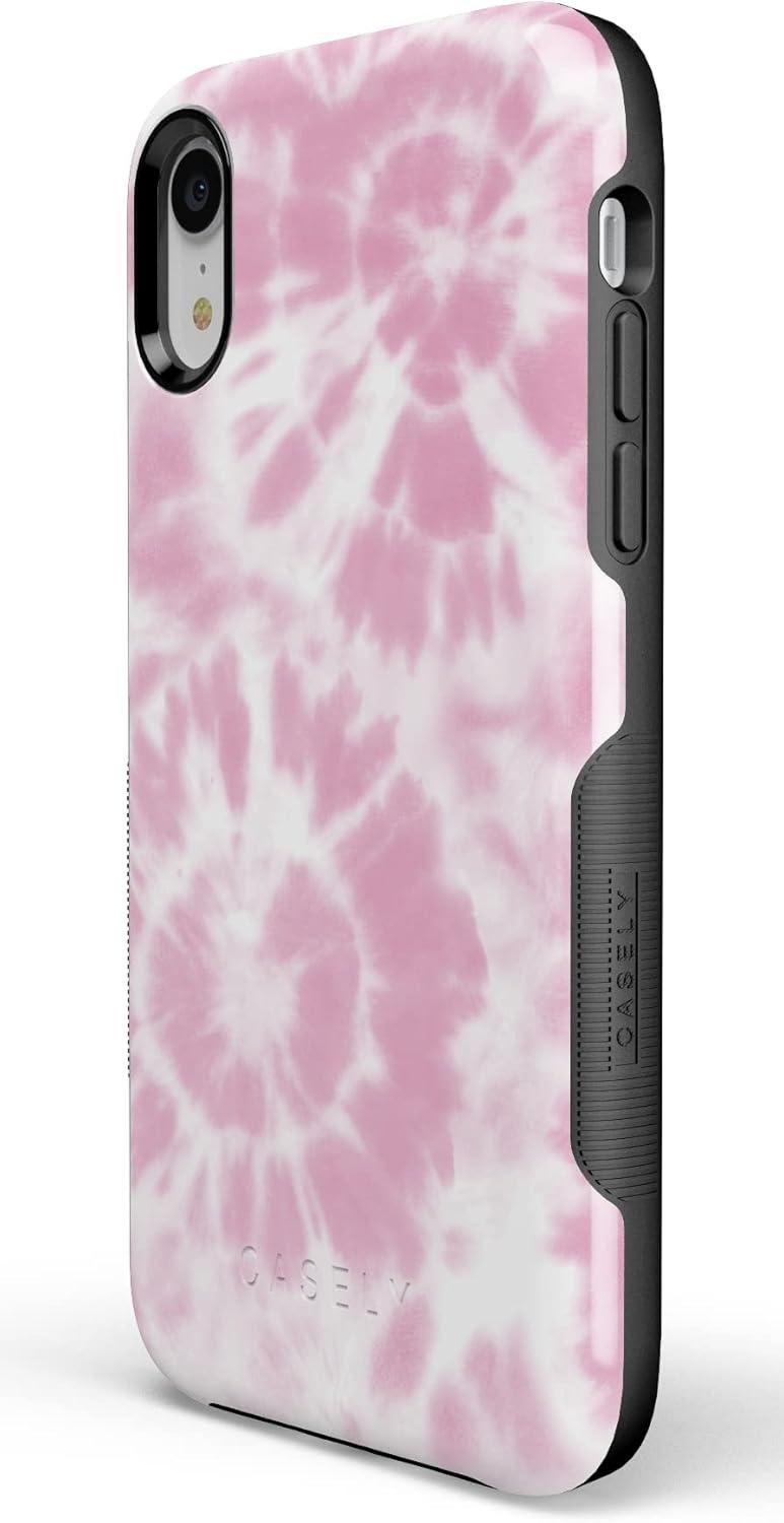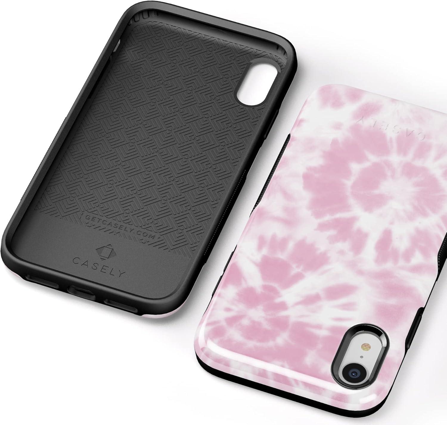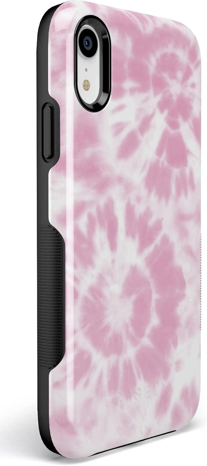 Casely iPhone XR Case | Goth Girlie | Black Bows | Essential Slim Dual-Layer Protective Design(Down for Whatever | Light Pink Tie Dye)