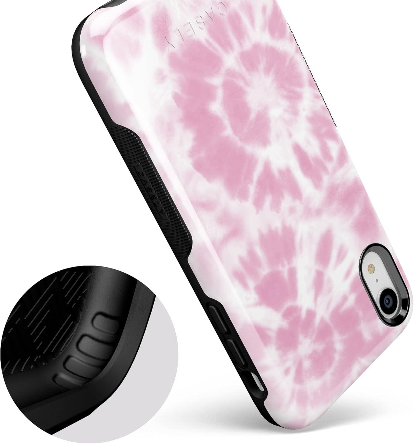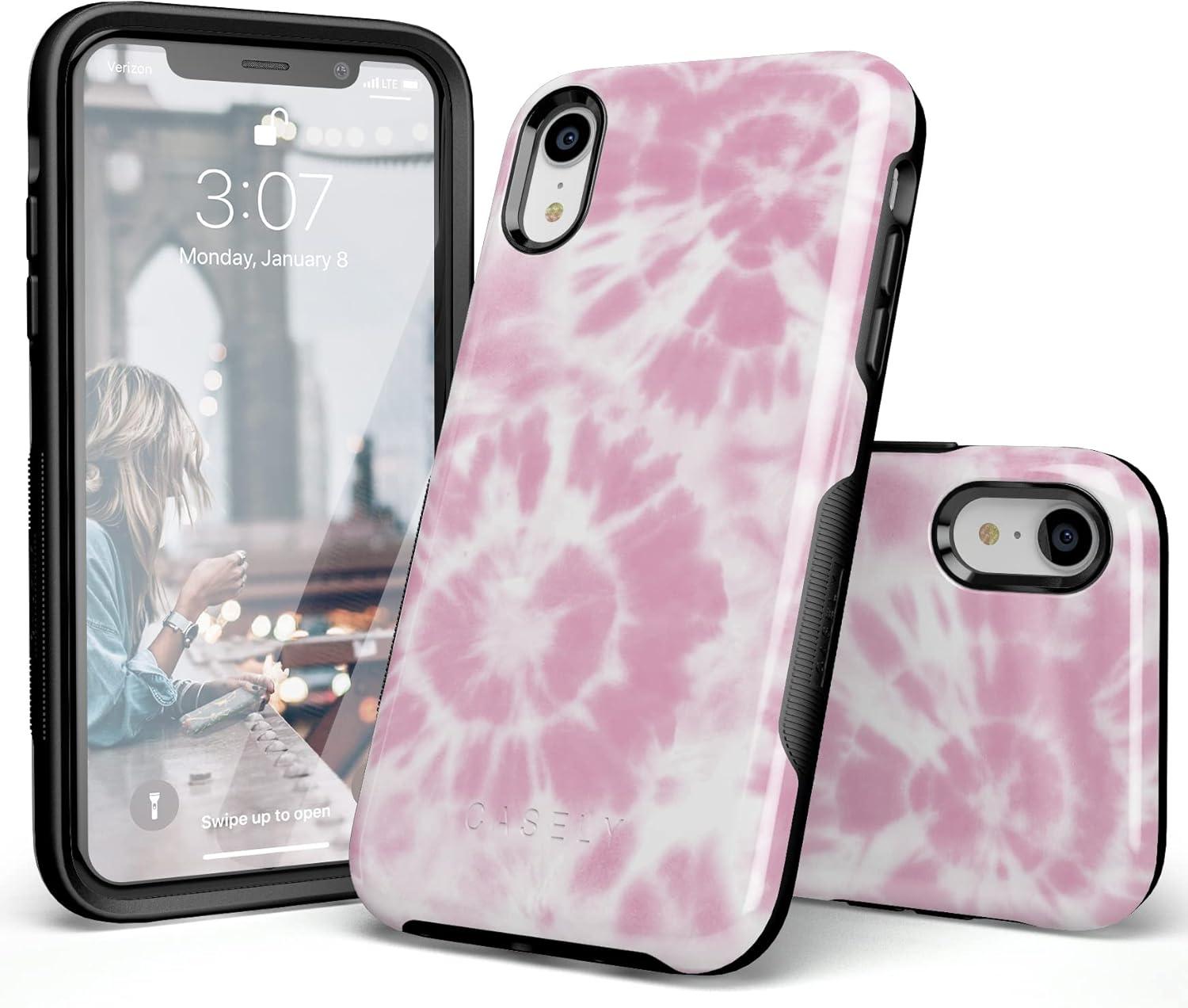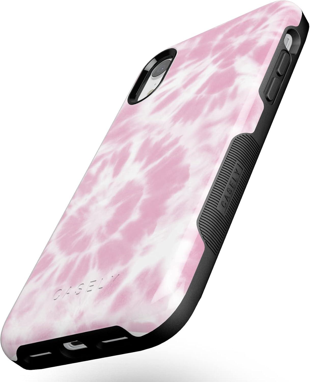 Casely iPhone XR Case | Goth Girlie | Black Bows | Essential Slim Dual-Layer Protective Design(Down for Whatever | Light Pink Tie Dye)