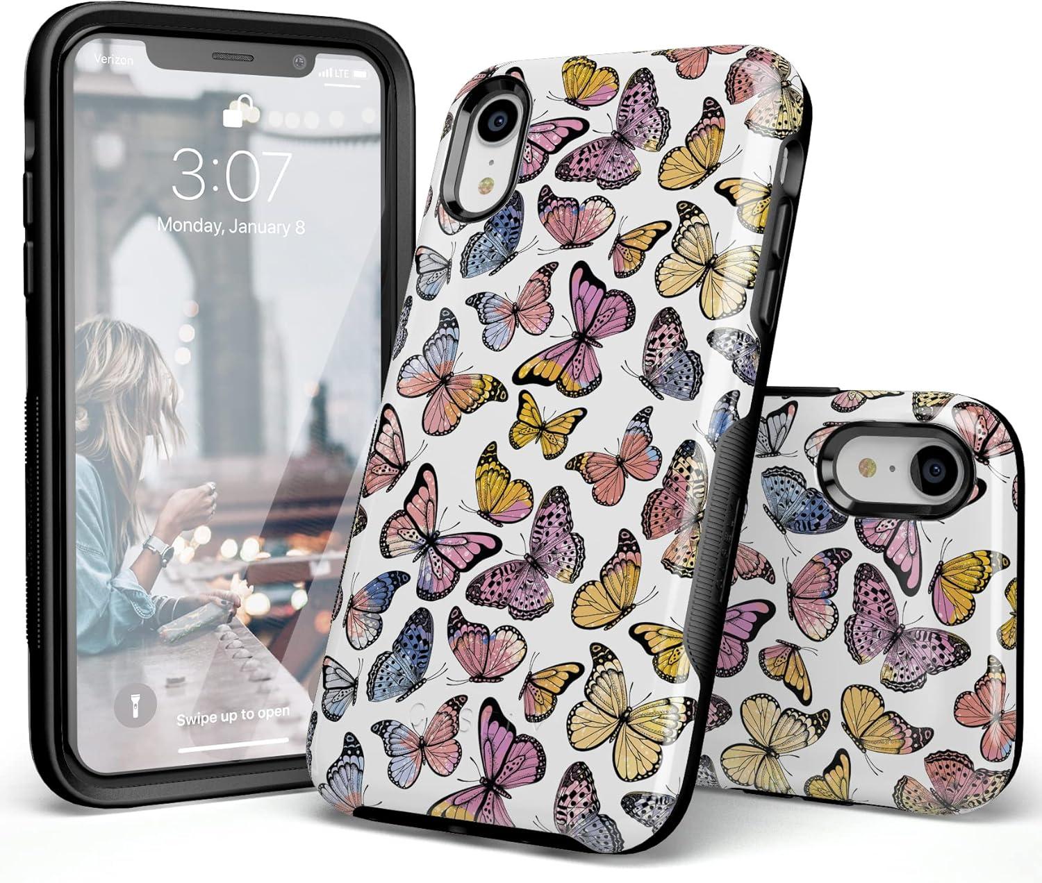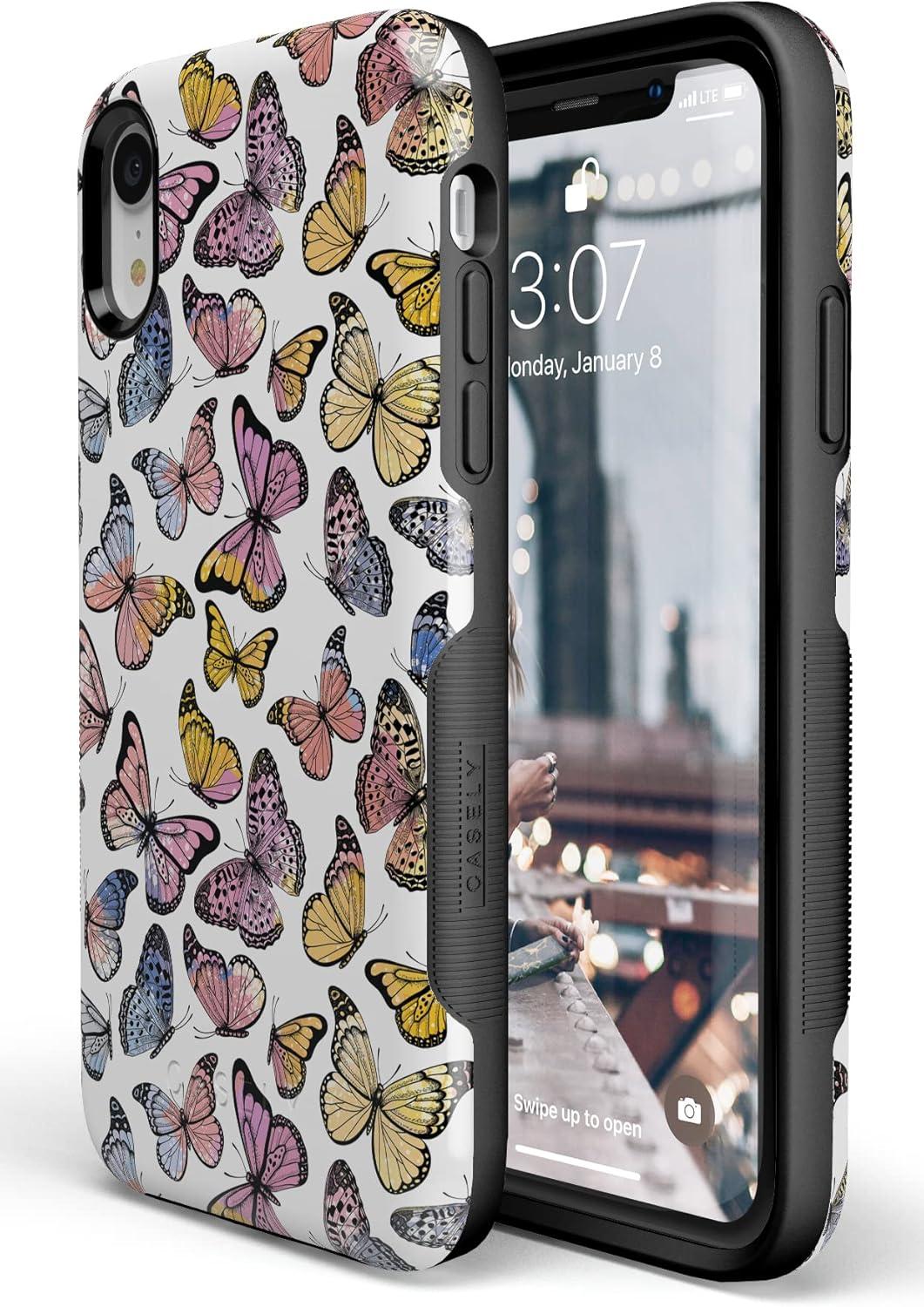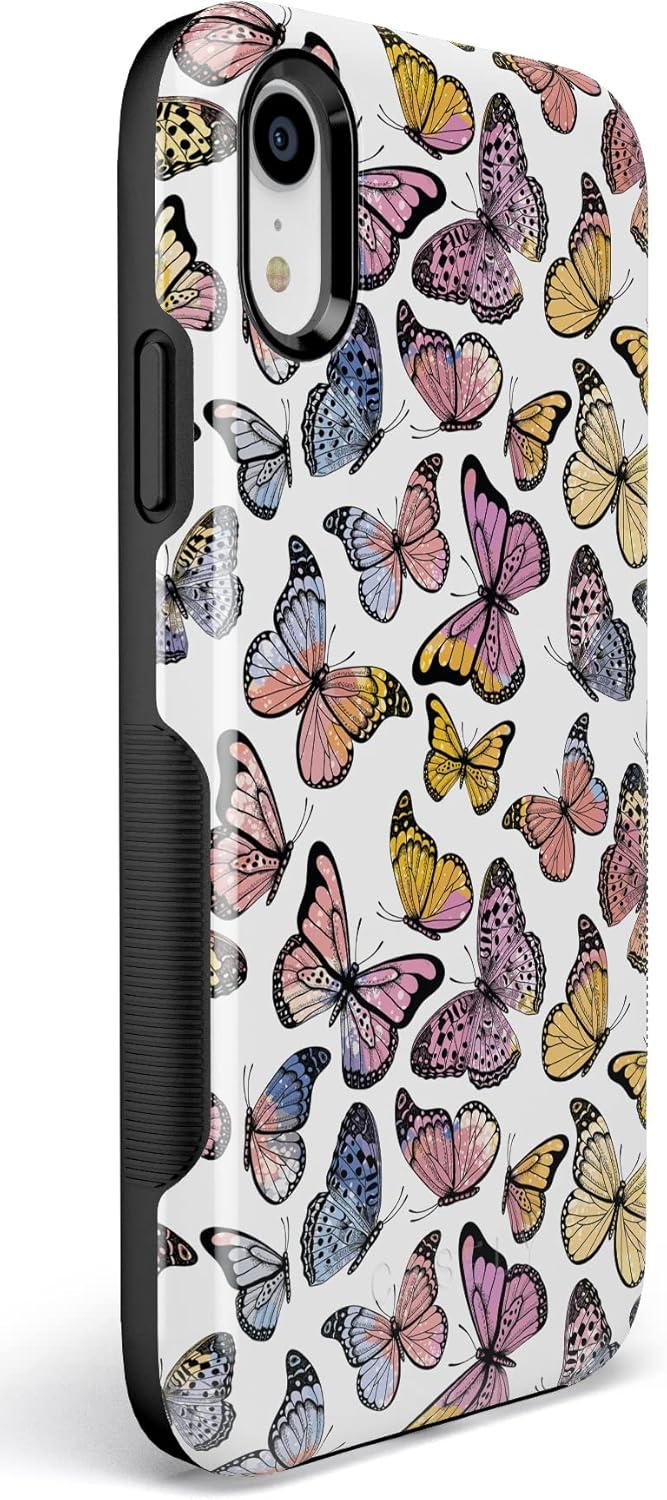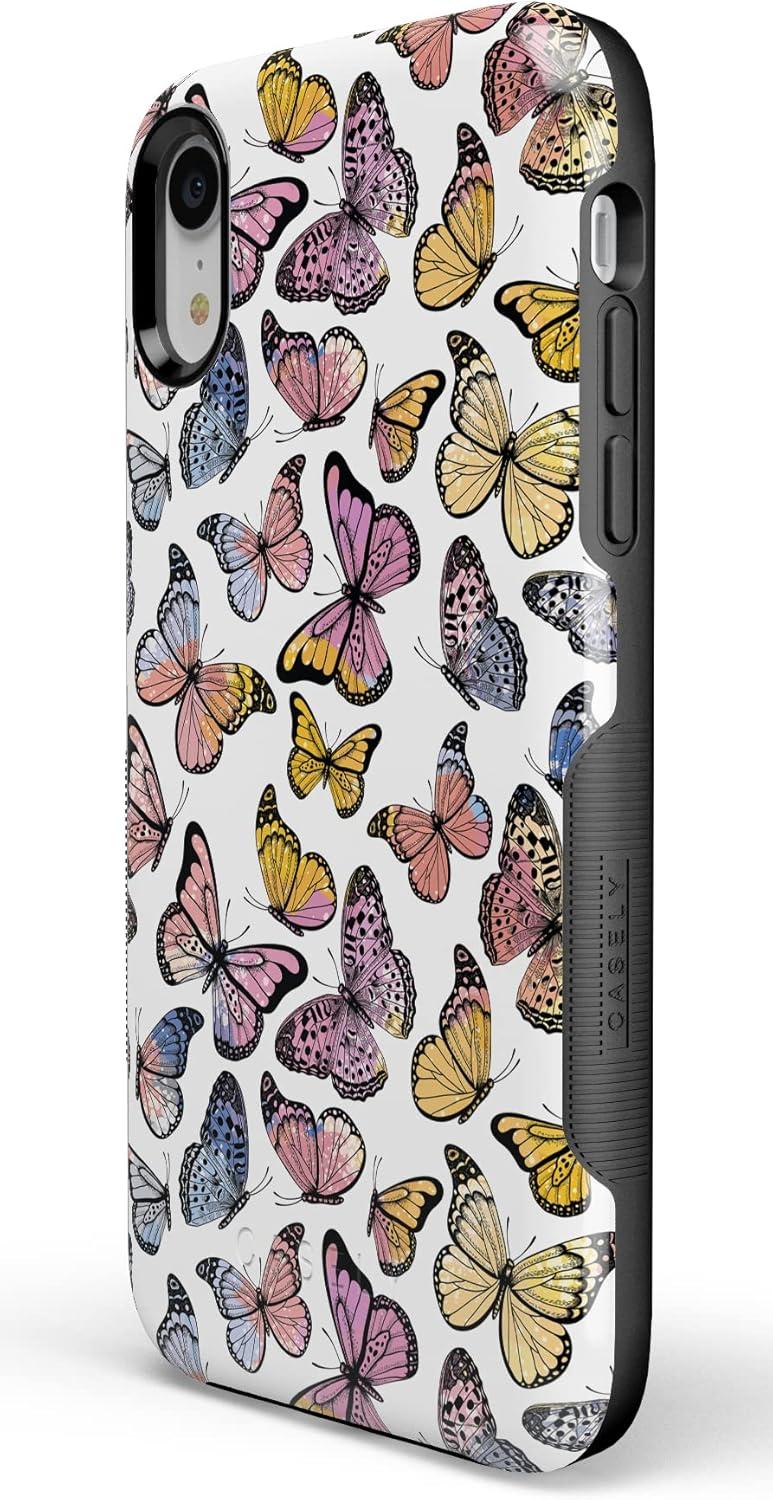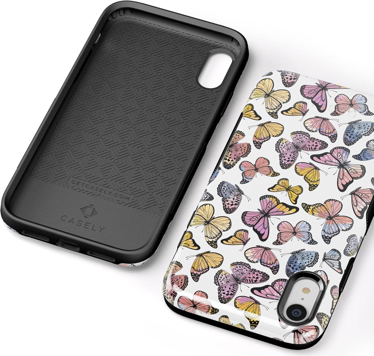 Casely iPhone XR Case | Goth Girlie | Black Bows | Essential Slim Dual-Layer Protective Design(Free Spirit | Rainbow Butterfly)