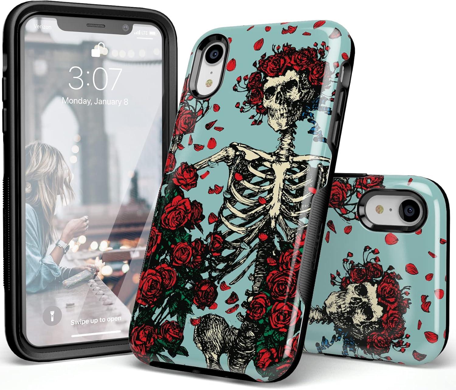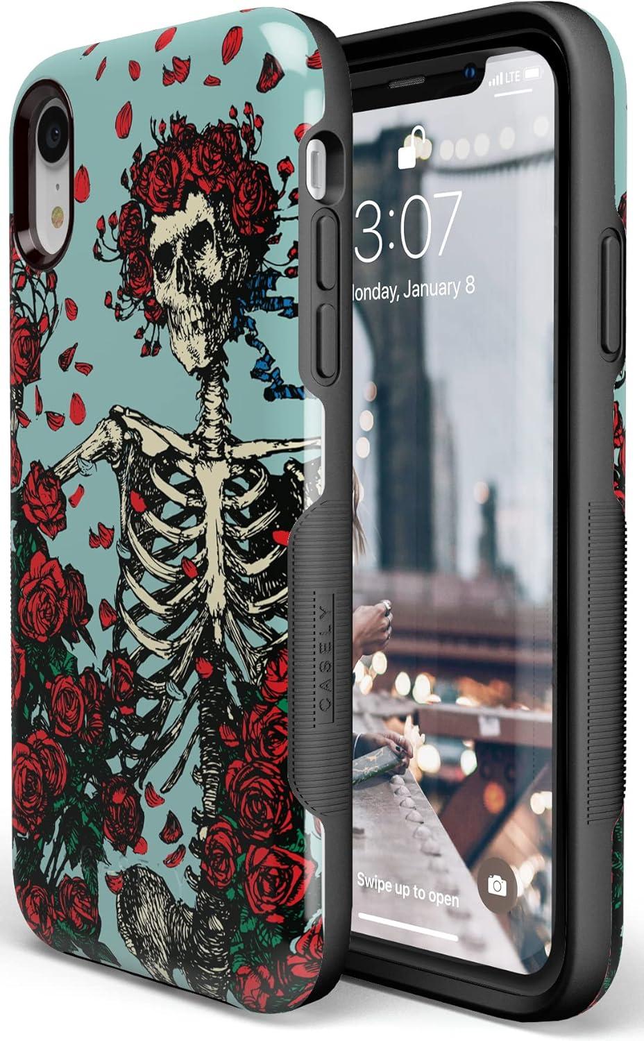 Casely iPhone XR Case | Goth Girlie | Black Bows | Essential Slim Dual-Layer Protective Design(Grateful Dead | Forever Grateful | Skeleton)