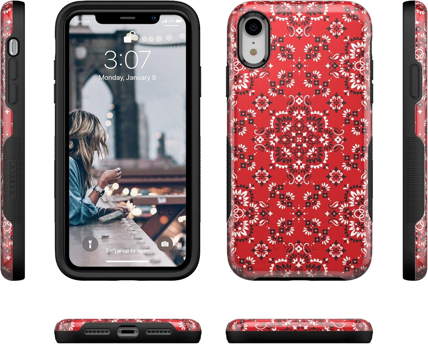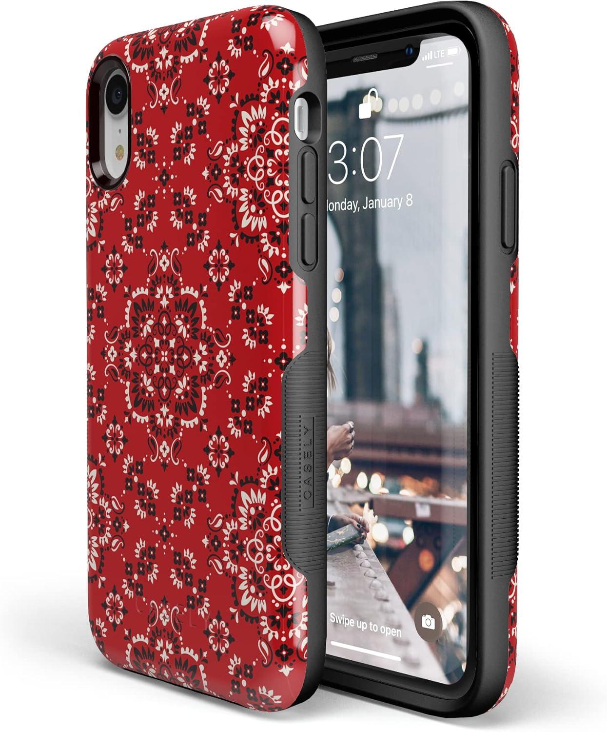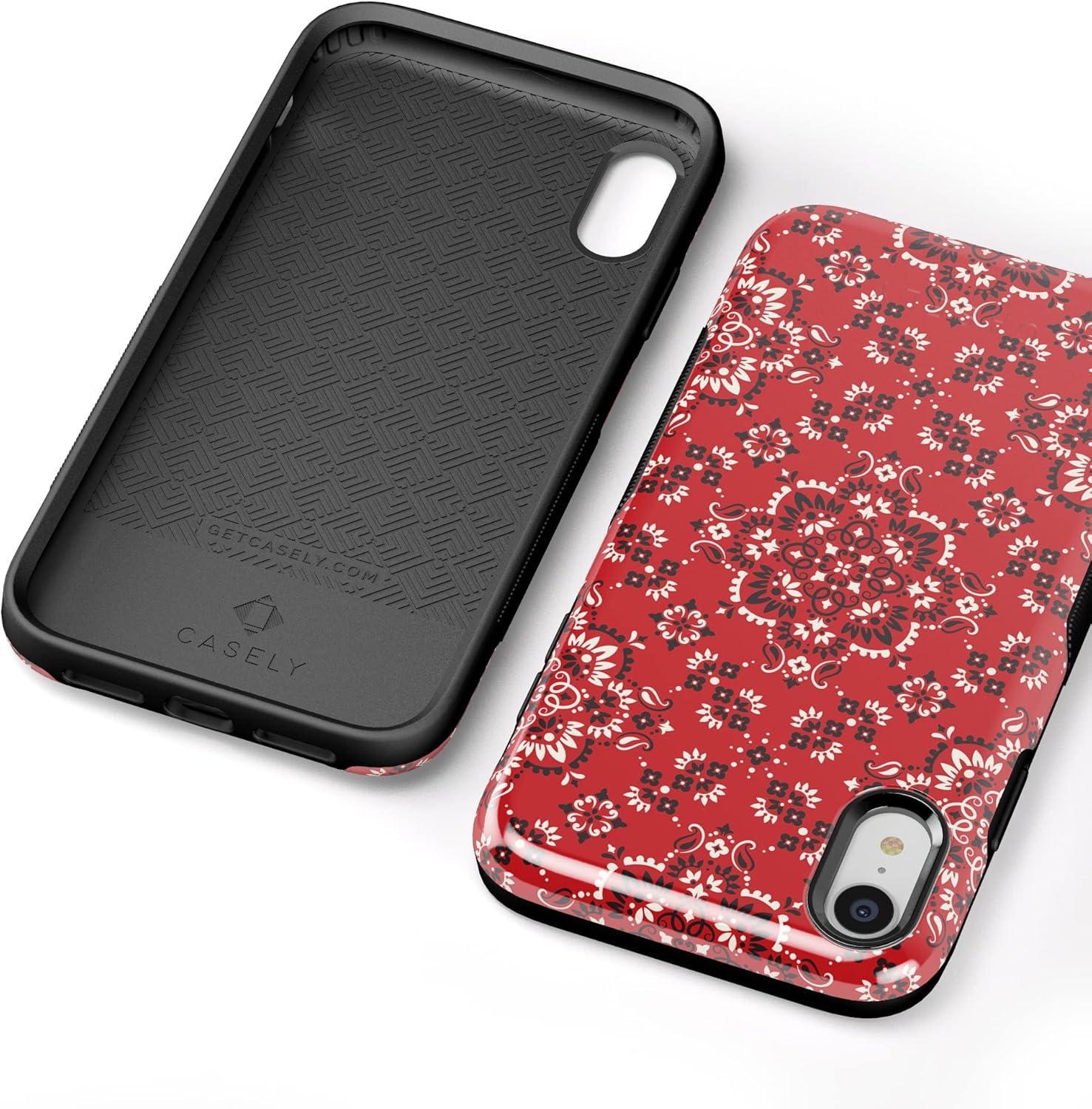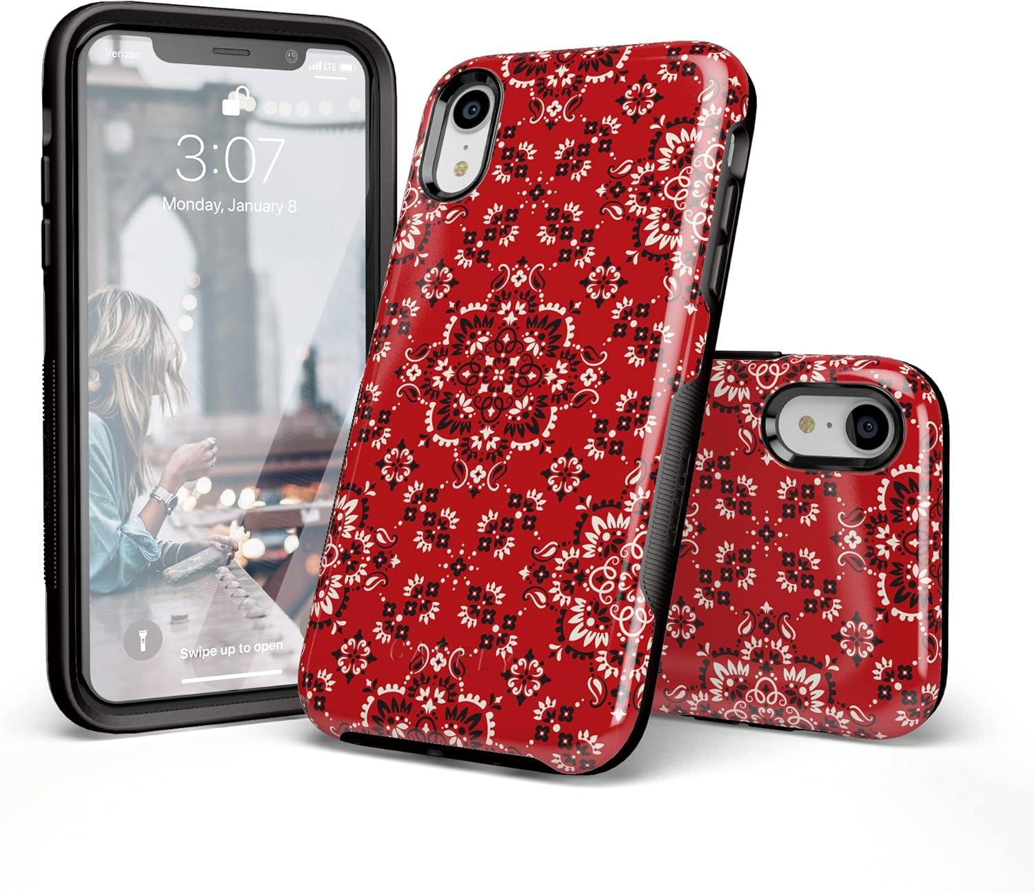 Casely iPhone XR Case | Goth Girlie | Black Bows | Essential Slim Dual-Layer Protective Design(I’m with the Band | Red Bandana Print)