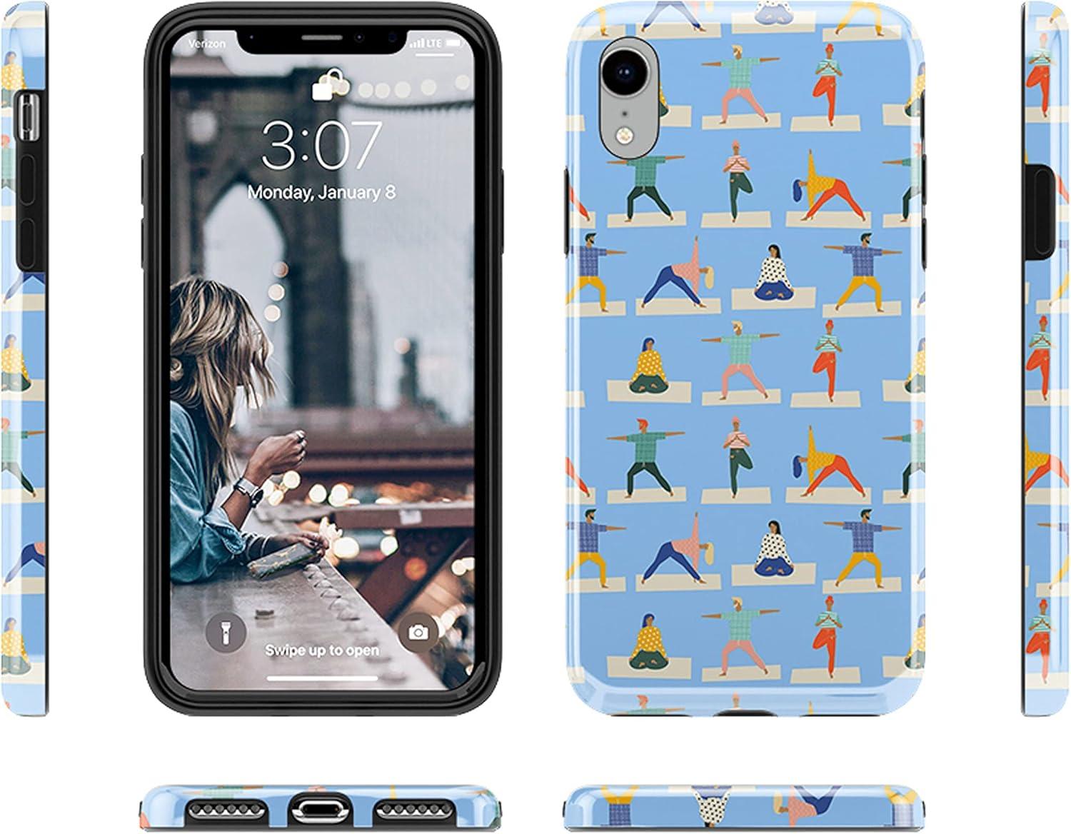 Casely iPhone XR Case | in Formation | Metallic Blue Camo | Classic Ultra Slim Design(Go with the Flow | Light Blue Yoga)