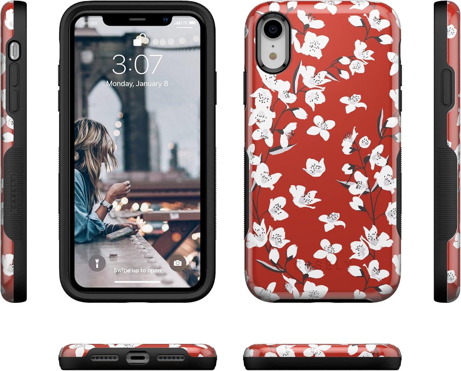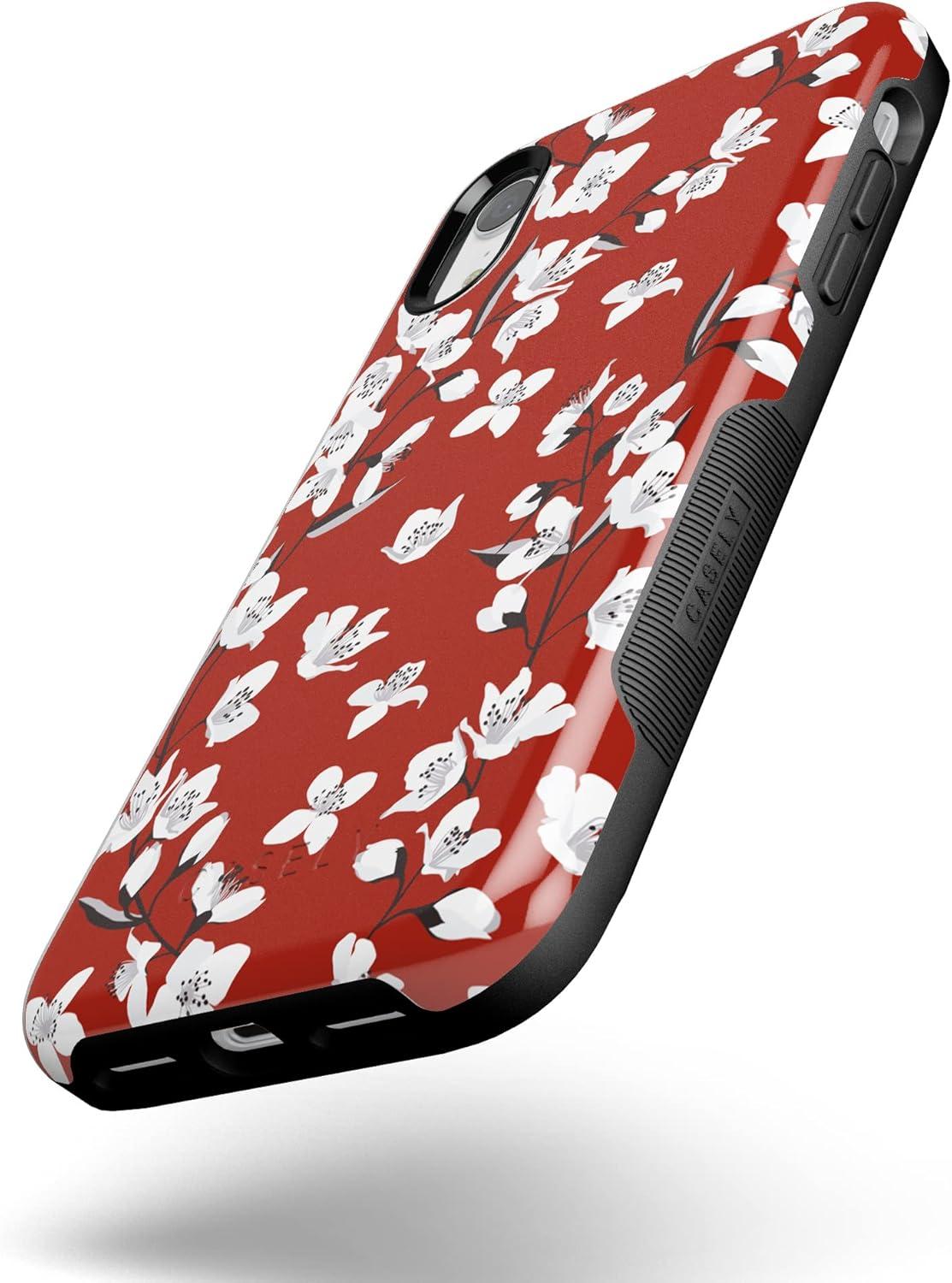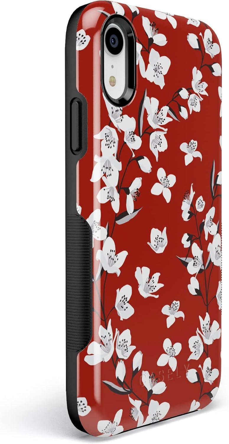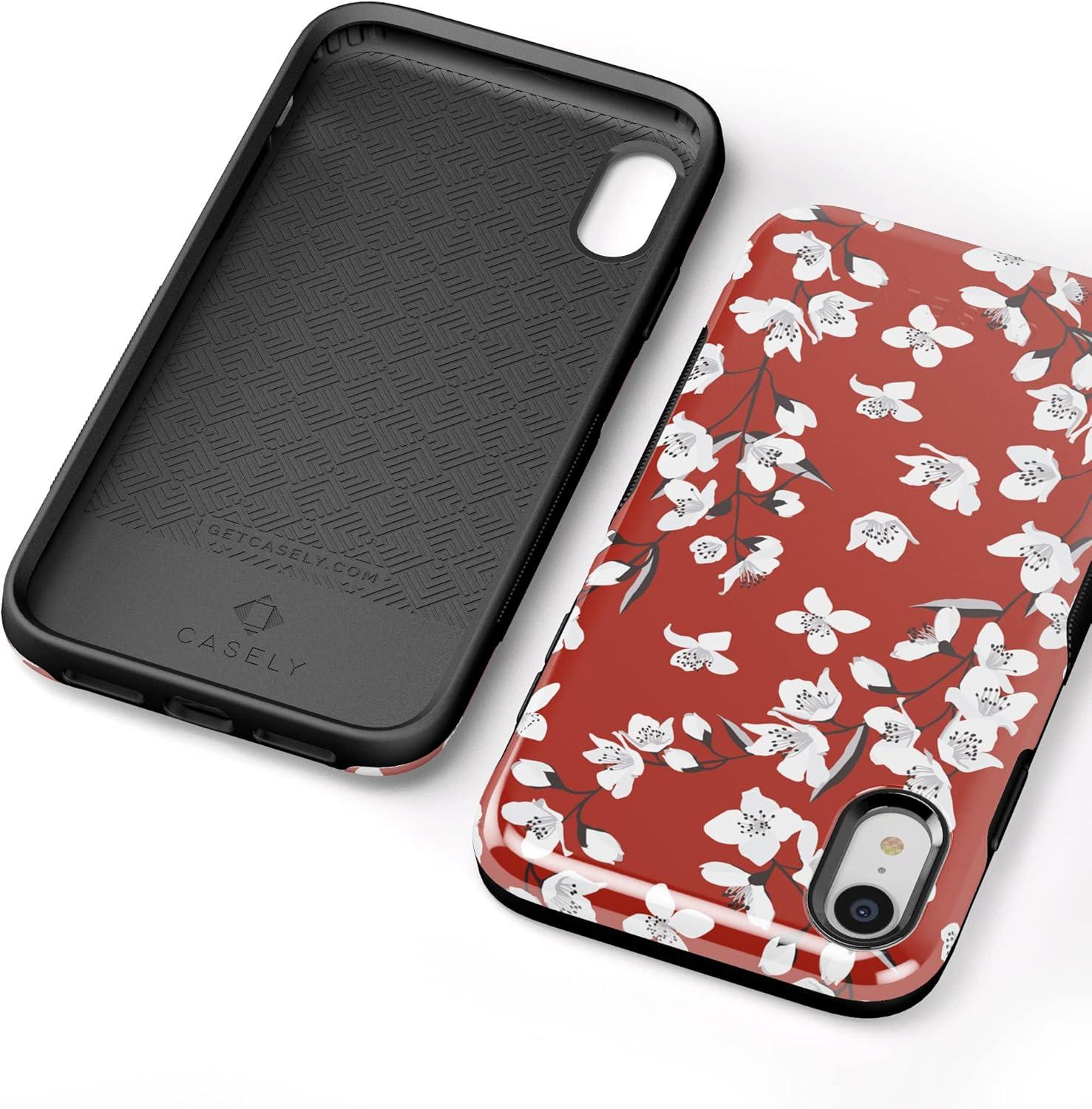 Casely iPhone XR Case | Make Your Mark | Crayola Paint Case(Floral Forest | Red Cherry Blossom Floral)