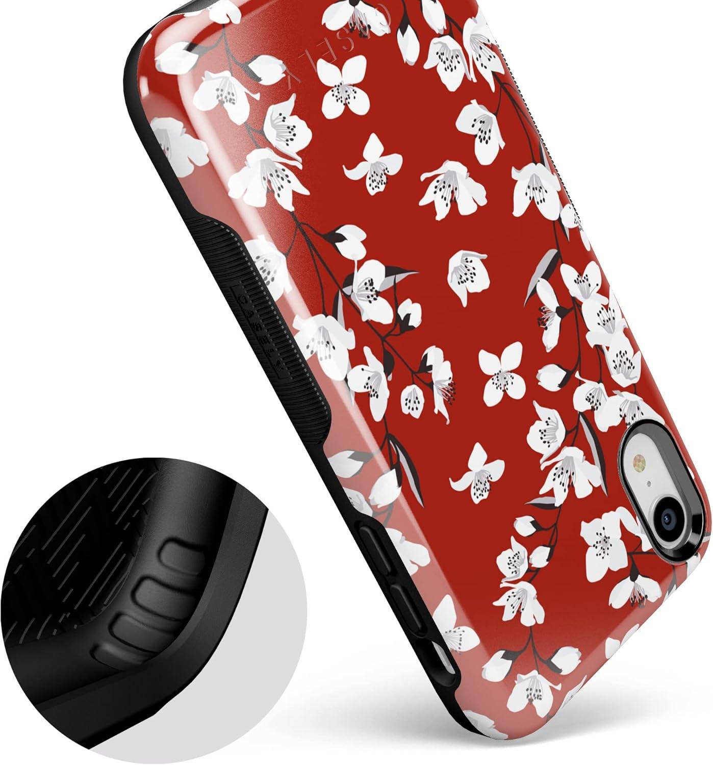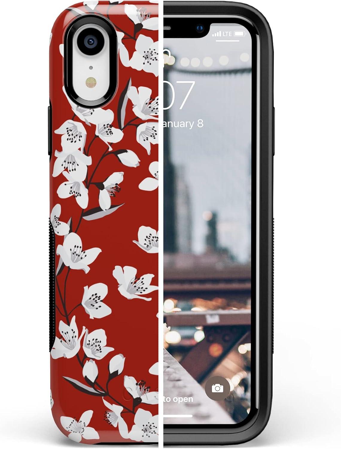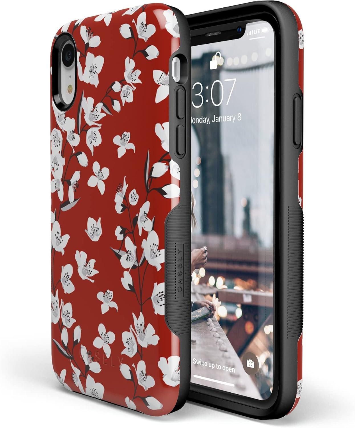 Casely iPhone XR Case | Make Your Mark | Crayola Paint Case(Floral Forest | Red Cherry Blossom Floral)