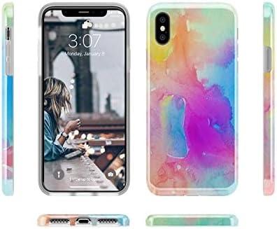 Casely iPhone Xs Max Case | Floral Forest | Navy Cherry Blossom Floral | Classic Ultra Slim Design(Cute Rainbow Marble)