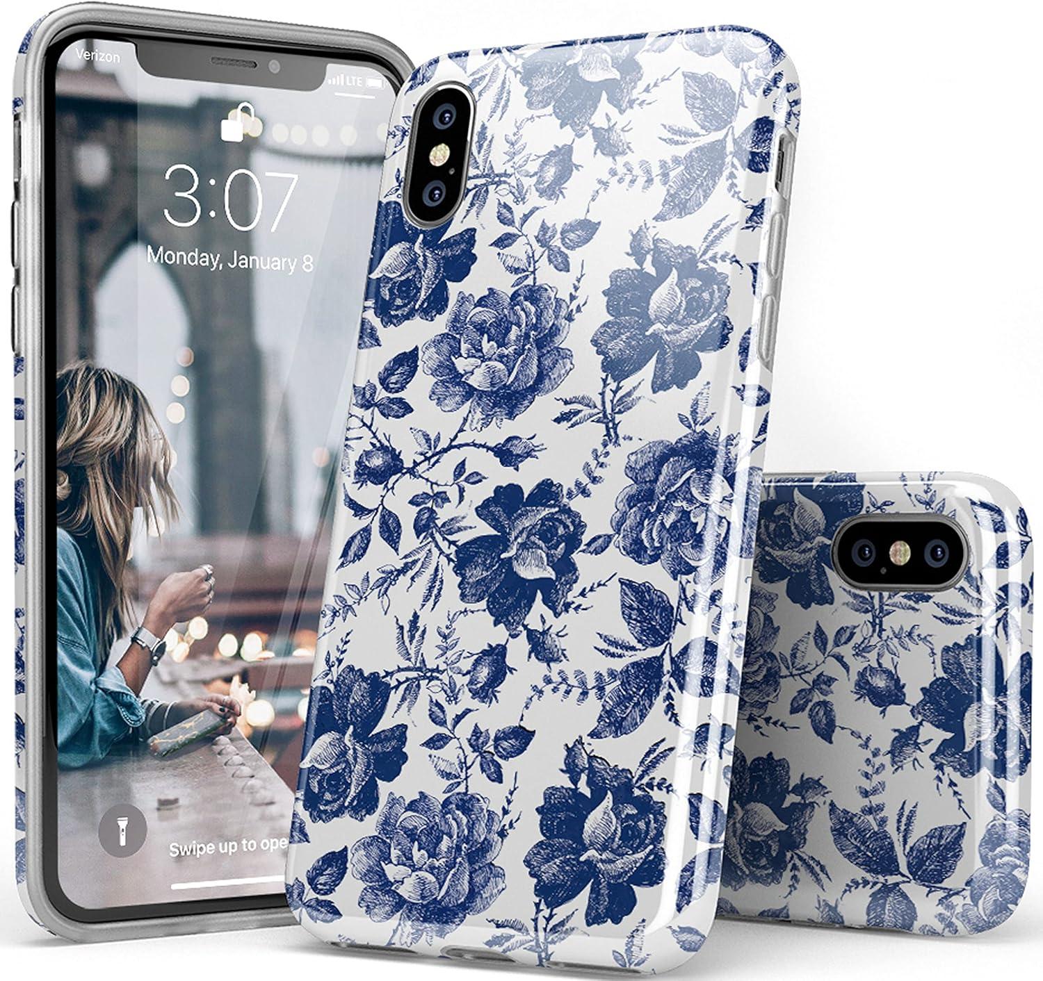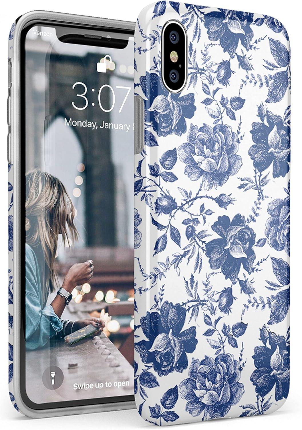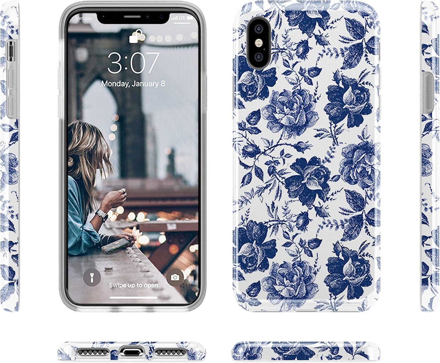 Casely iPhone Xs Max Case | Heart Throb | Endless Hearts | Classic Ultra Slim Design(Rose to Fame | Blue & White Rose Floral)