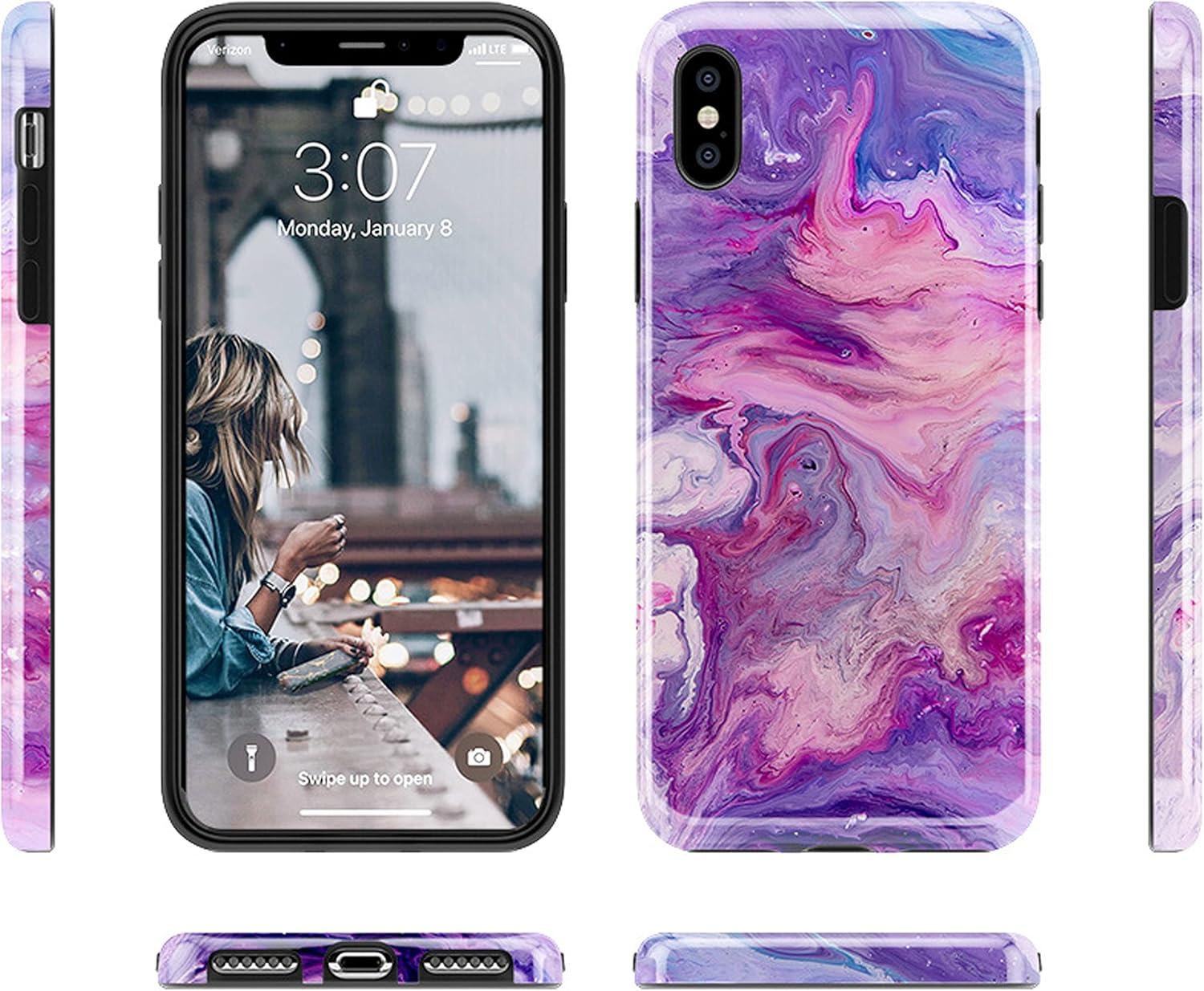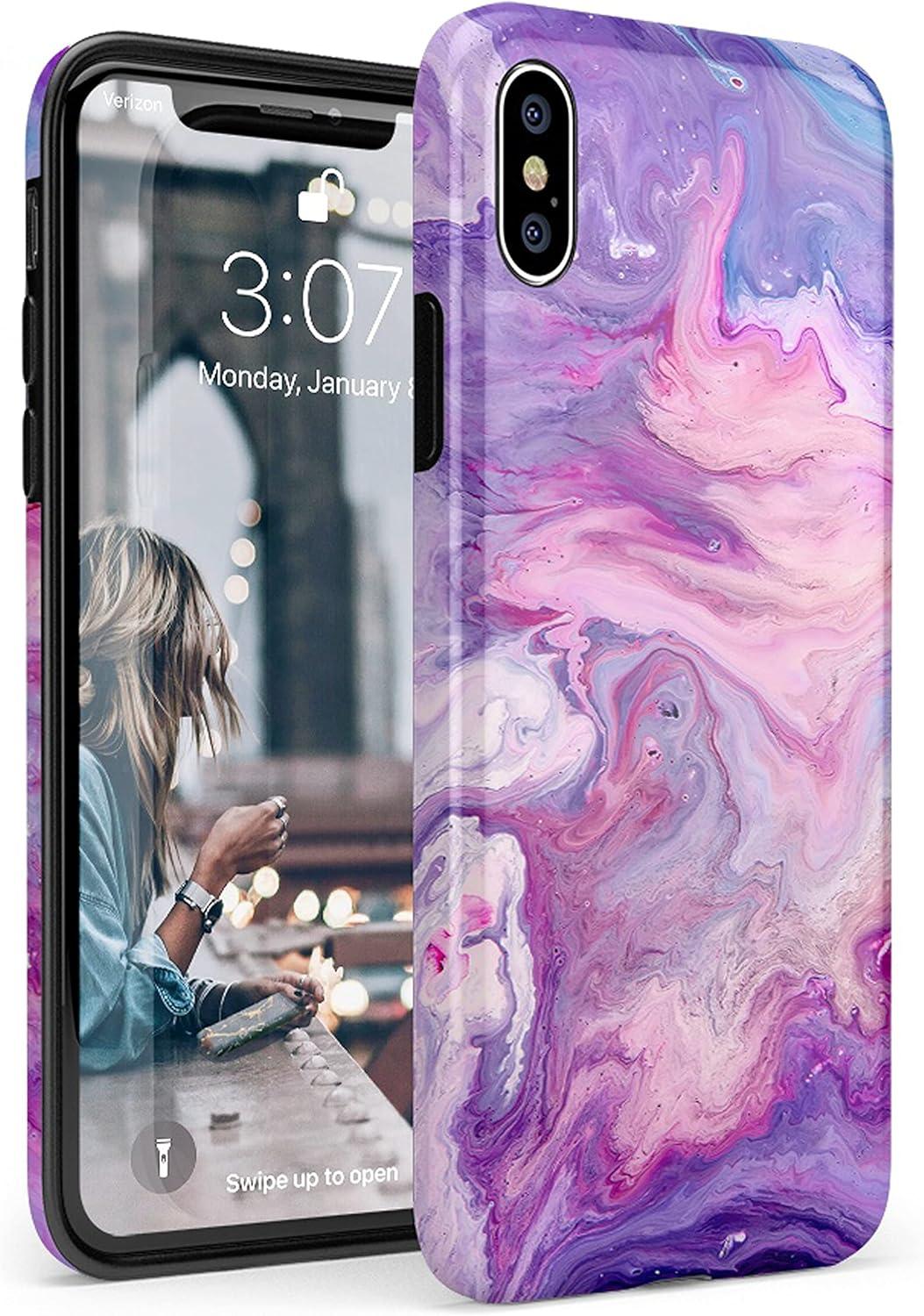Casely iPhone Xs Max Case | Heart Throb | Endless Hearts | Classic Ultra Slim Design(Tie Dying Over You Purple Marble)