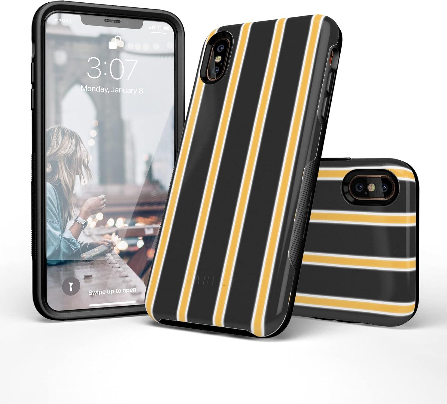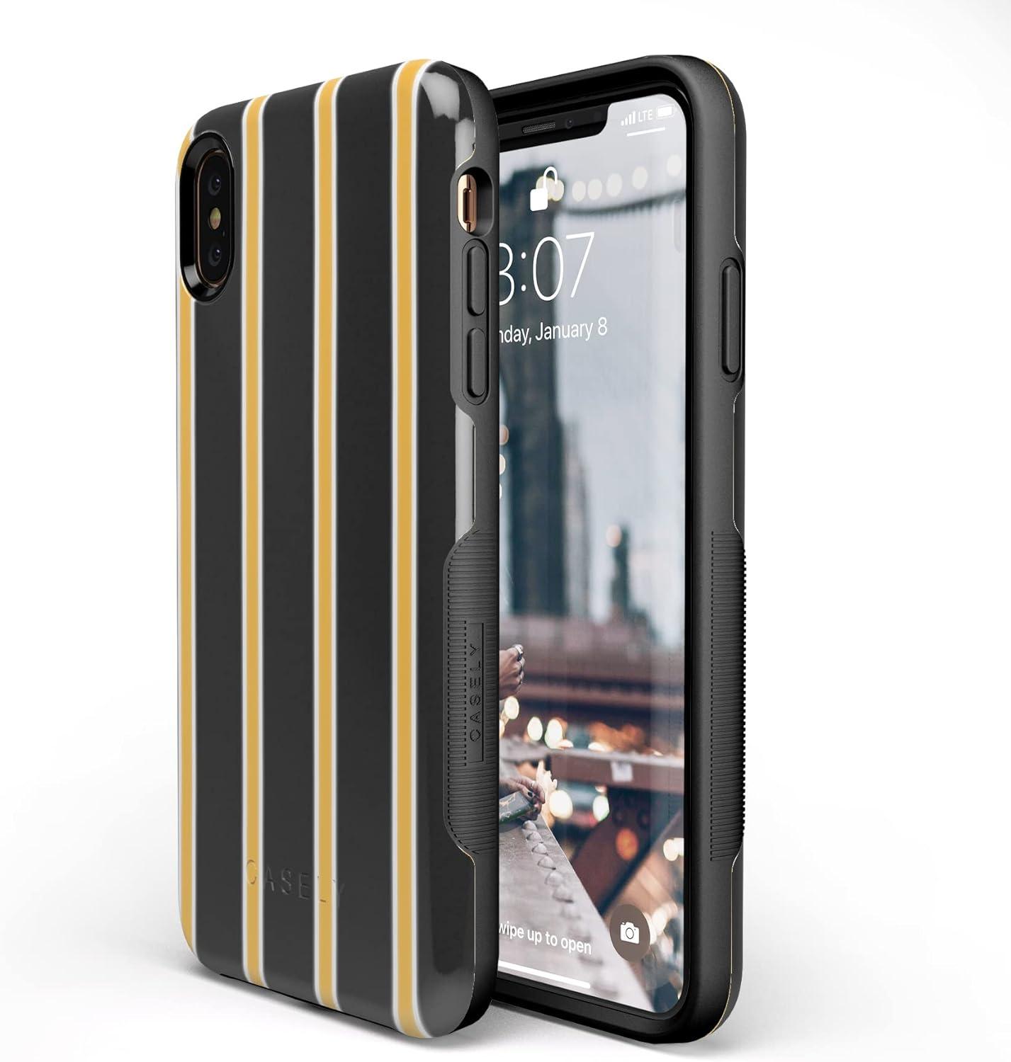 Casely iPhone Xs Max Case | Make Your Mark | Crayola Paint Case(25 Fine Lines Mustard Yellow Pinstripe)