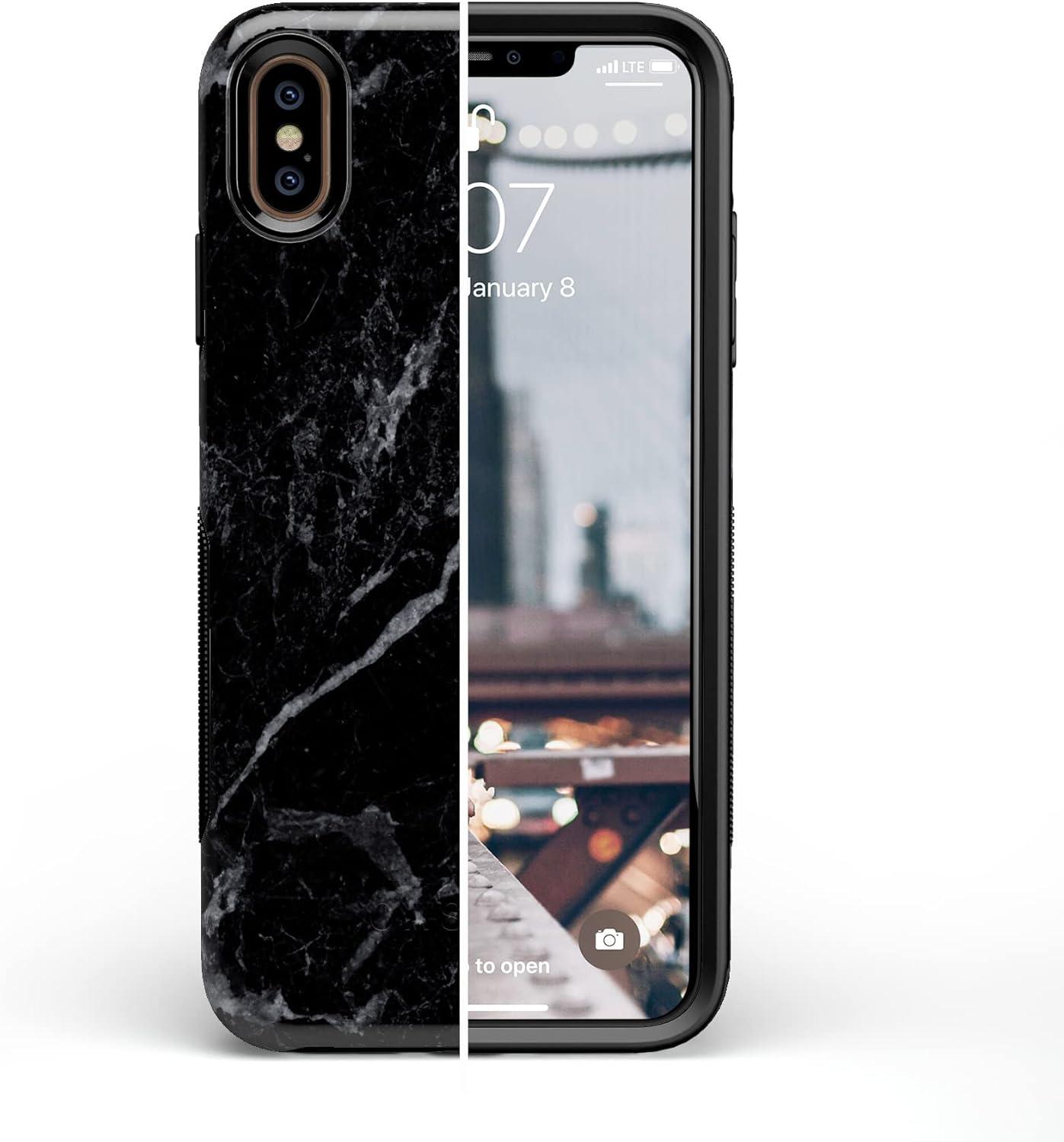 Casely iPhone Xs Max Case | Purple Taupe on Nude | Bold Protective Design(Black Marble)