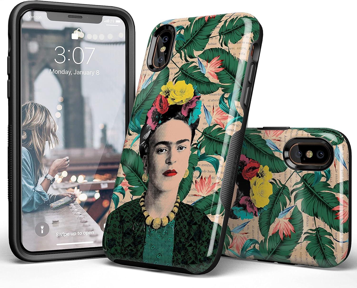 Casely iPhone Xs Max Case | Purple Taupe on Nude | Bold Protective Design(Frida Kahlo | Find Your Muse | Portrait Floral)