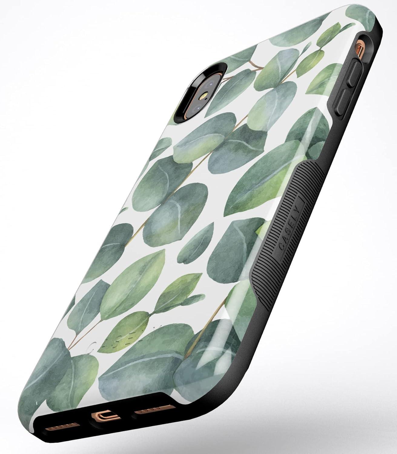 Casely iPhone Xs Max Case | Purple Taupe on Nude | Bold Protective Design(Leaf Me Alone | Green Floral Print)