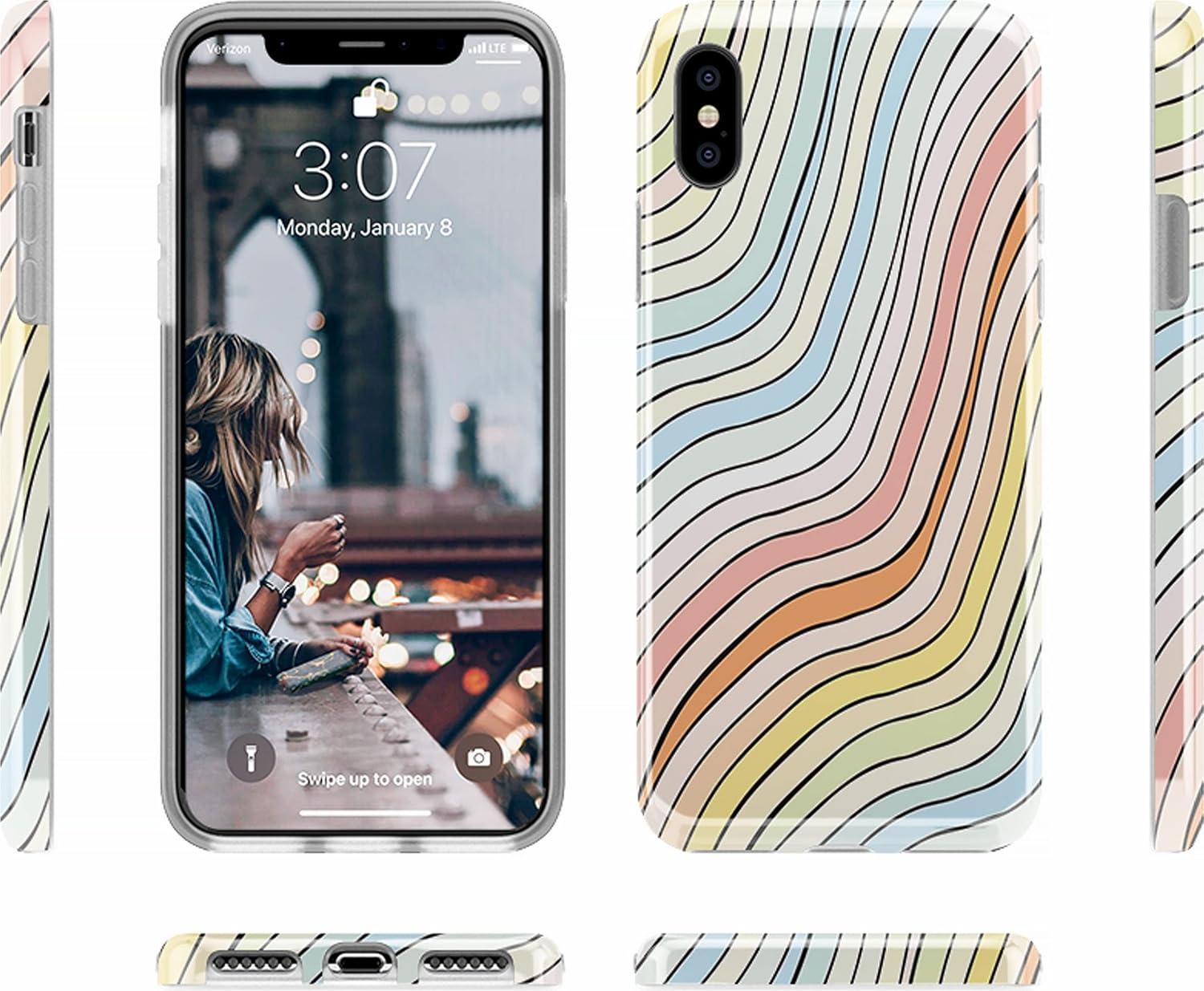 Casely iPhone Xs Max Case | Rad Dad | 80’s Colorblock | Classic Ultra Slim Design(Ride The Wave | Pastel Rainbow Lined)