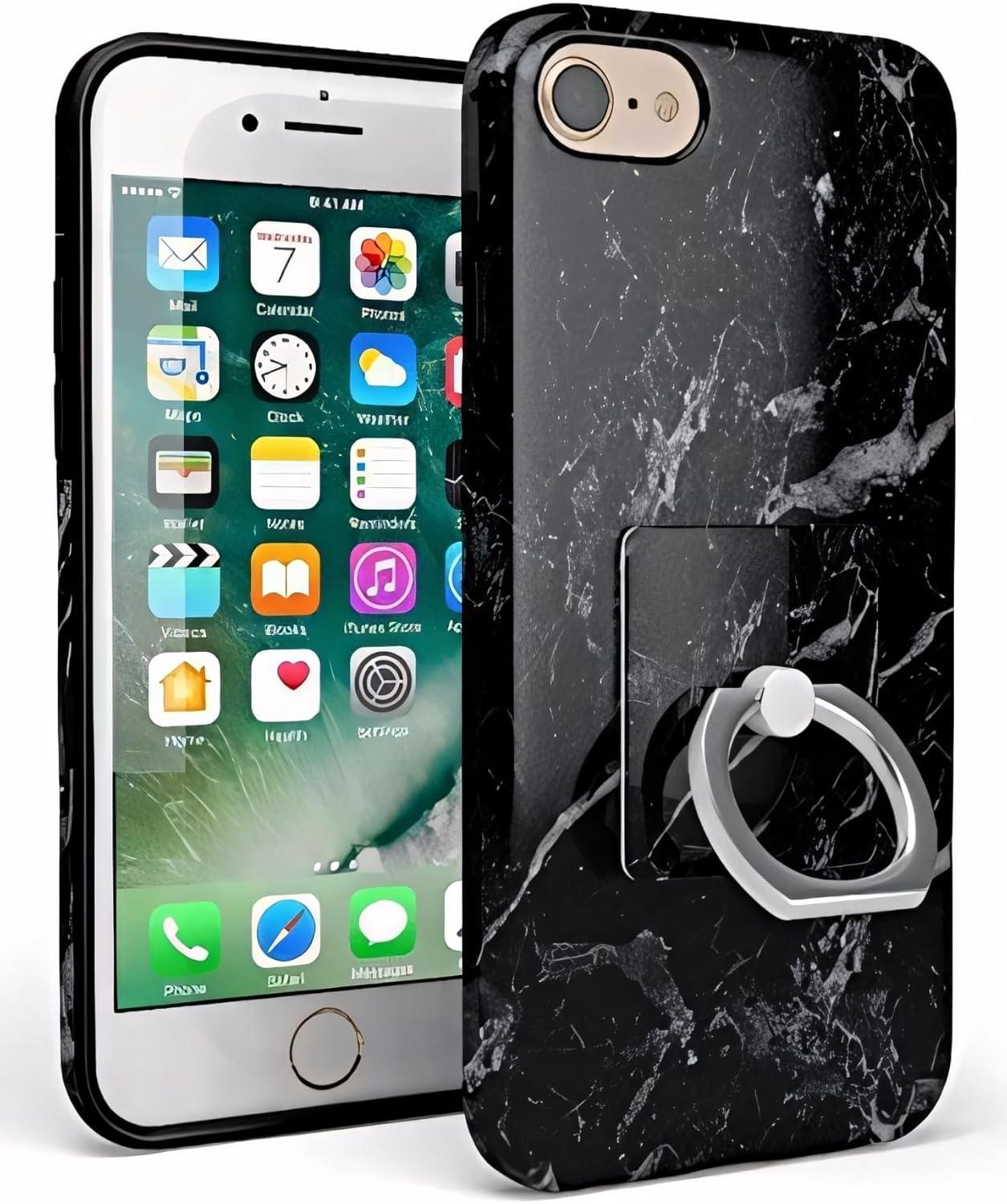 Casely Phone Ring | Black Marble Phone Ring | 360 Degree Complete Swivel, Strong Adhesive, Remove and Reuse, Works on Any Phone(02 Black Marble)